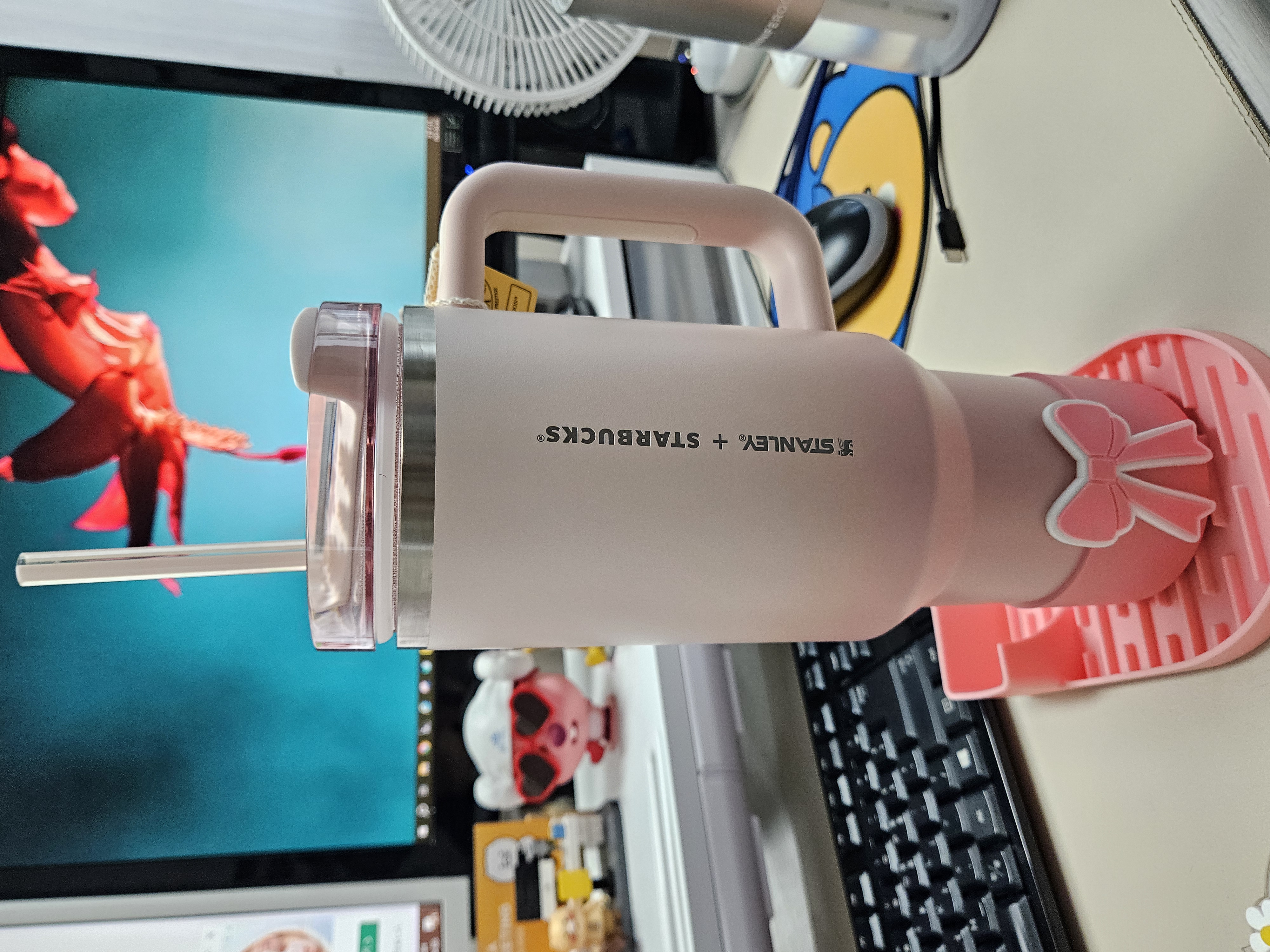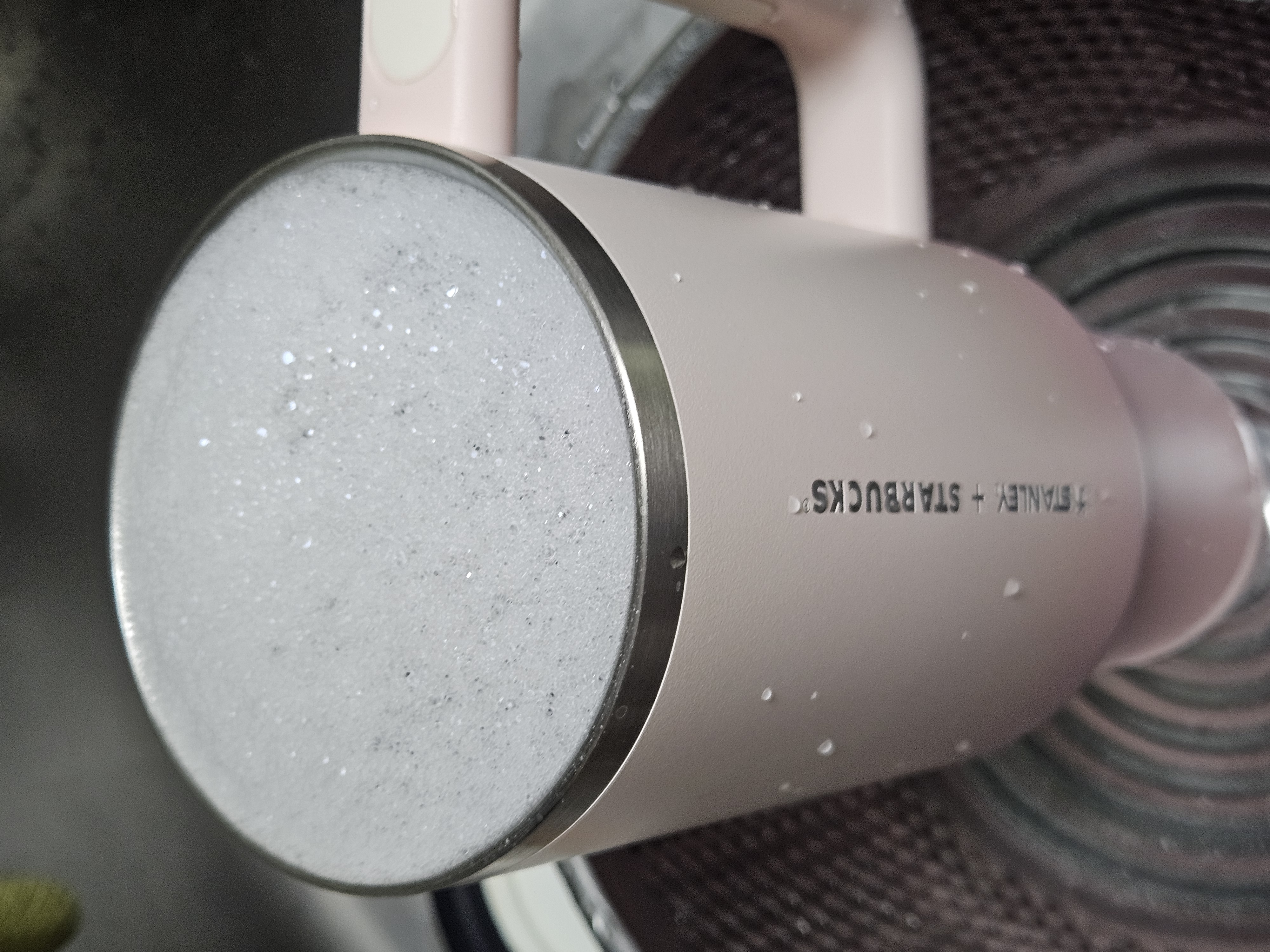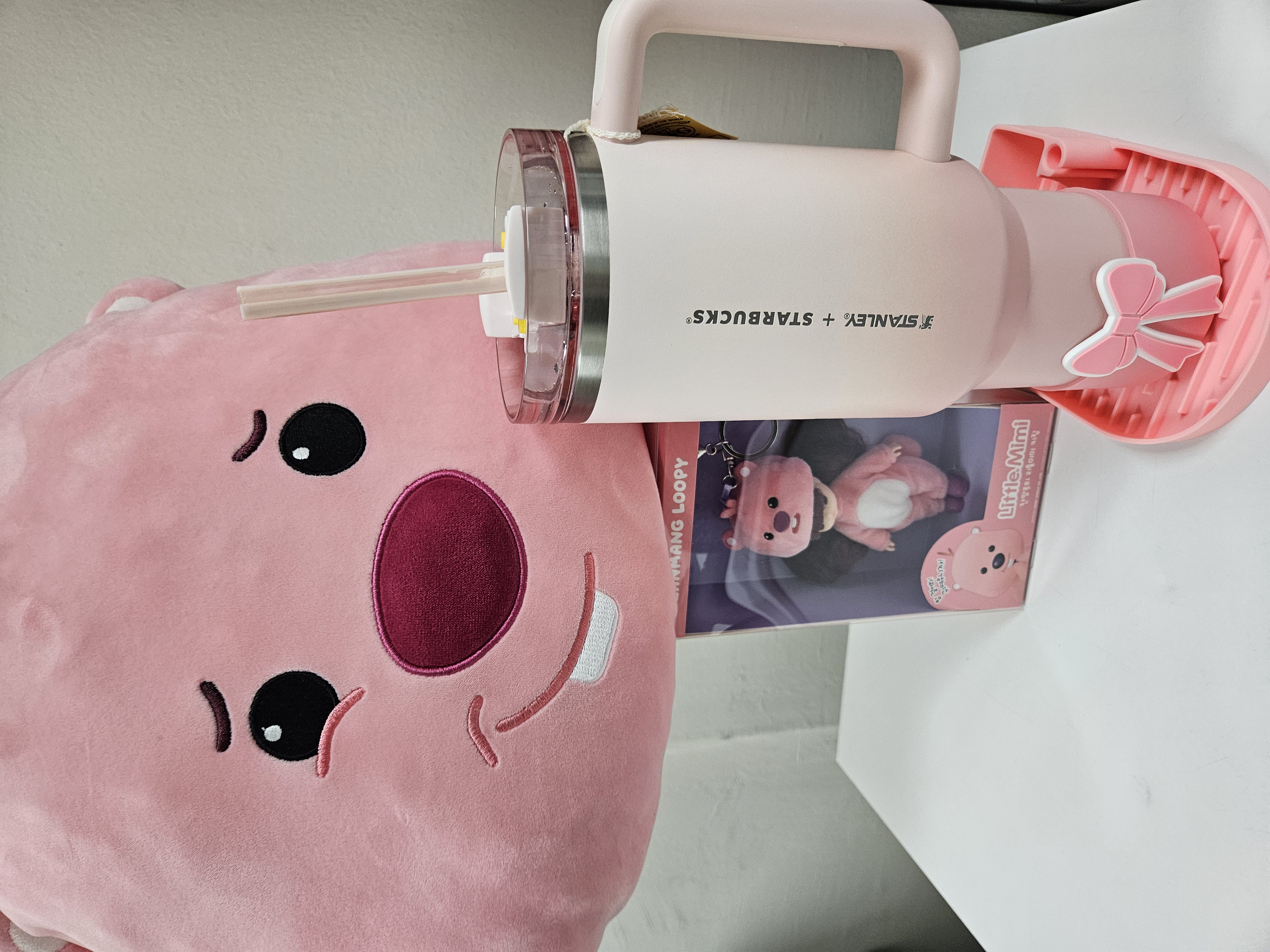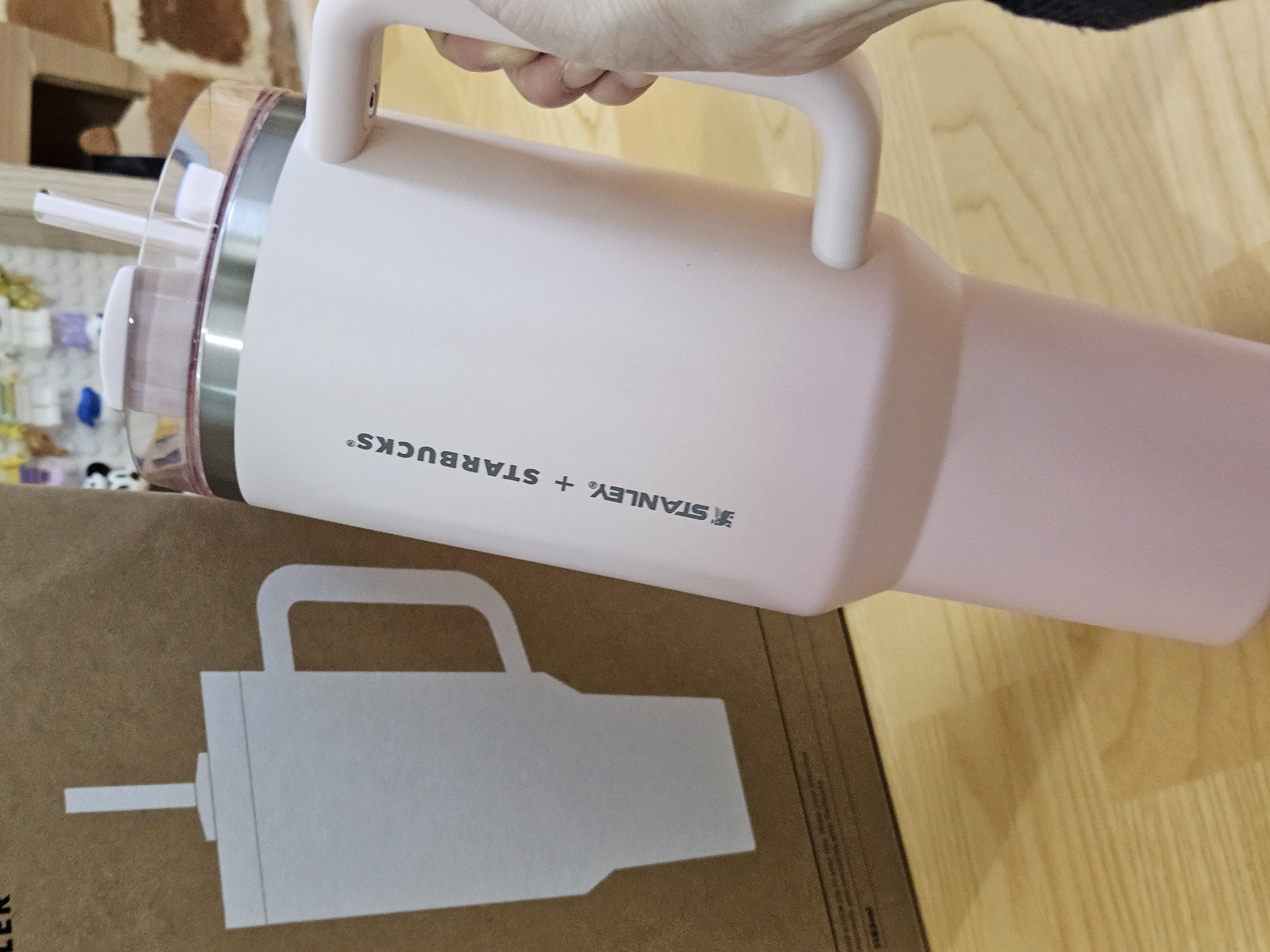 작은 폰트, 세로방향으로 인쇄된 스타벅스 + 스탠리 로고가 더 깔끔해 보이고 핑크빛 그라데이션 컬러도 요즘 더 화사하게 사용할 수 있을 것 같아서 스타벅스 SS 스탠리 핑크 켄처 텀블러 1183ml로 골랐음.