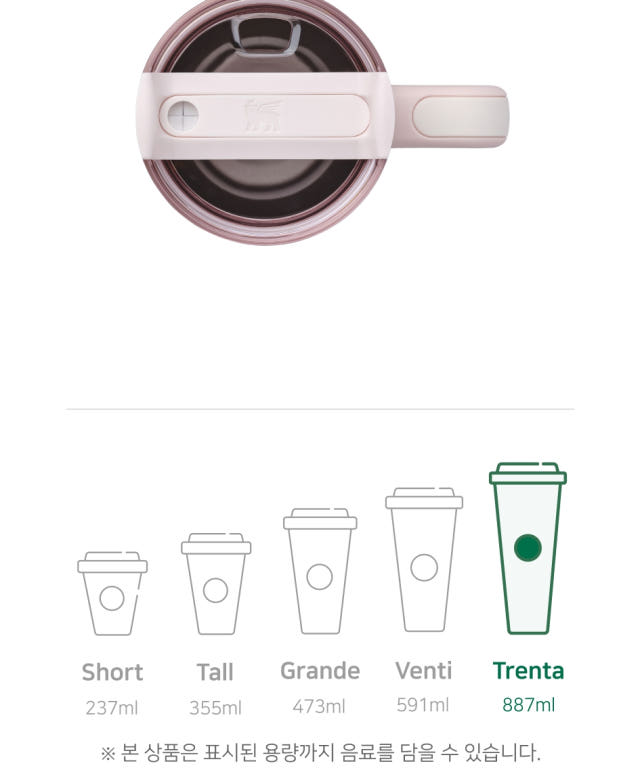 텀블러 중량은 0.54kg, 가로 14.8cm, 세로 10cm, 높이 31.5cm로 생각보다 크다. 벤티가 591ml, 트렌타가 888ml라서 1183ml(40oz)의 텀블러로 전 용량 커버 가능 😎