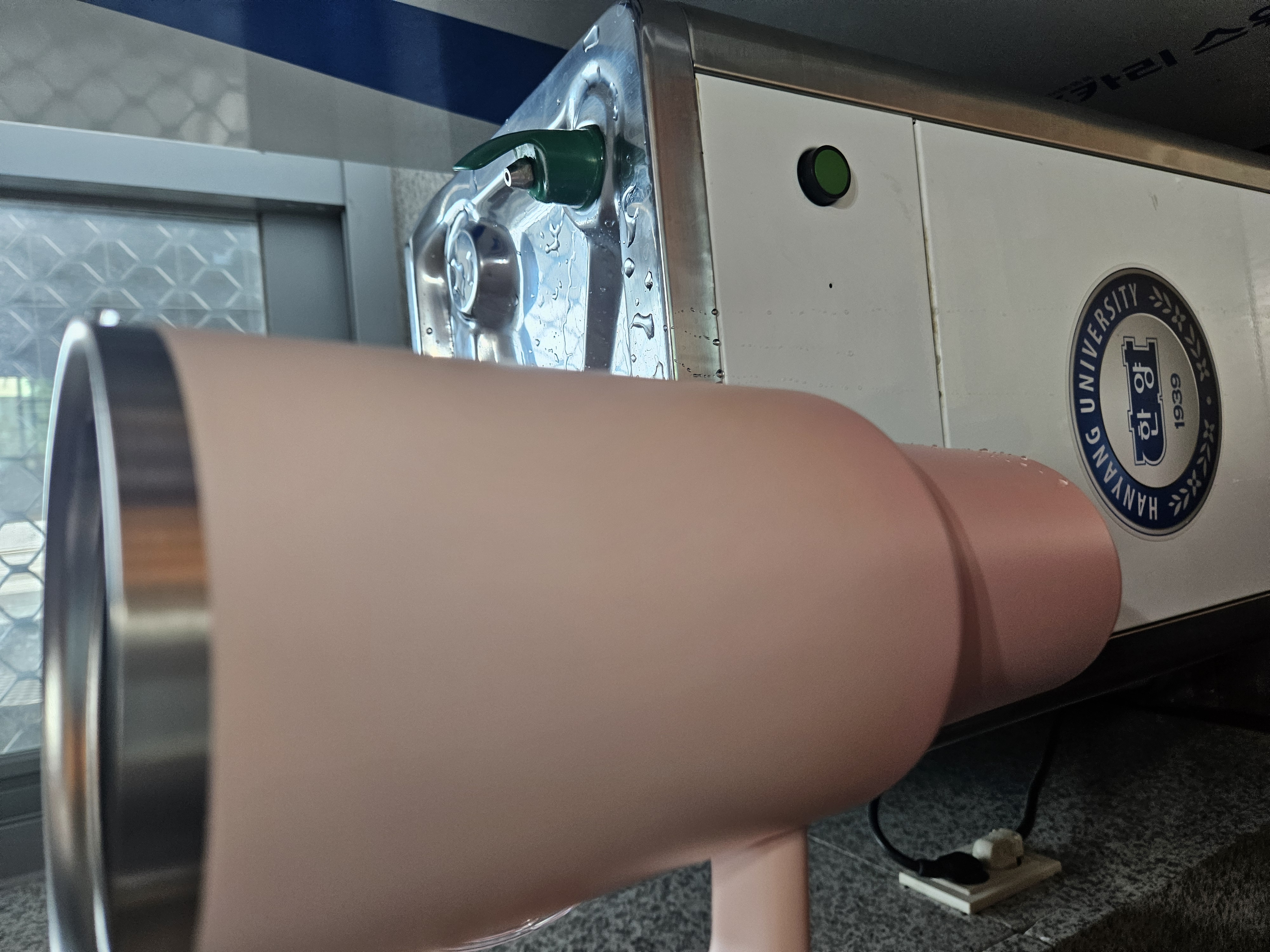근데 일반적인 정수기가 아니라 냉수는 기울여서 받아야 하고 온수 받는 수전도 텀블러 길이보다 짧아 기울여야 해서 물을 텀블러 최대용량까지 받을 순 없는데 최대한 가득 채워 와서 마셨다.