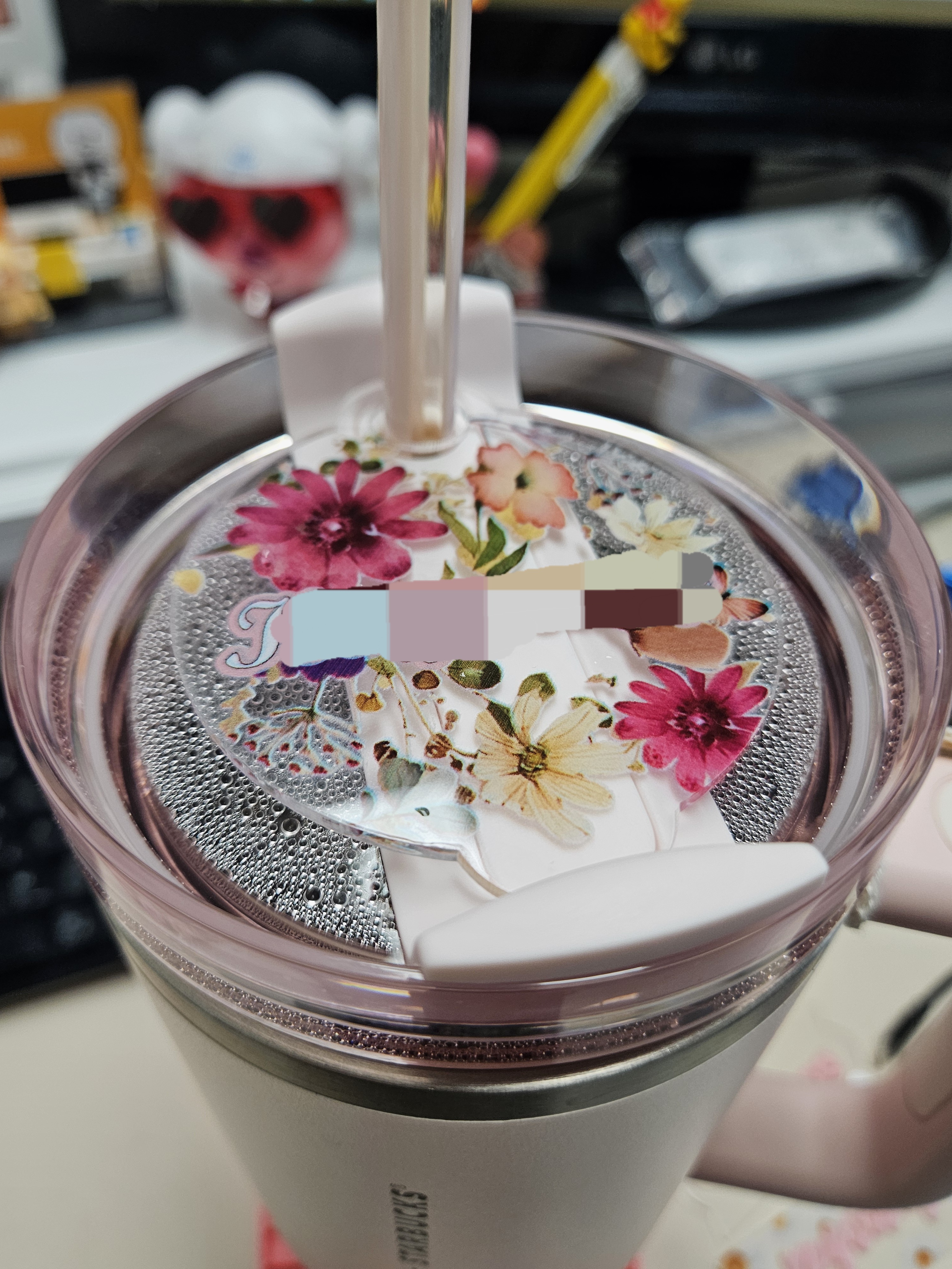 커버에 네임택 제작도 가능해서 3개나 주문 제작했는데 하나만 양각으로 입체감 있게 뽑아냈고, 2개는 아크릴에 프린팅 해놨는데 끼어놓으니 화사하고 내 텀블러 인증한 것 같아 좋음.