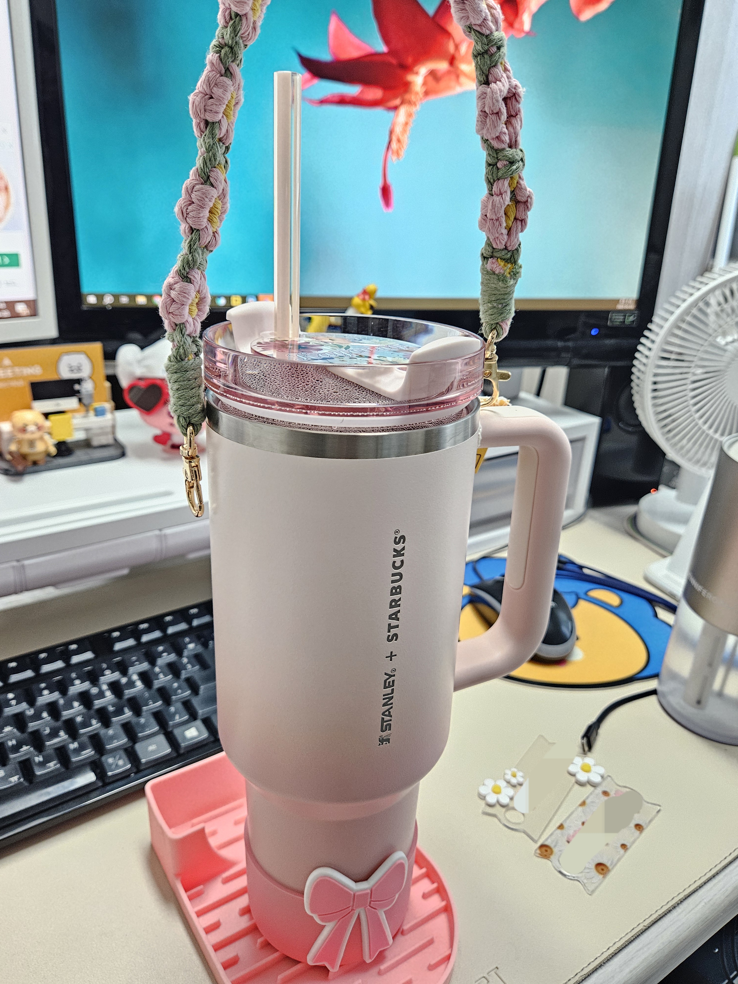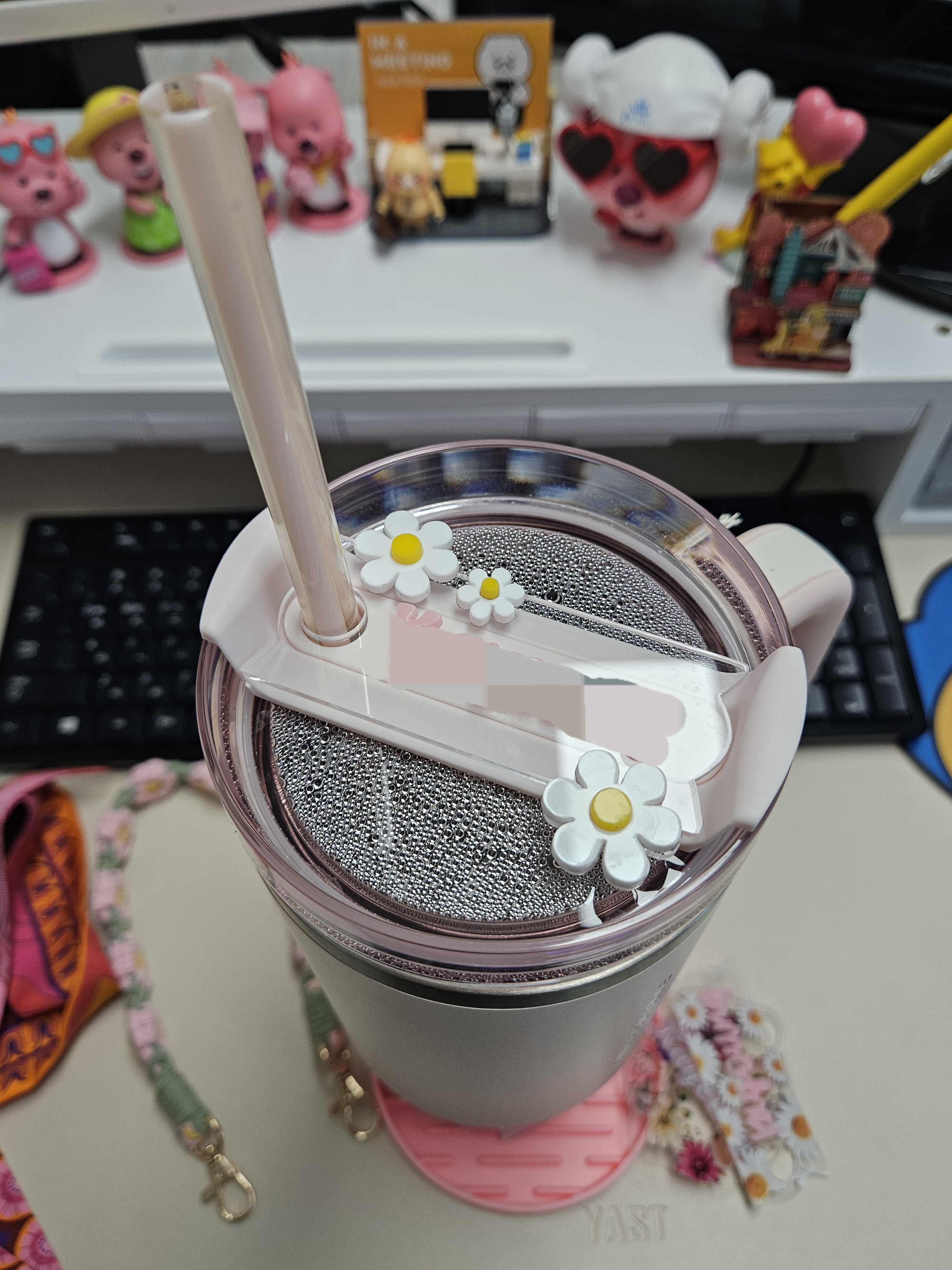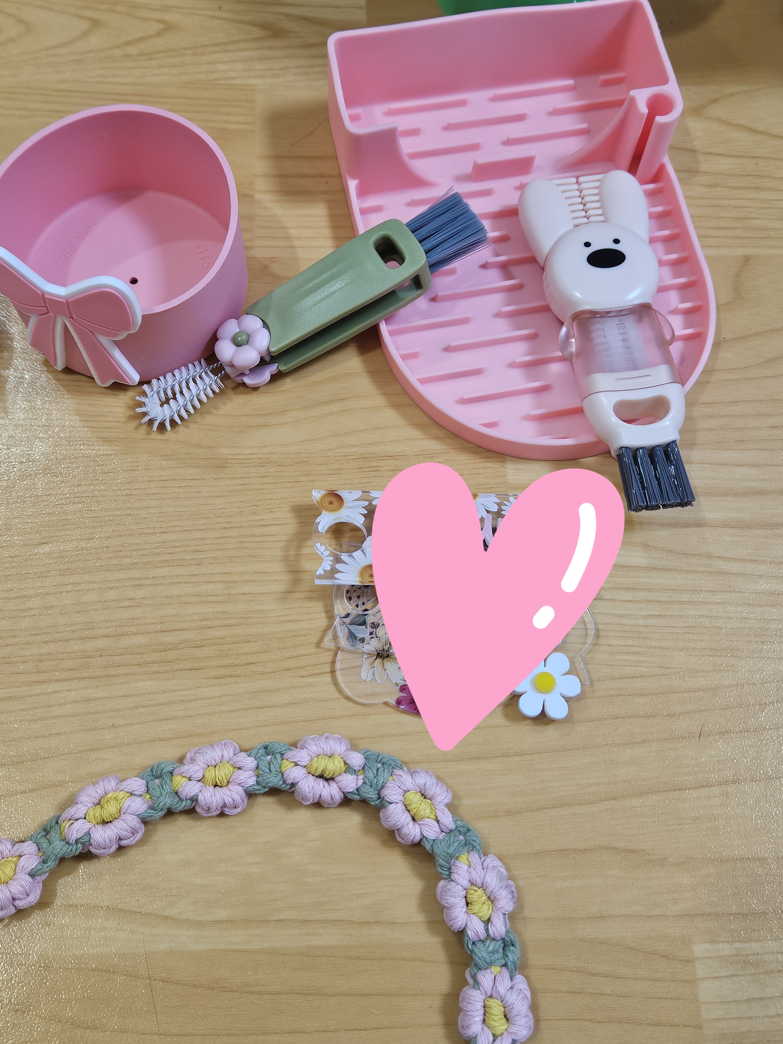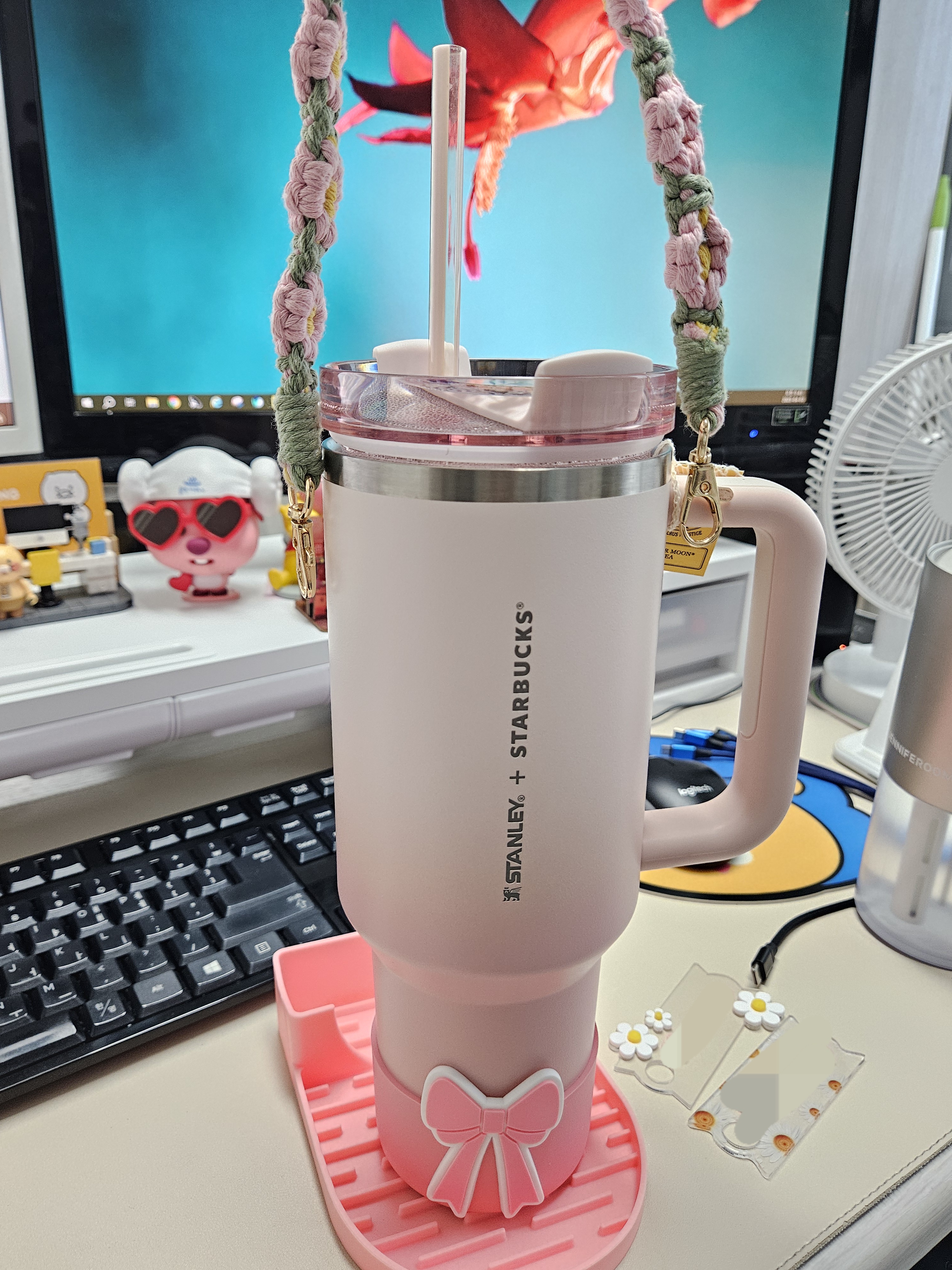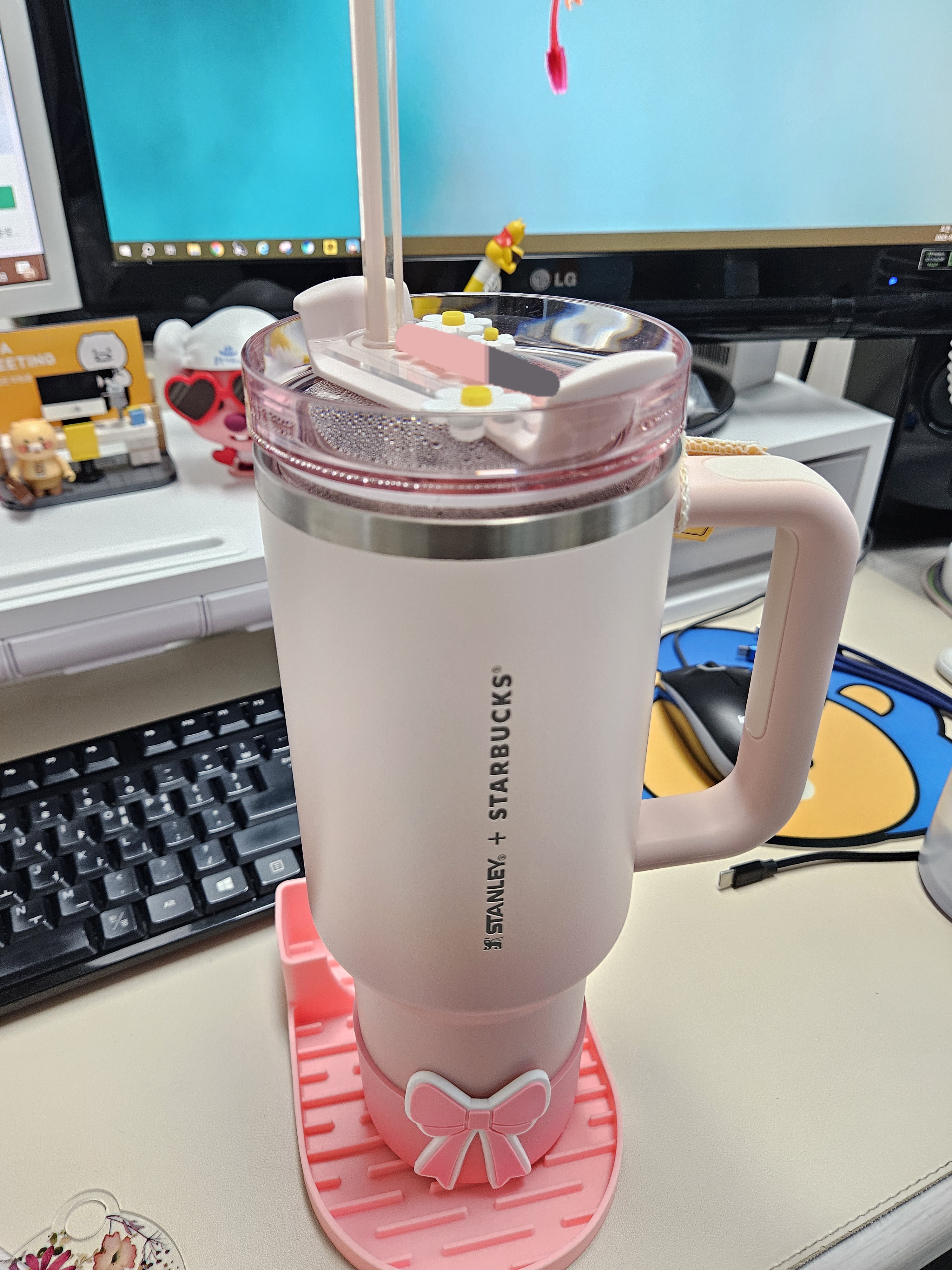 텀블러 사이즈가 크니 충격방지 보호를 위한 커버나 가방, 스트랩, 빨대커버, 텀블러 꾸미는 각종 액세서리도 많아서 딸기우유색 텀블러에 잘 어울릴 만한 것들로 골라 쇼핑했다.