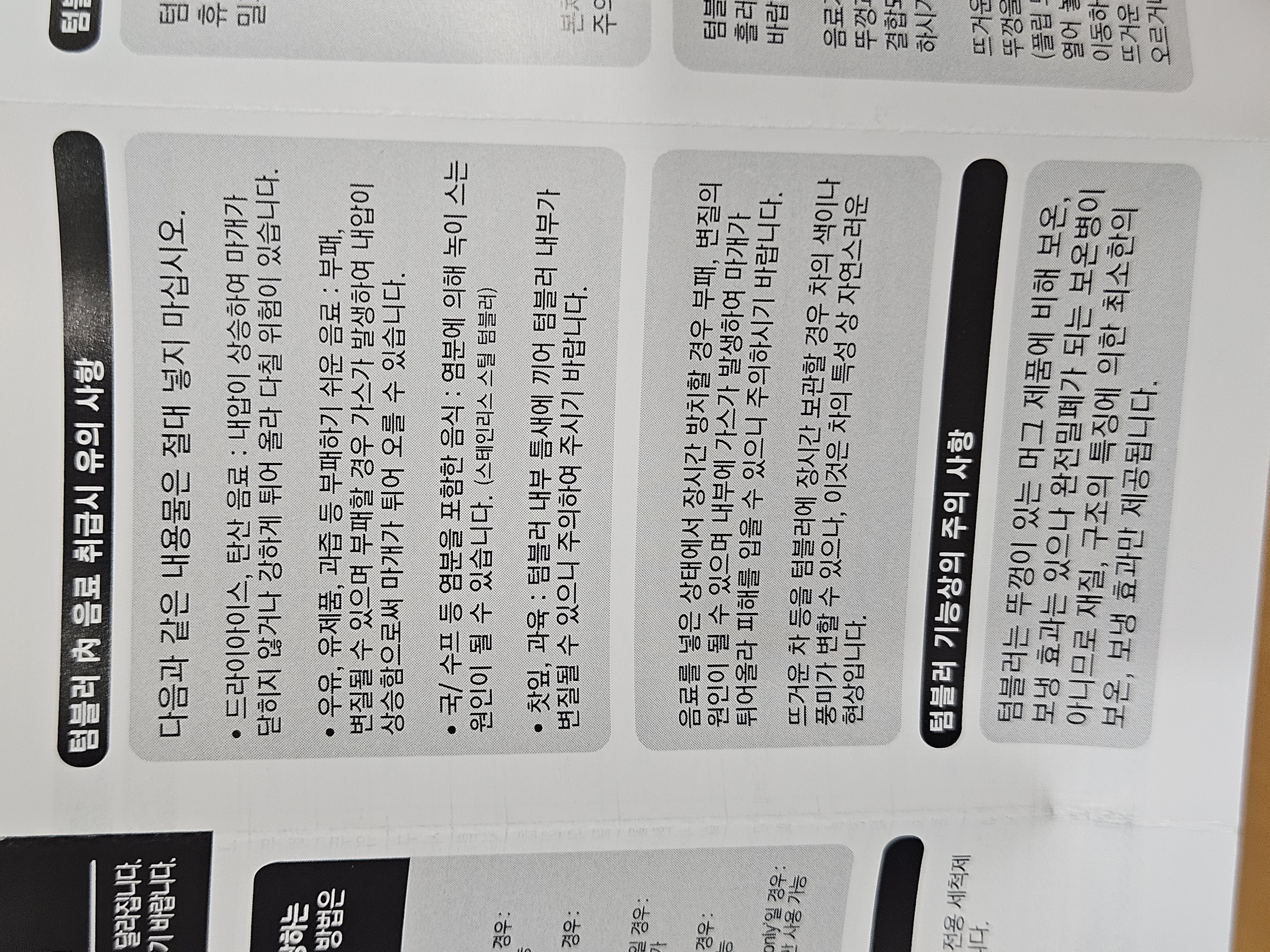 취급 관련 안내문 동봉되어 있으니 설명서 참고.