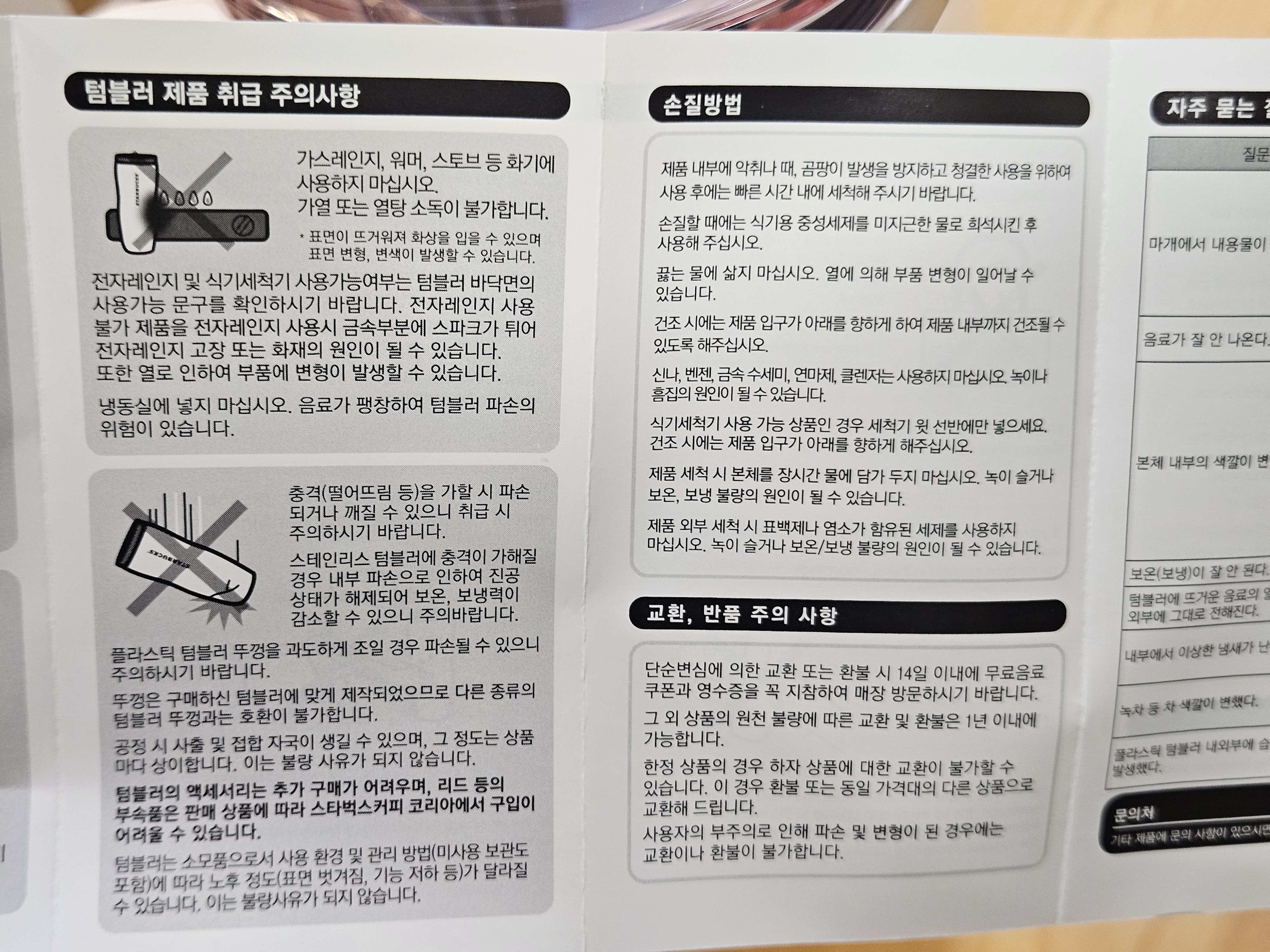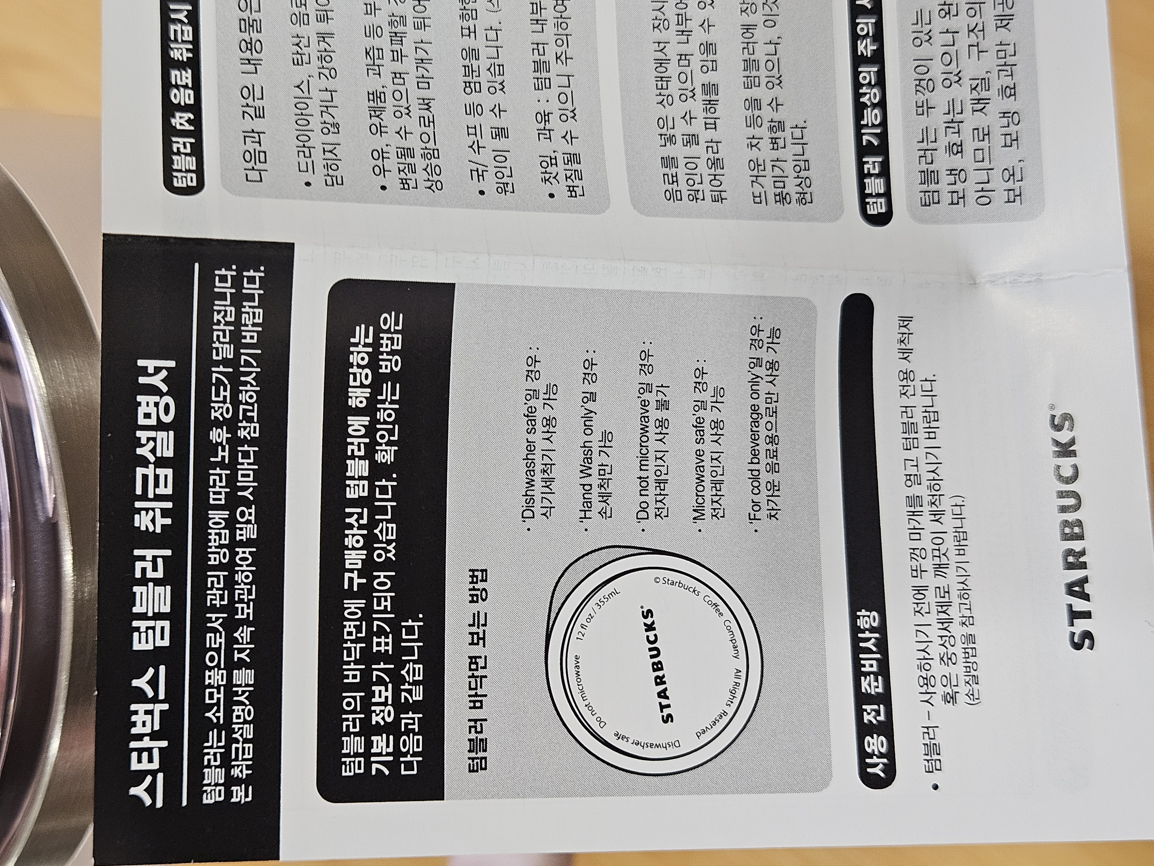 스타벅스 전용 박스에 담겨 완충지로 감싸져 잘 배송됐고 살펴보니 하자 없어서 세척 후 사용하려고 꺼내둠.