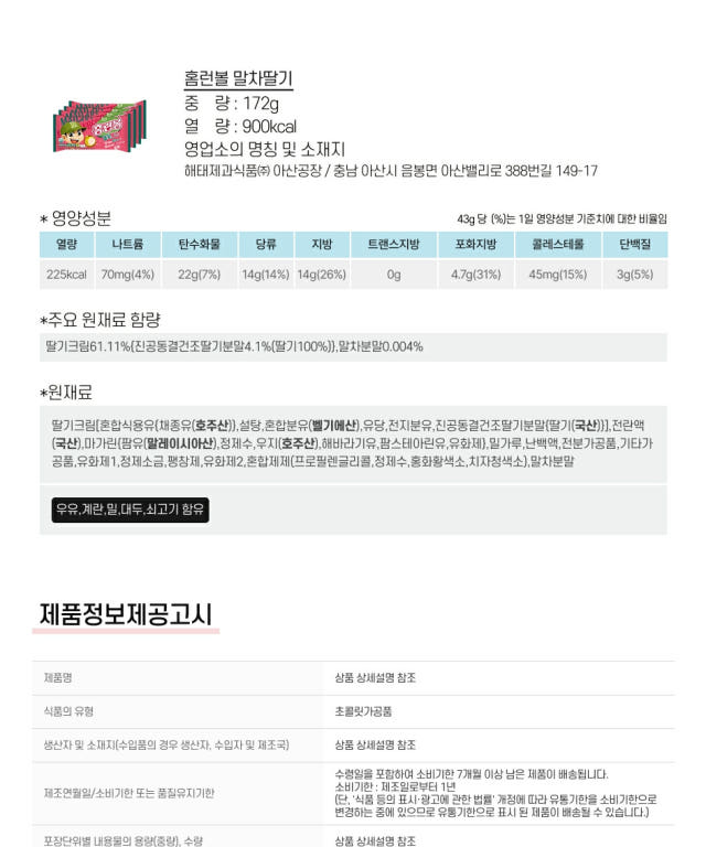 해태제과 홈런볼 말차딸기 스낵, 43g, 4개 - 비스킷 | 쿠팡
