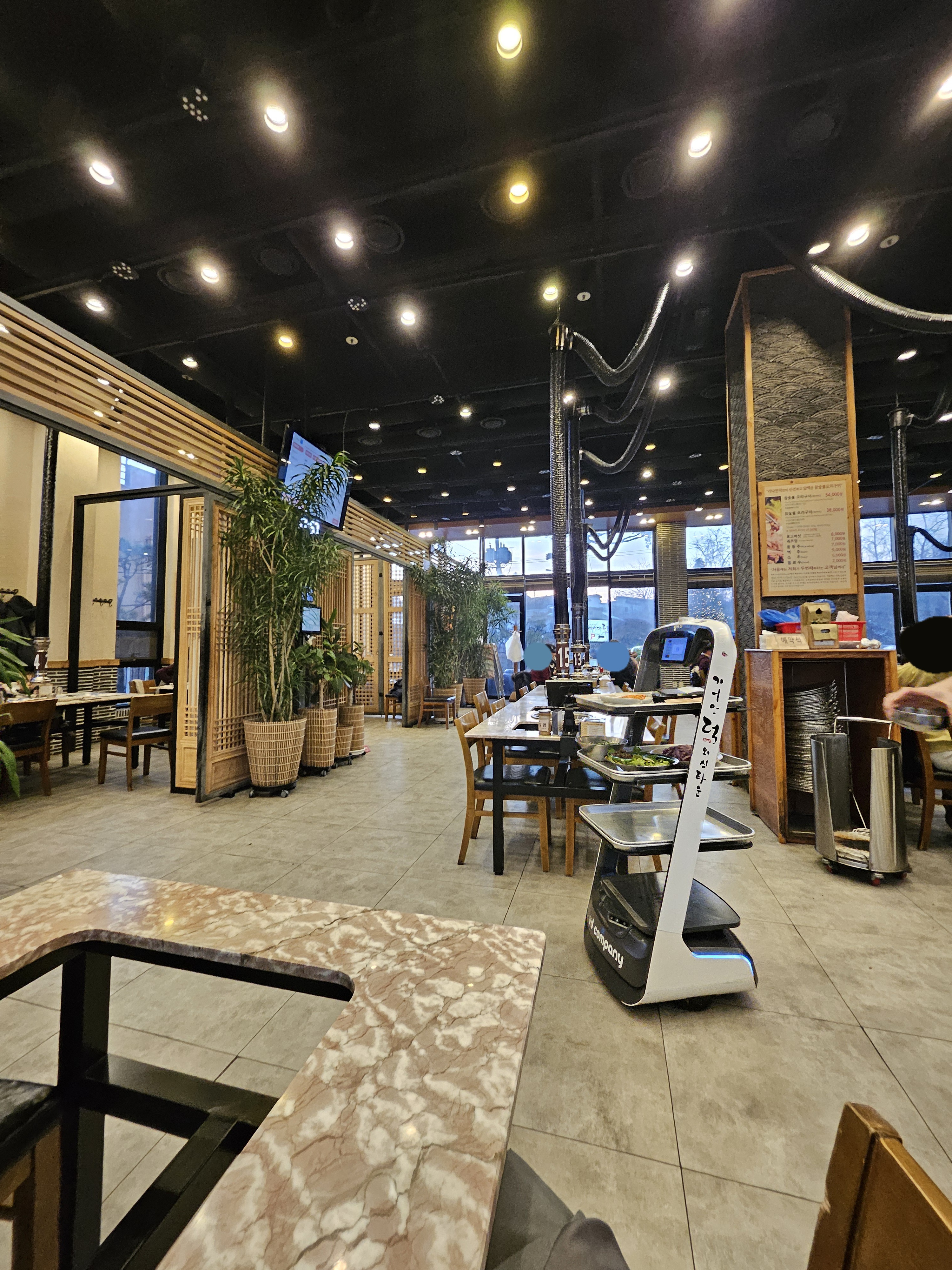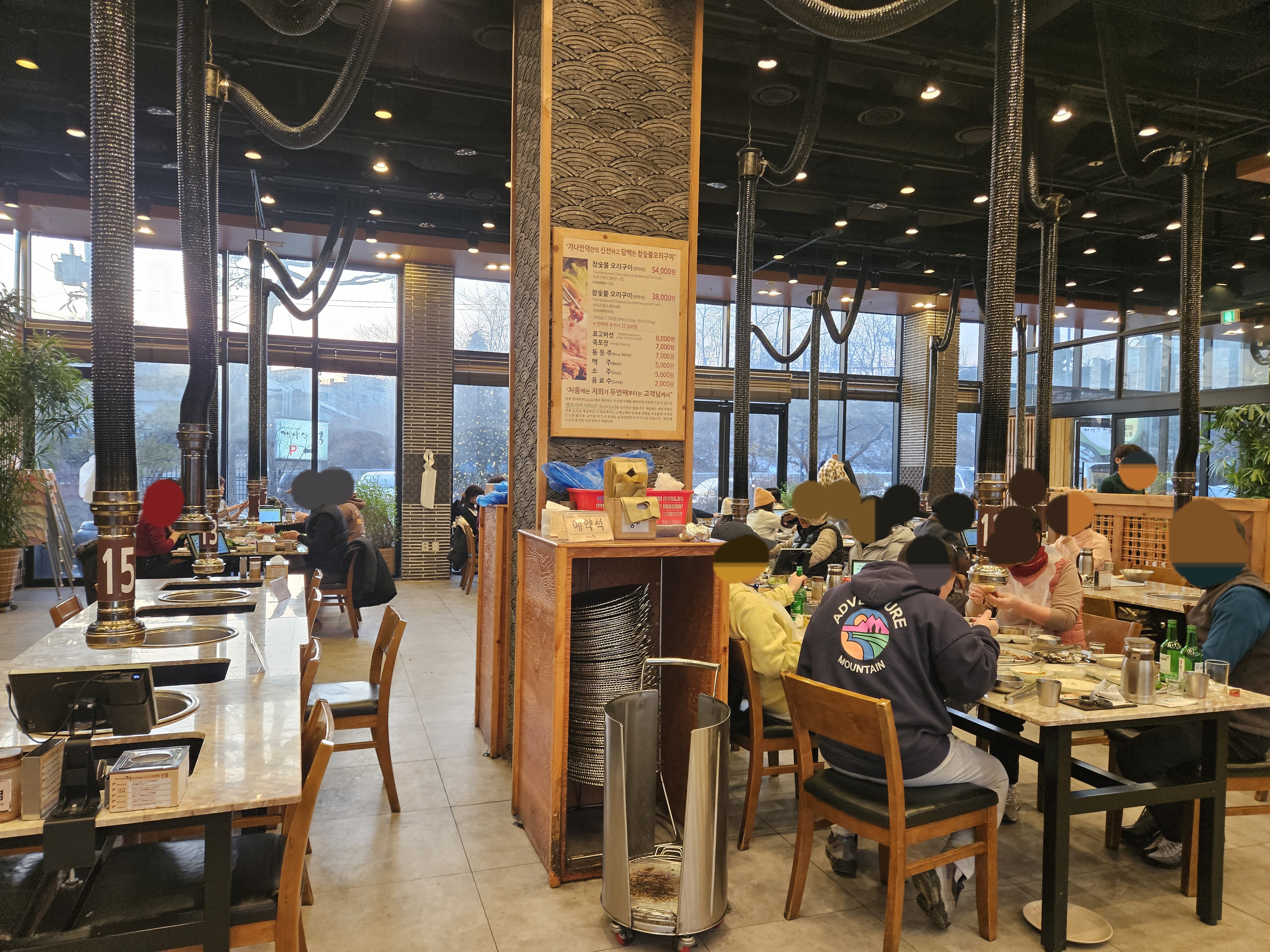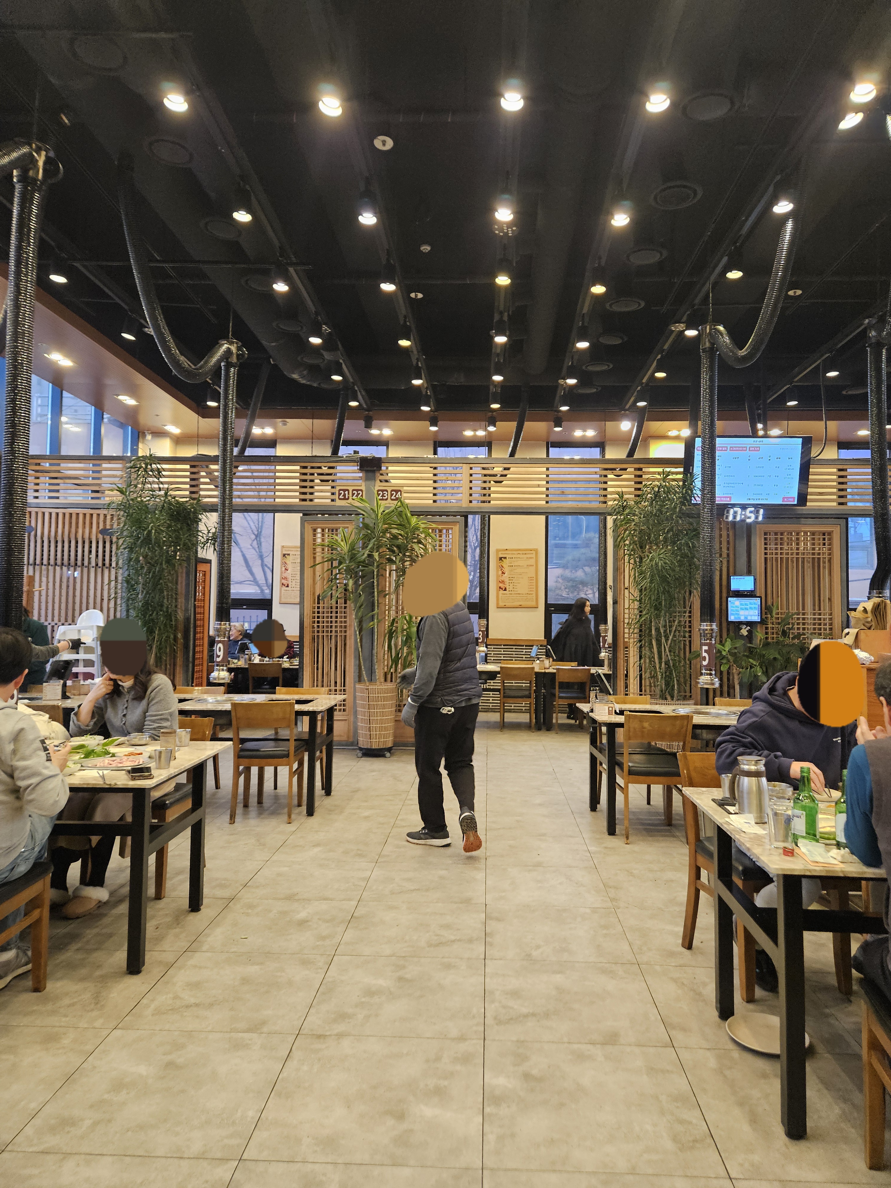 천고가 높고 창을 길게내서 매장이 더욱 넓어보이고 테이블간 좌석도 넓은 편에 룸도 마련되어 있으니 단체모임, 가족단위 식사하기 괜찮은 곳.