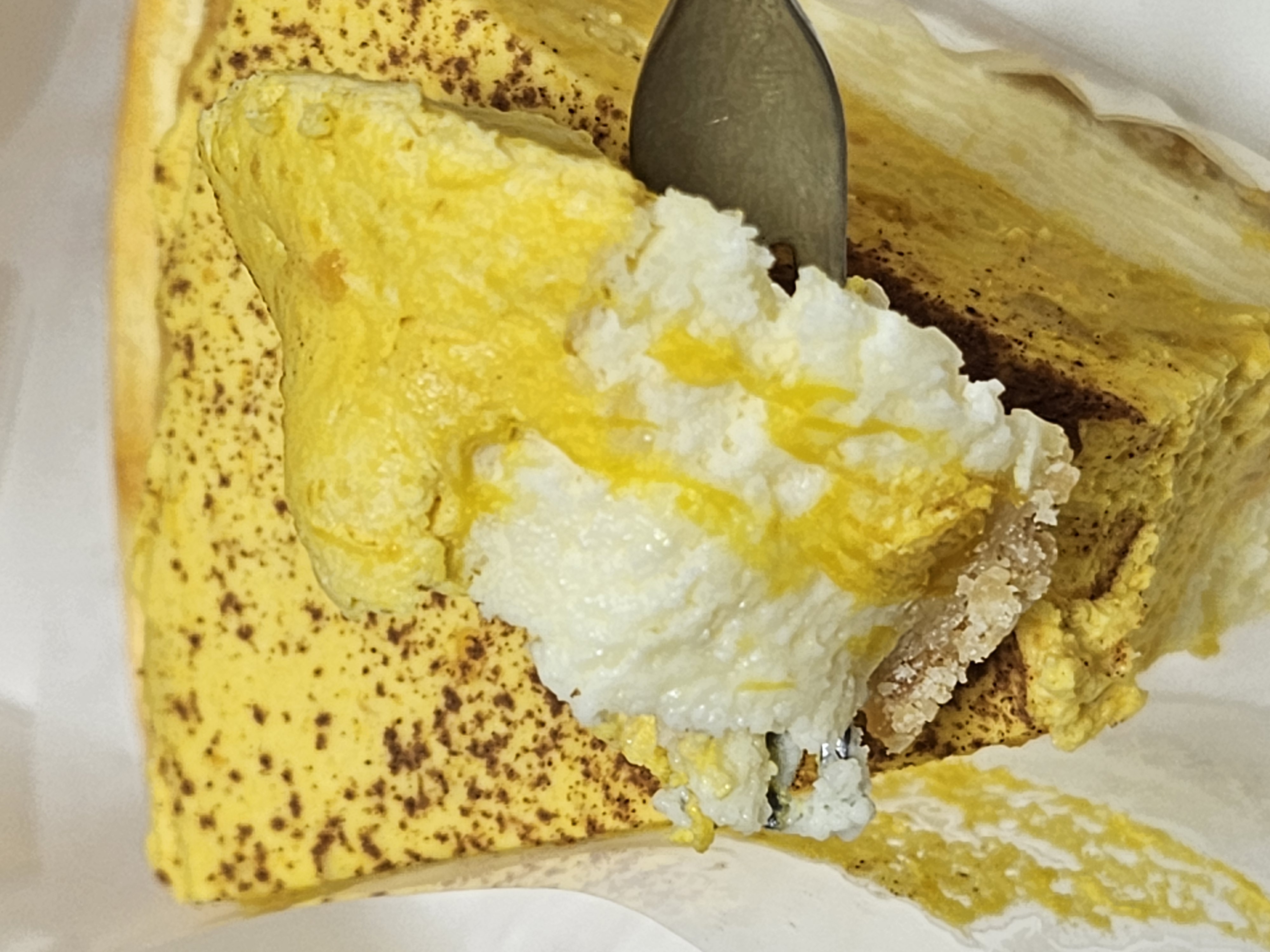 다행히 좋아하는 단호박 치즈케이크(8,7)가 남아있어서 하나만 포장해왔다. 과일 많이 들어간 케이크도 괜찮긴한데 나는 빵시트보단 치즈 베이스의 케이크를 좋아해서 하나만 주문함.