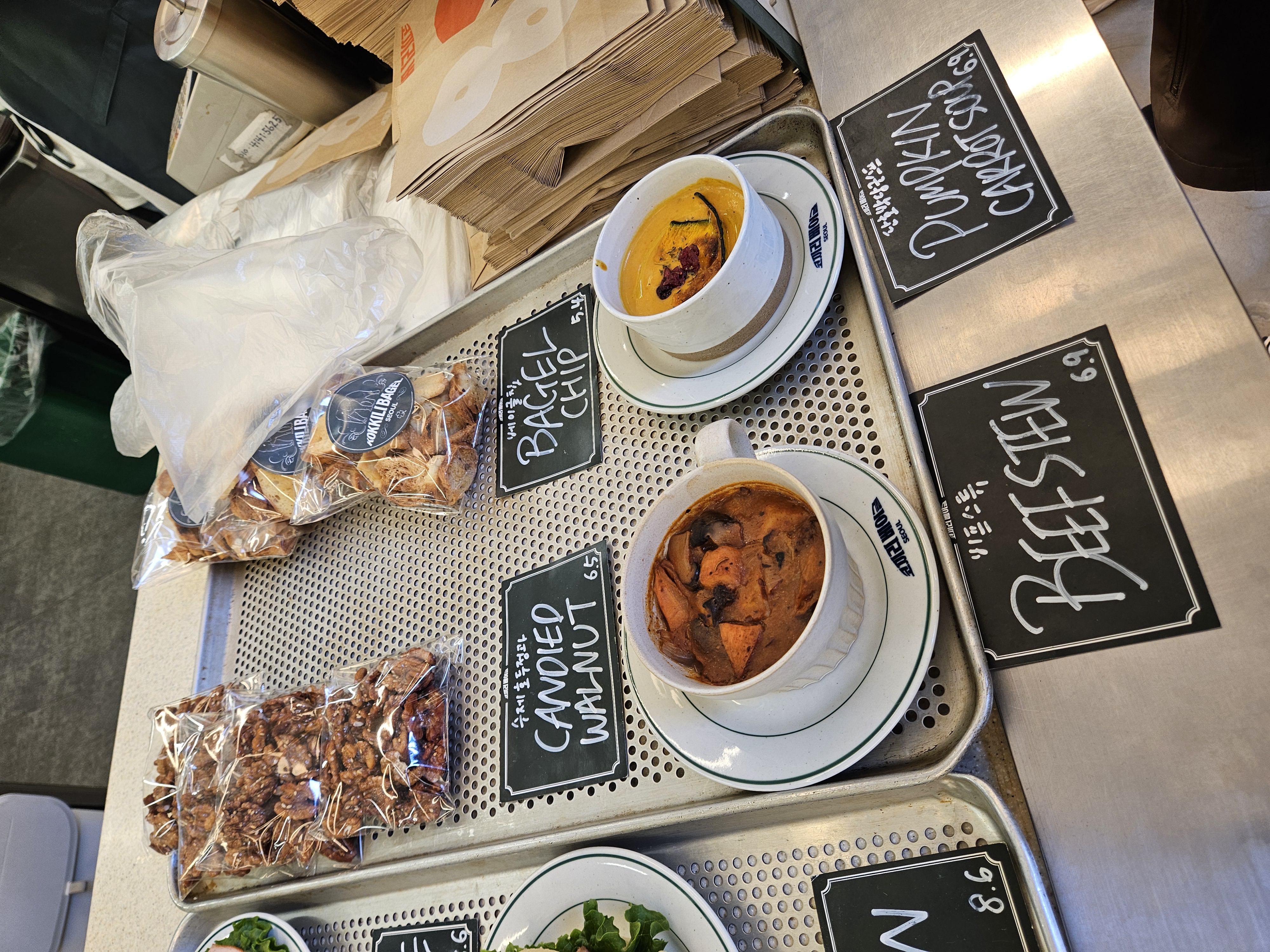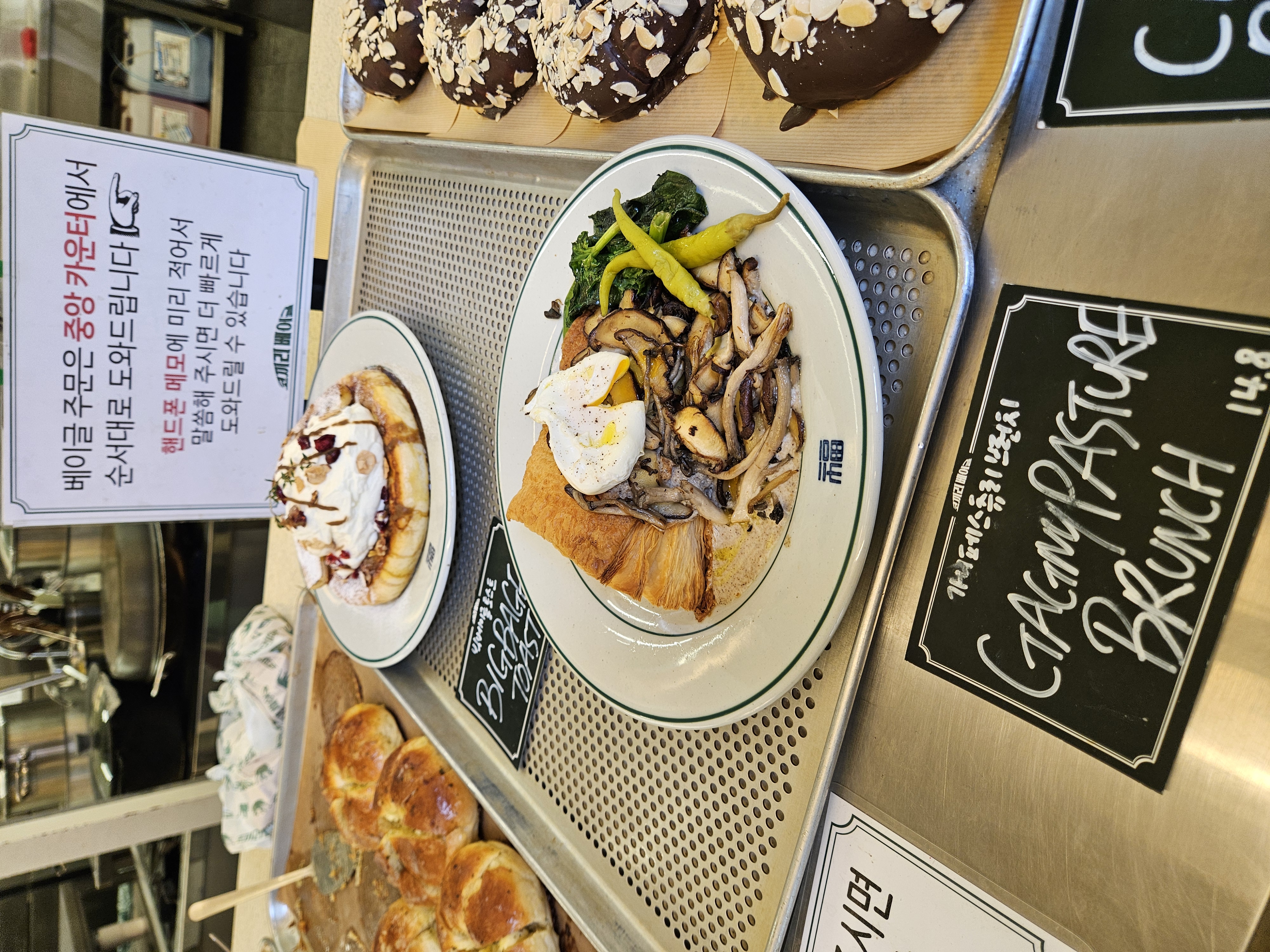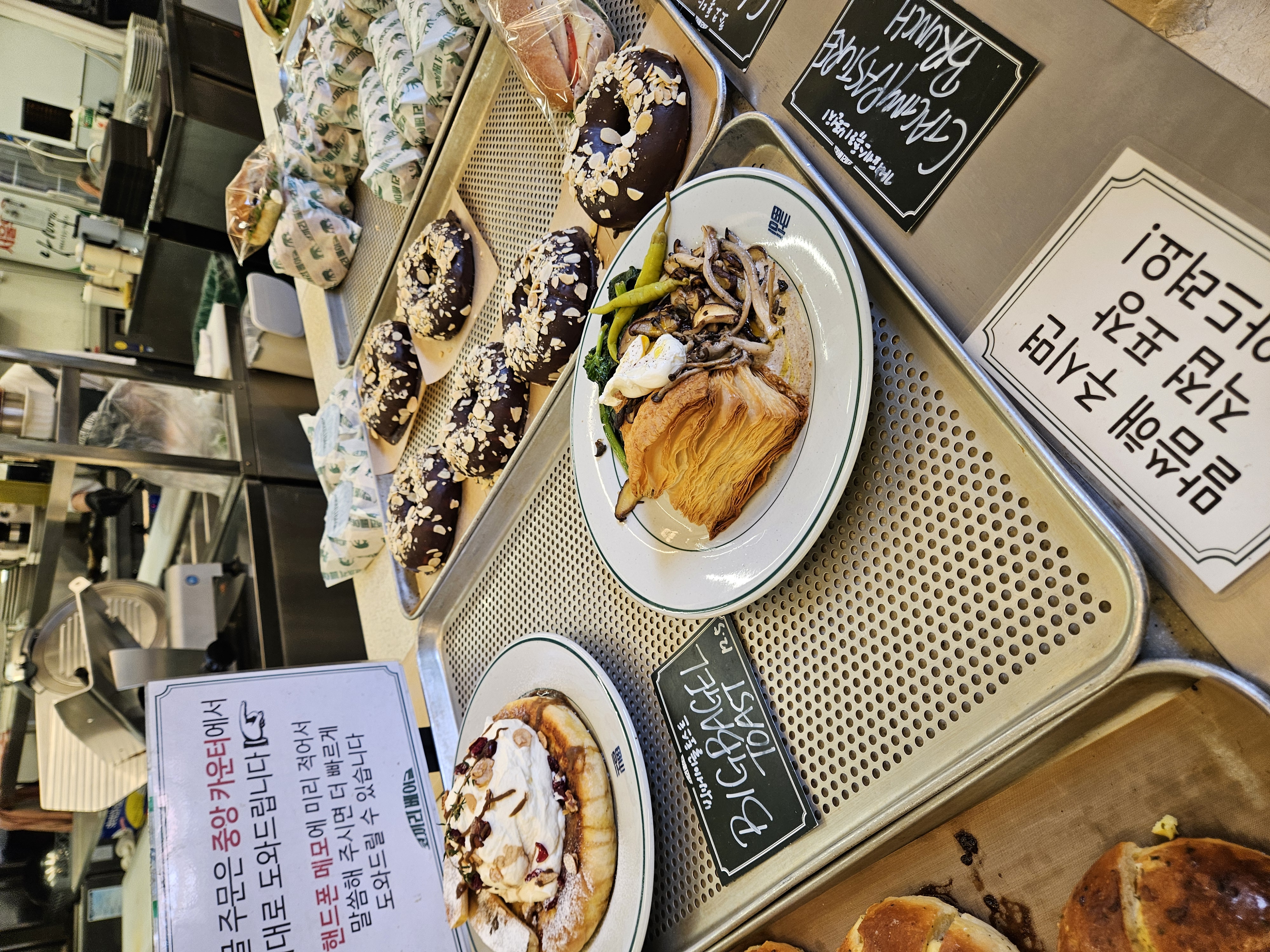 베이글 토스트엔 크림이 너무 산더미처럼 올려있어서 투머치 하다 싶었으나 패스츄리 브런치는 버섯, 채소가 많아 점심에 먹기 좋을 것 같고 샌드위치와 쿠키, 스튜와 수프도 있어서 식사대용으로 좋아 보인다.