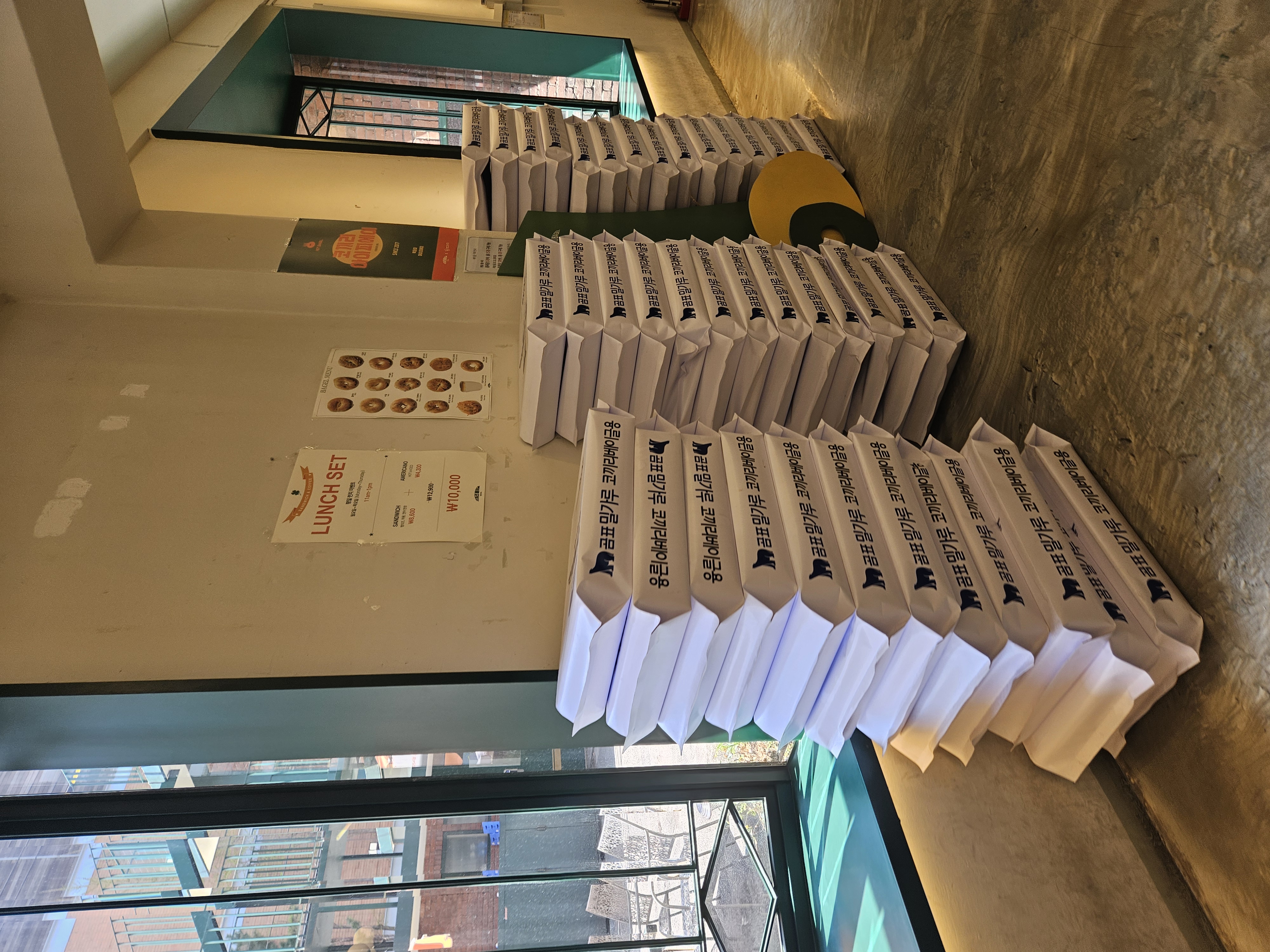 주문은 베이글 종류와 수량 메모해서 카운터에서 말하면 바로바로 담아준다. 종이봉투에 담아주긴 하는데 많은 수량 구매할 경우 장바구니 지참하면 좋음. 유상비닐봉지는 100원.