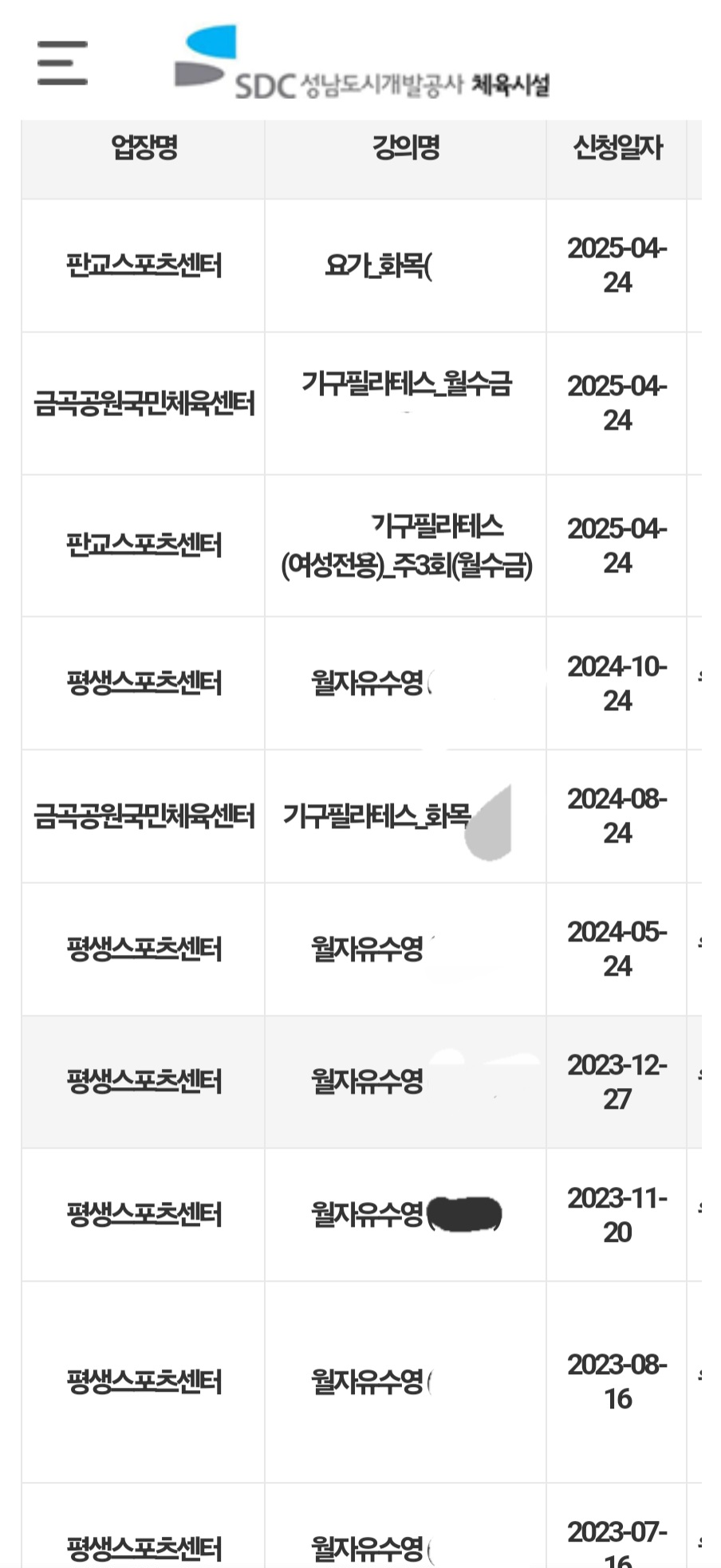 평생스포츠센터 자유수영을 시작으로 성남도시개발공사 체육시설 N년차 이용 중인 성남시민!