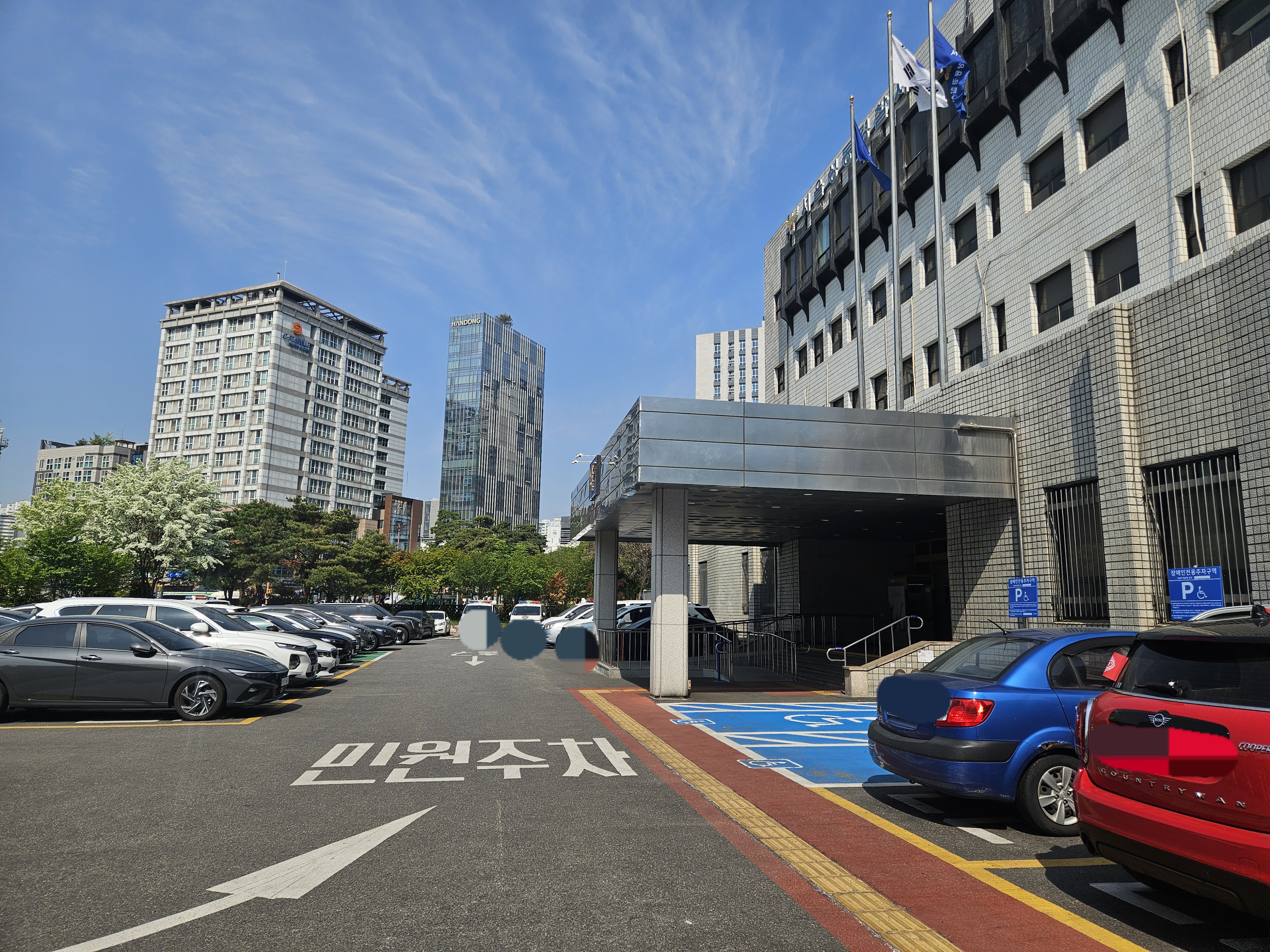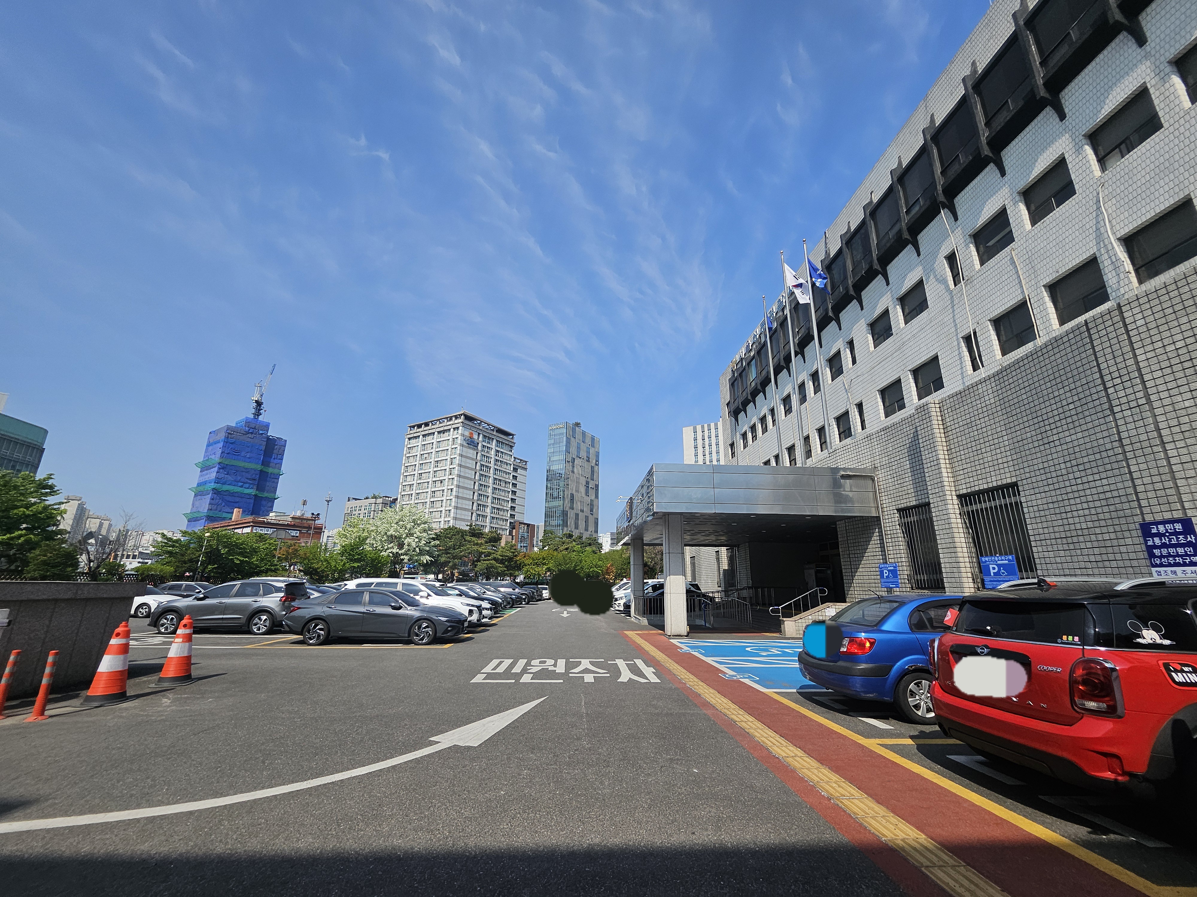 민원실이 오전 9시부터라는데 9시 반쯤 성동경찰서 네비 찍고 도착해서 경찰서로 들어가면 주차 차단기 열리자마자 민원인 주차구역이 비어있어서 그대로 직진 후 주차하고 우측에 종합민원실로 입장.