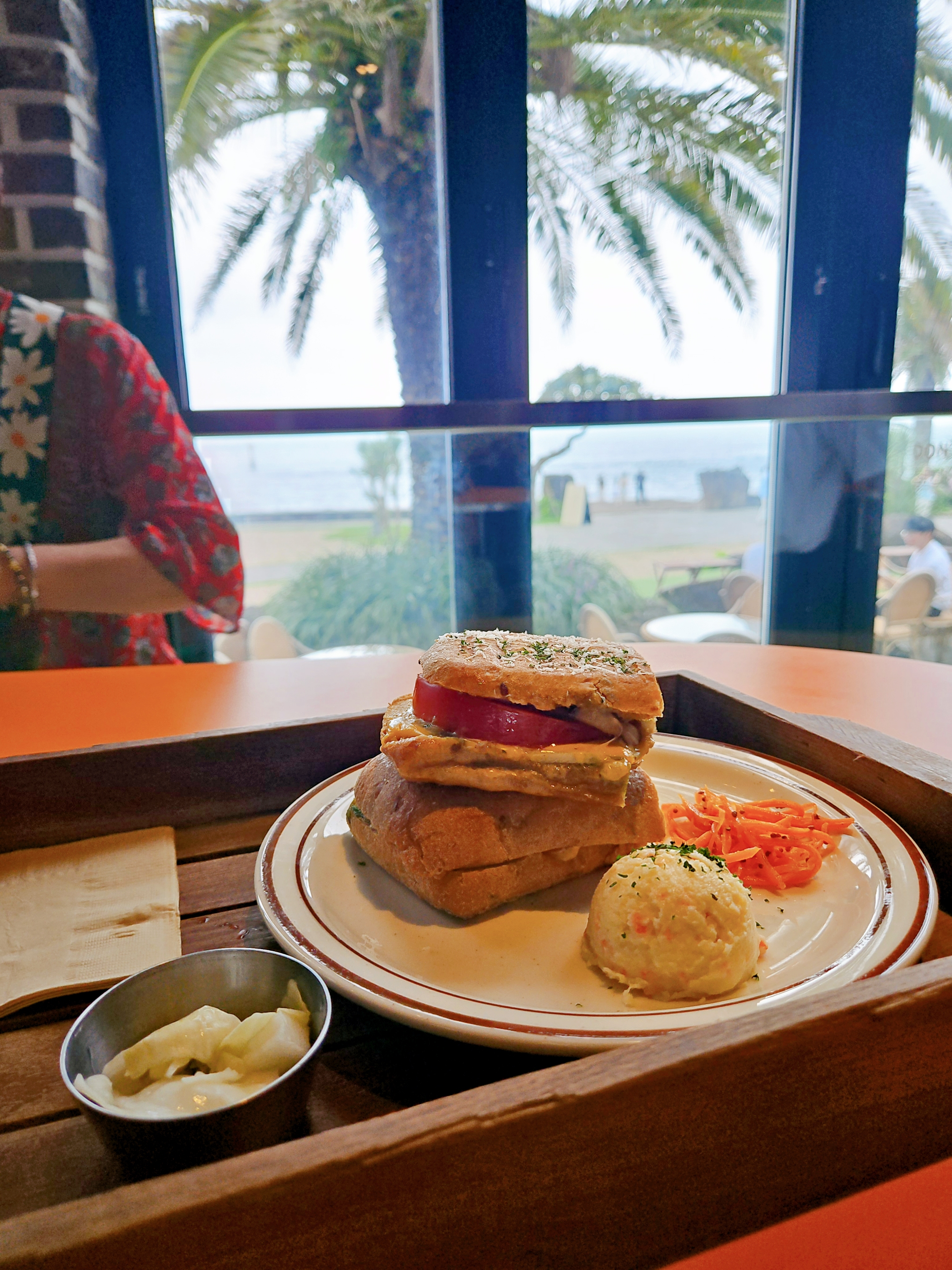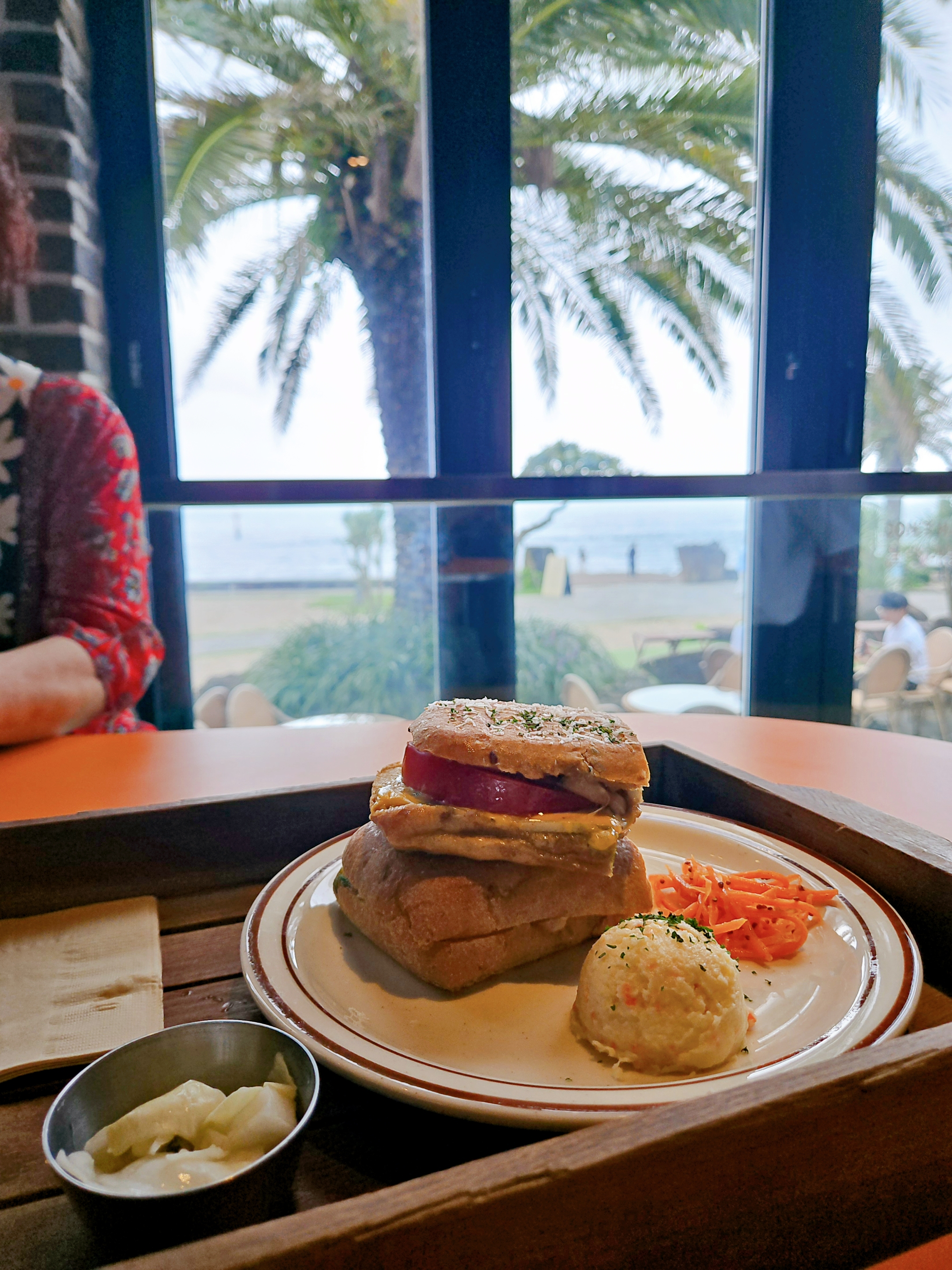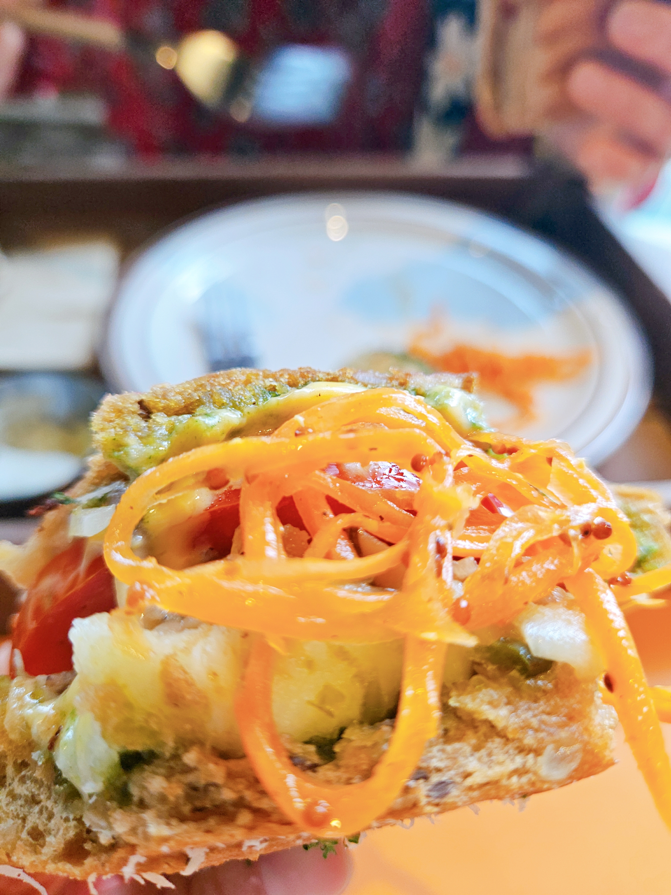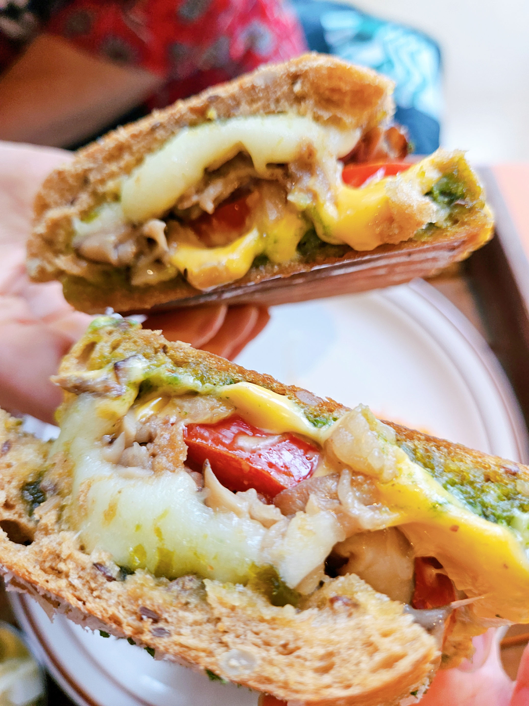 요거트, 커피 맛 모두 괜찮았고 고기, 치즈, 채소 듬뿍 넣어 구운 비프 파니니는 감자 샐러드 1 스쿱과 당근라페가 가니시로 나와 한 끼 식사로도 충분했다.