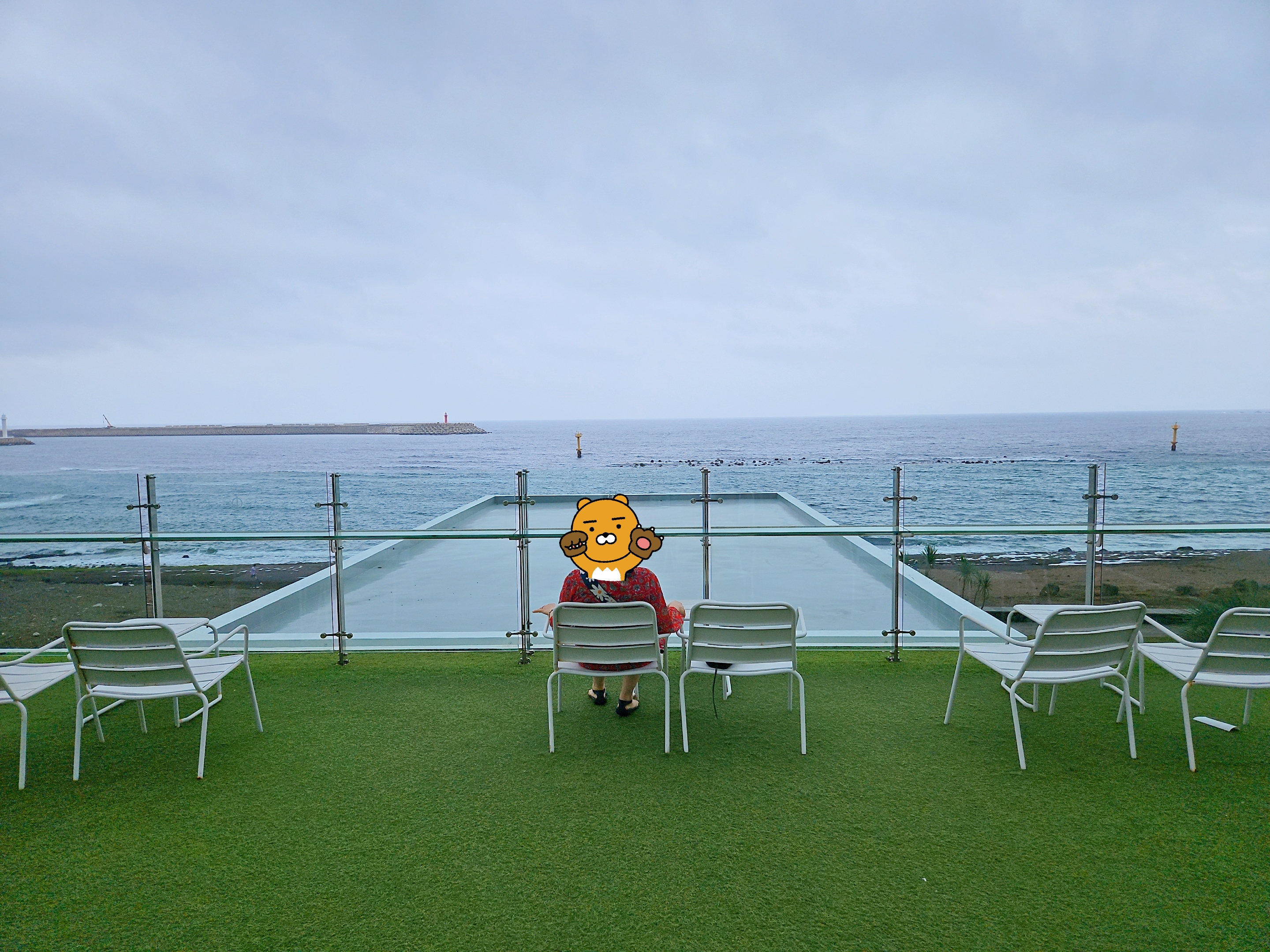 주차장에 다다랐는데 차박, 차크닉 하고 싶을 정도로 산방산과 바다를 한눈에 담을 수 있는 멋진 풍경을 자랑하는 곳이라 주차장에 도착해서 엄마 먼저 카페로 들어가 자리먼저 잡아달라고 말씀드렸음 ㅎㅎ