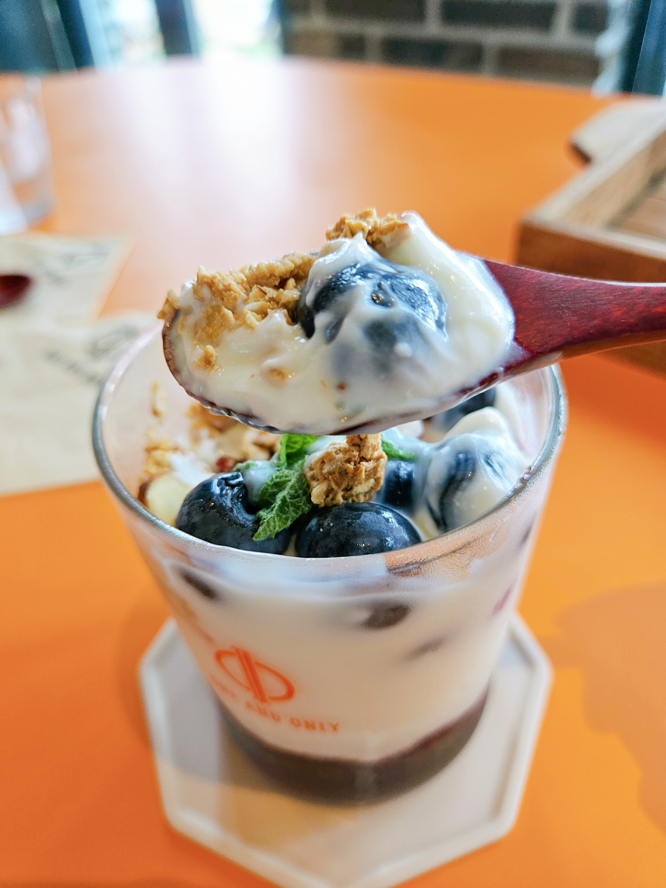요거트는 블루베리잼과 블루베리, 라즈베리, 체리, 그래놀라를 곁들인 요거트 볼. 나처럼 커피나 탄산 안 마시는 사람한테 딱 좋은 메뉴.