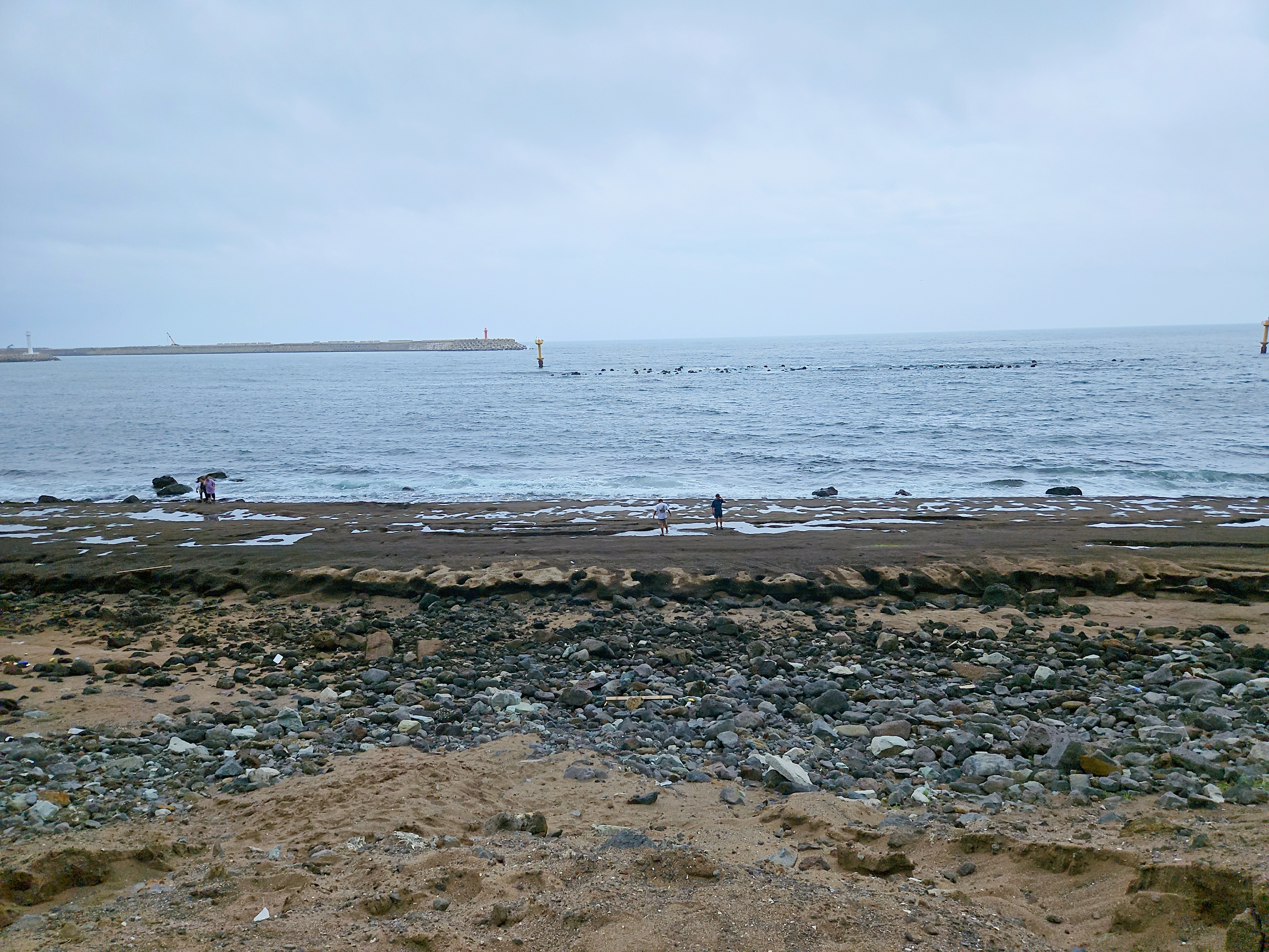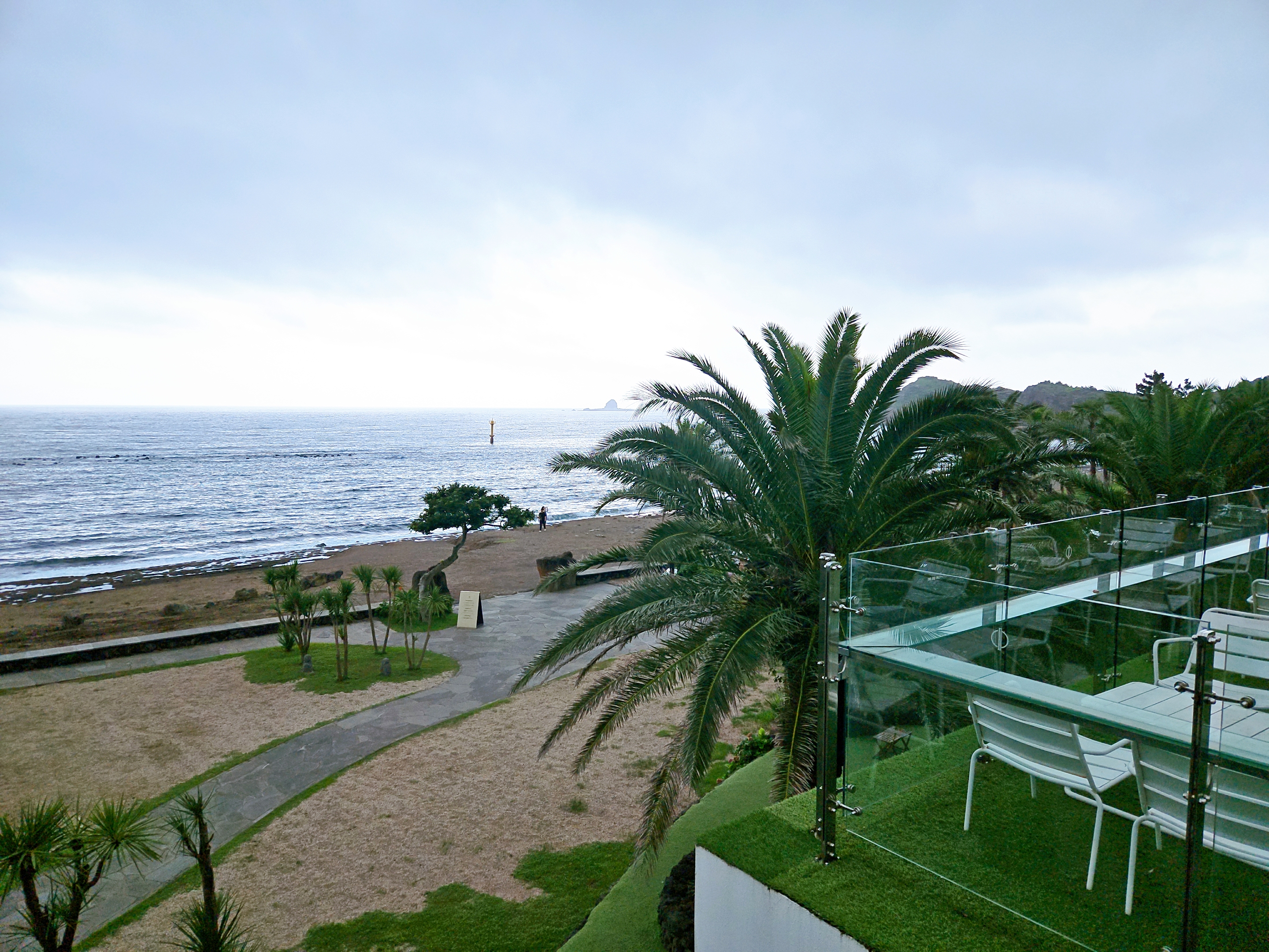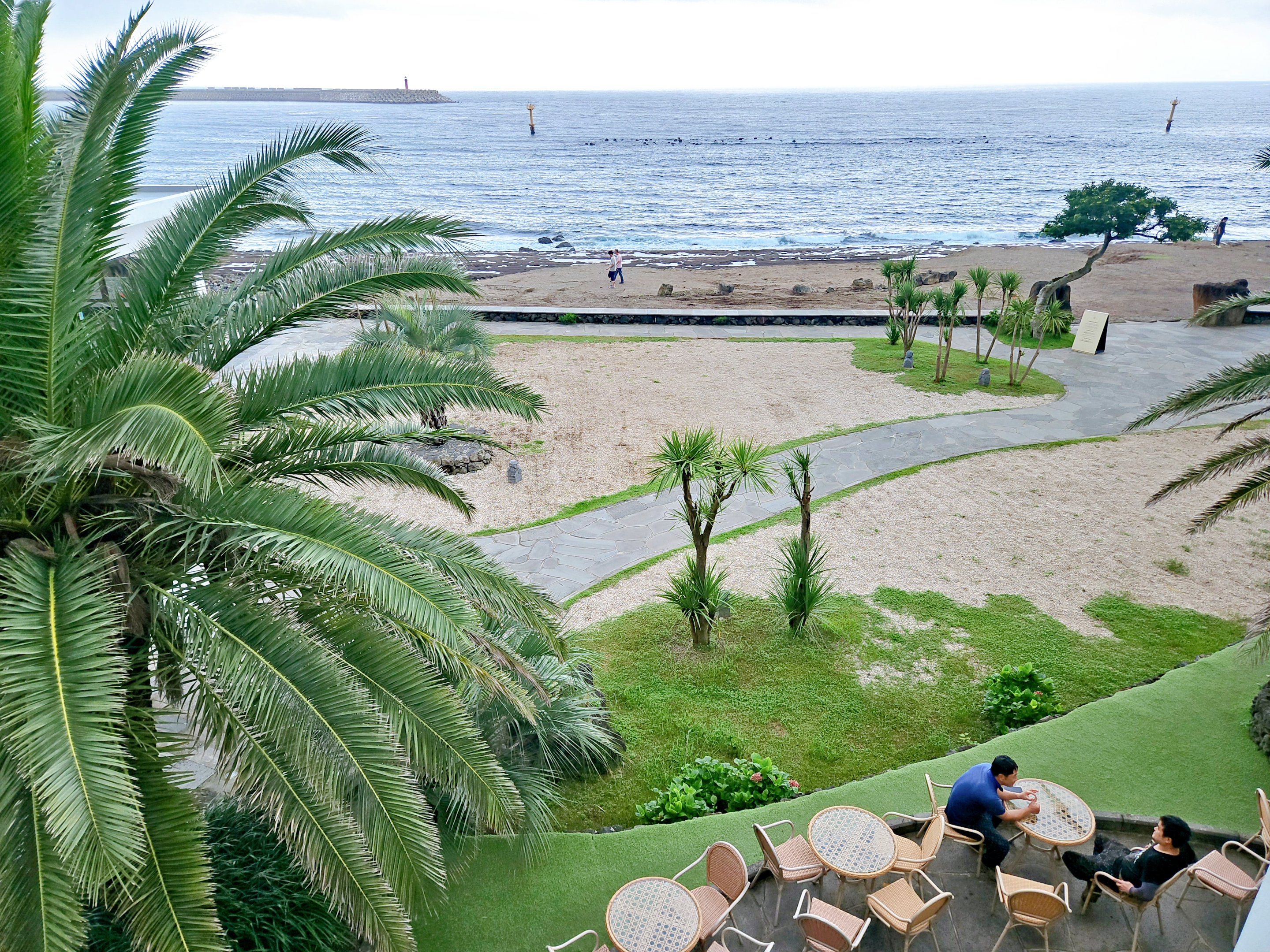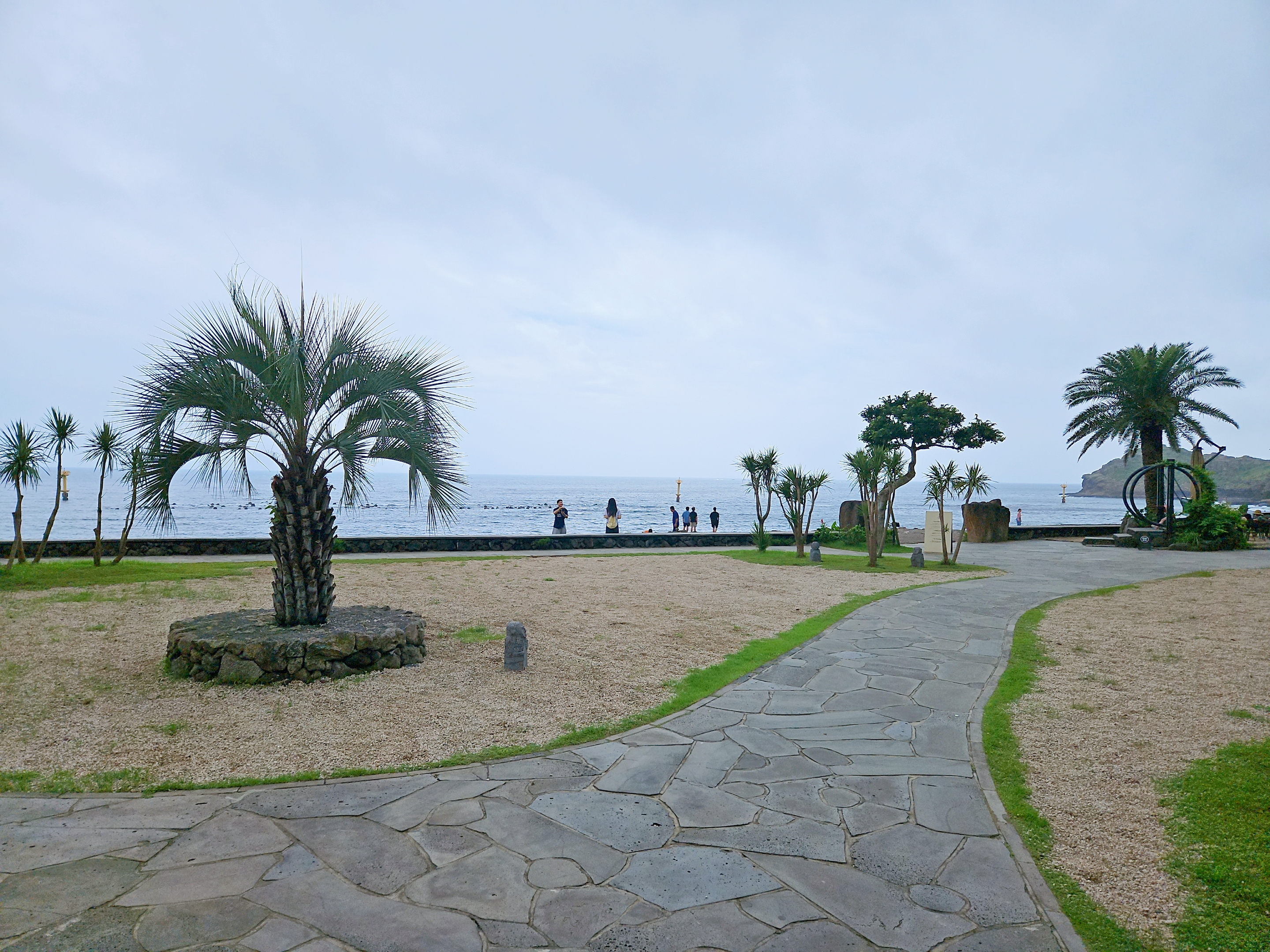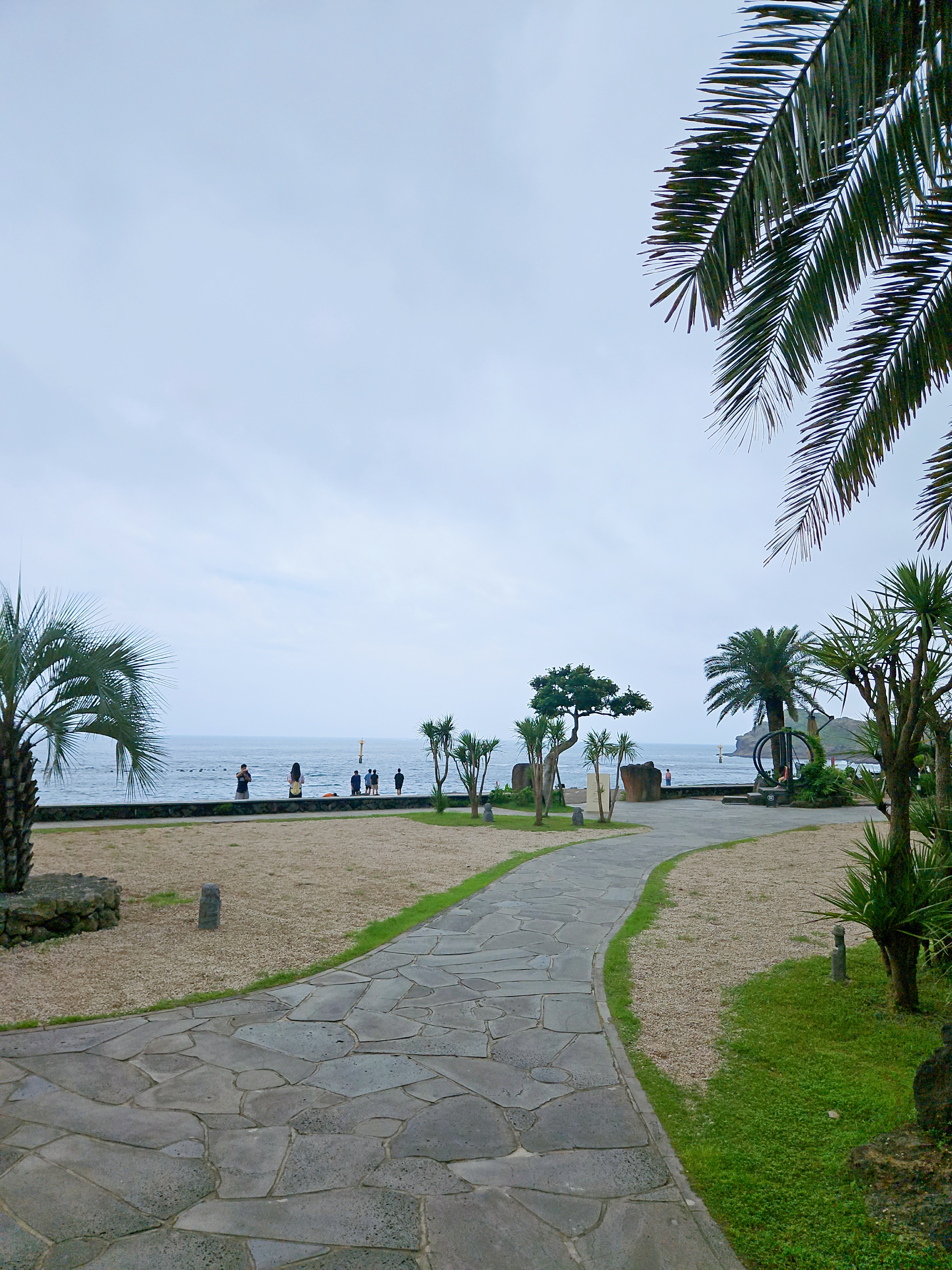 백사장이 아닌 자갈과 흑색 모래 등이 깔려있는 바다로도 카페 앞마당을 지나 바로 걸어 나올 수 있어 바다와 산 뷰 모두 감상할 수 있었던 제주 서귀포 산방산 카페 원앤온리.