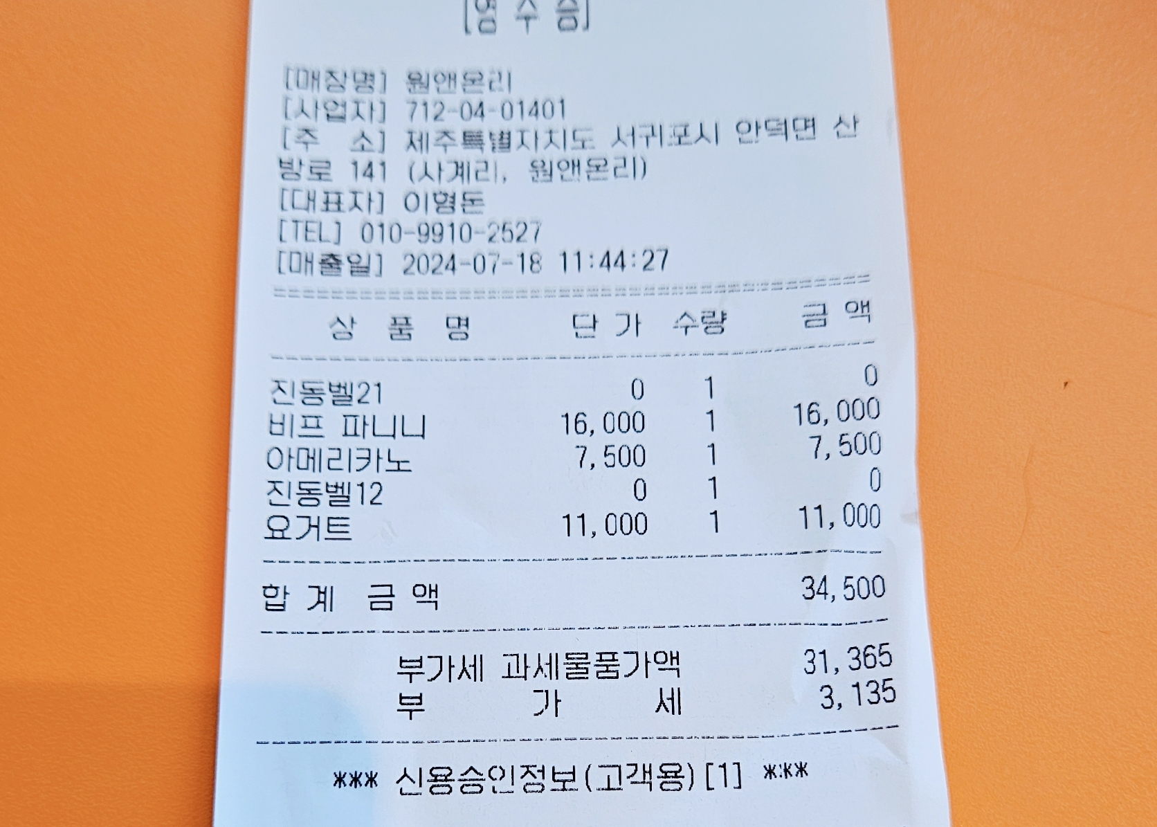 주소 : 제주 서귀포시 안덕면 산방로 141 원앤온리 (사계리 86)