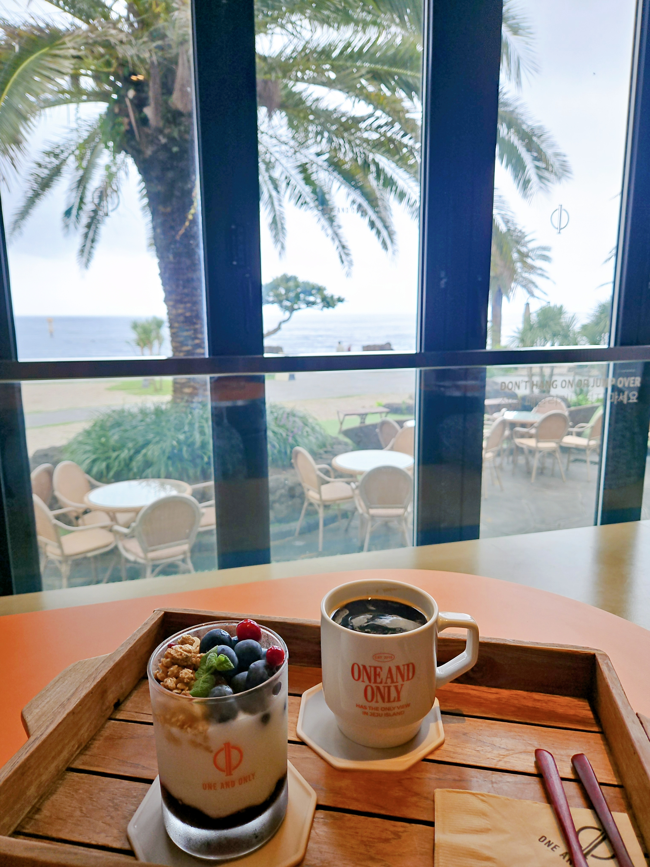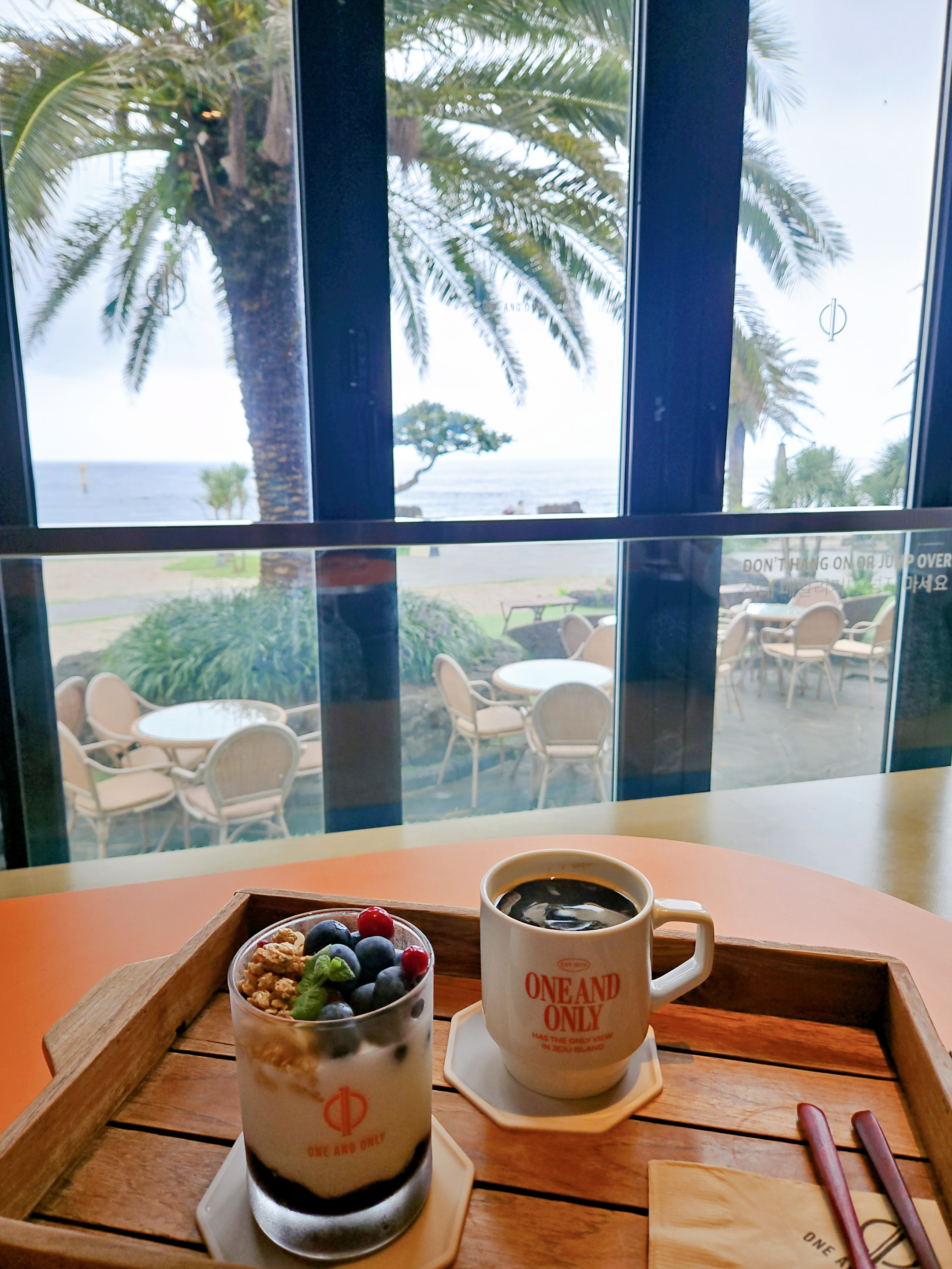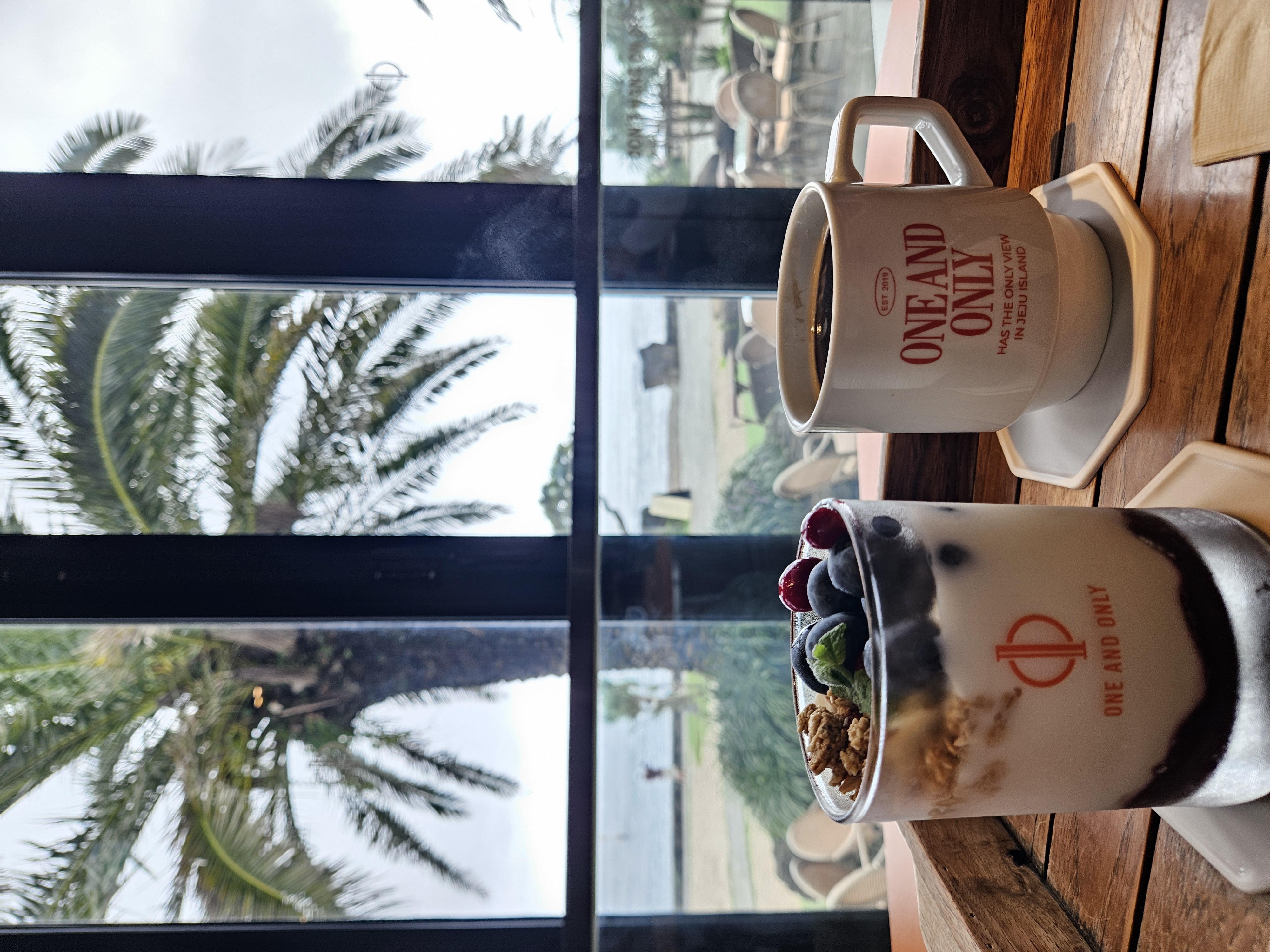 창가 테이블로 자리에서 주문한 메뉴 사진에 담아보니 이국적인 뷰에 조만간 제주도 다시 가고 싶은 마음이 샘솟네.