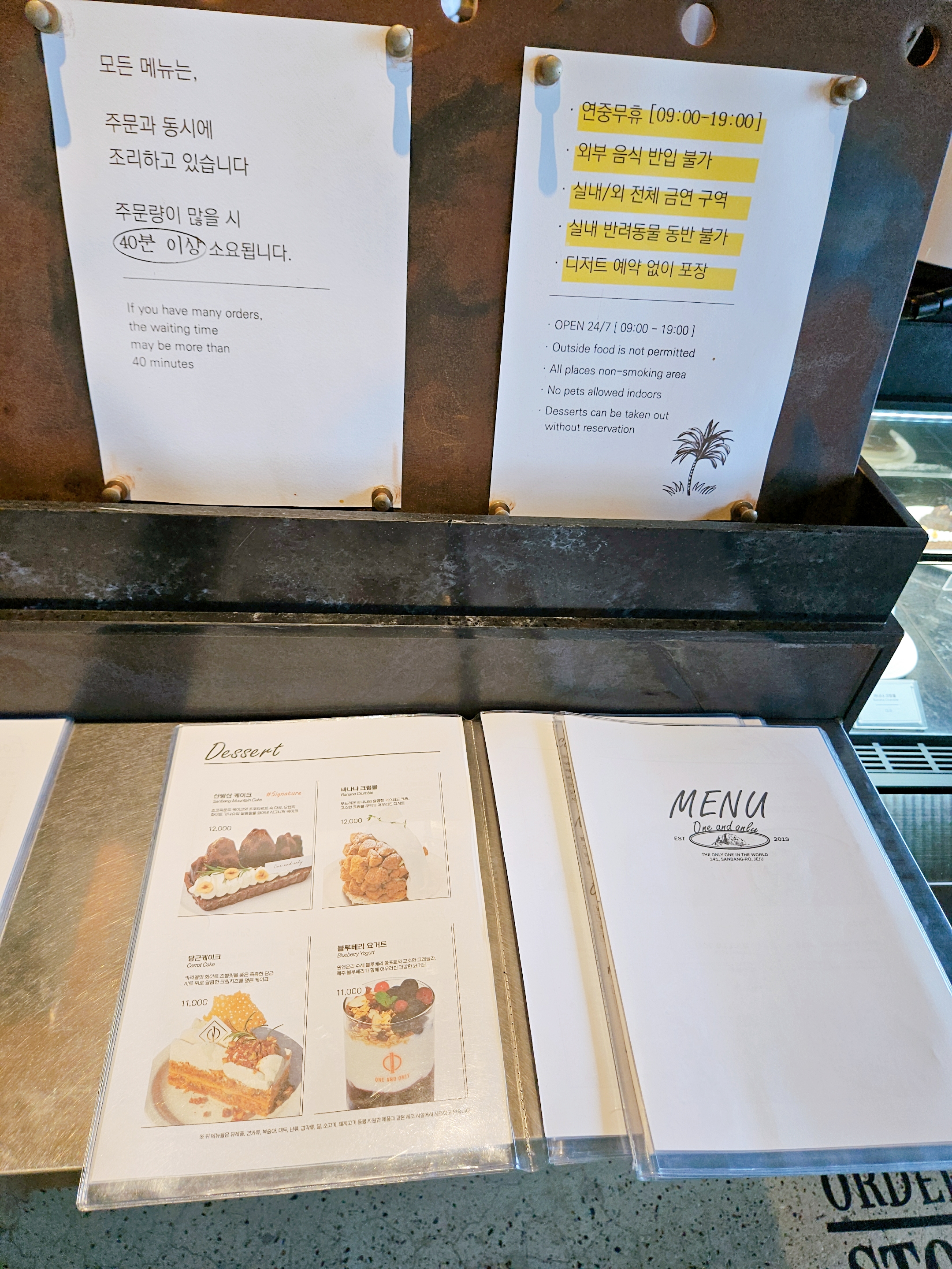 실내 반려동물 동반 불가 / 디저트 예약 없이 포장 가능