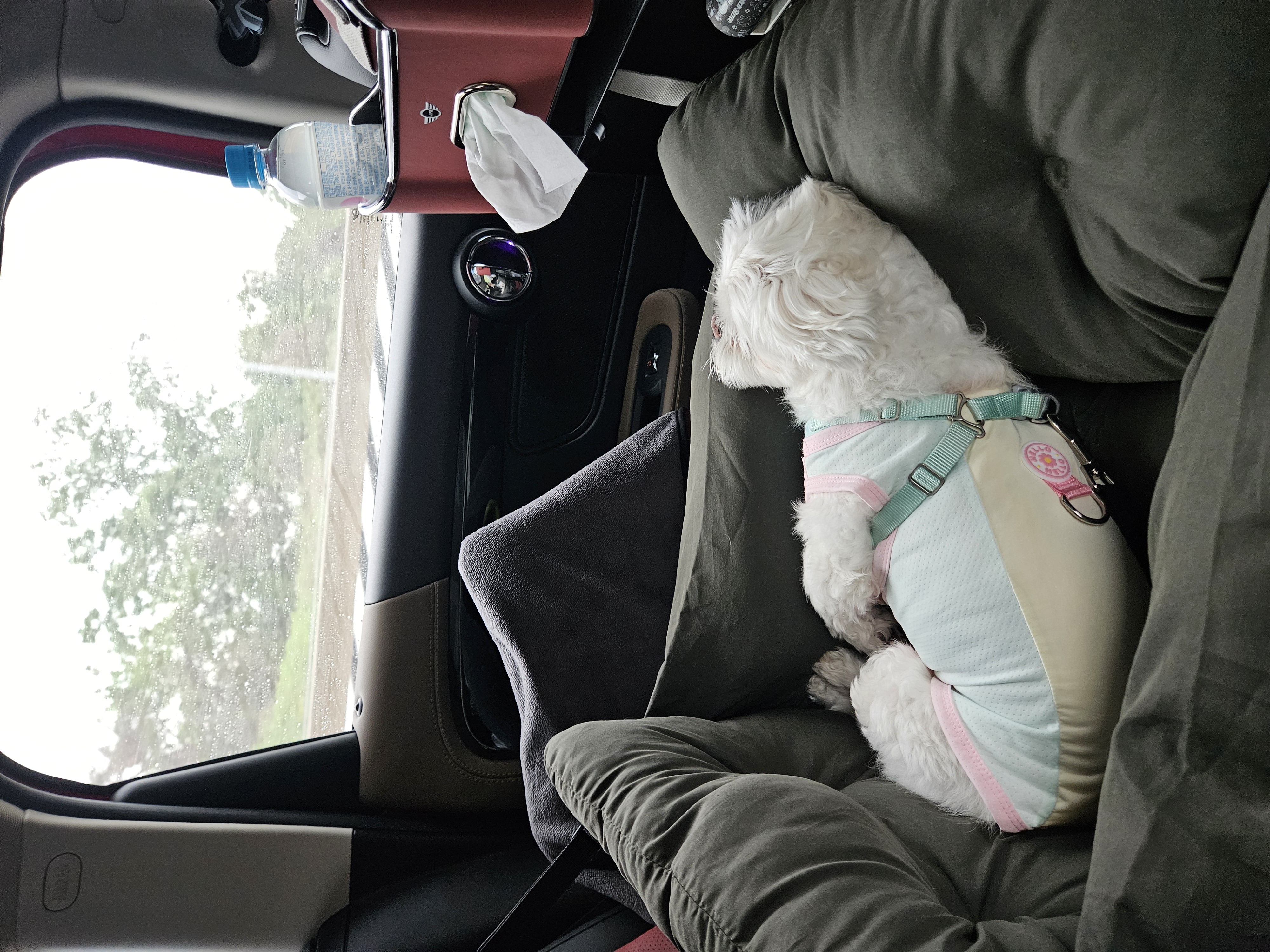 아빠가 강원도 갈 때 운전하셔서 내가 뒷자리에 앉아 내 동생 댕댕이 꼬까미 전담하고 혹시 모를 비상(?) 업무 대비차 랩탑도 준비했음 💻😑🥸