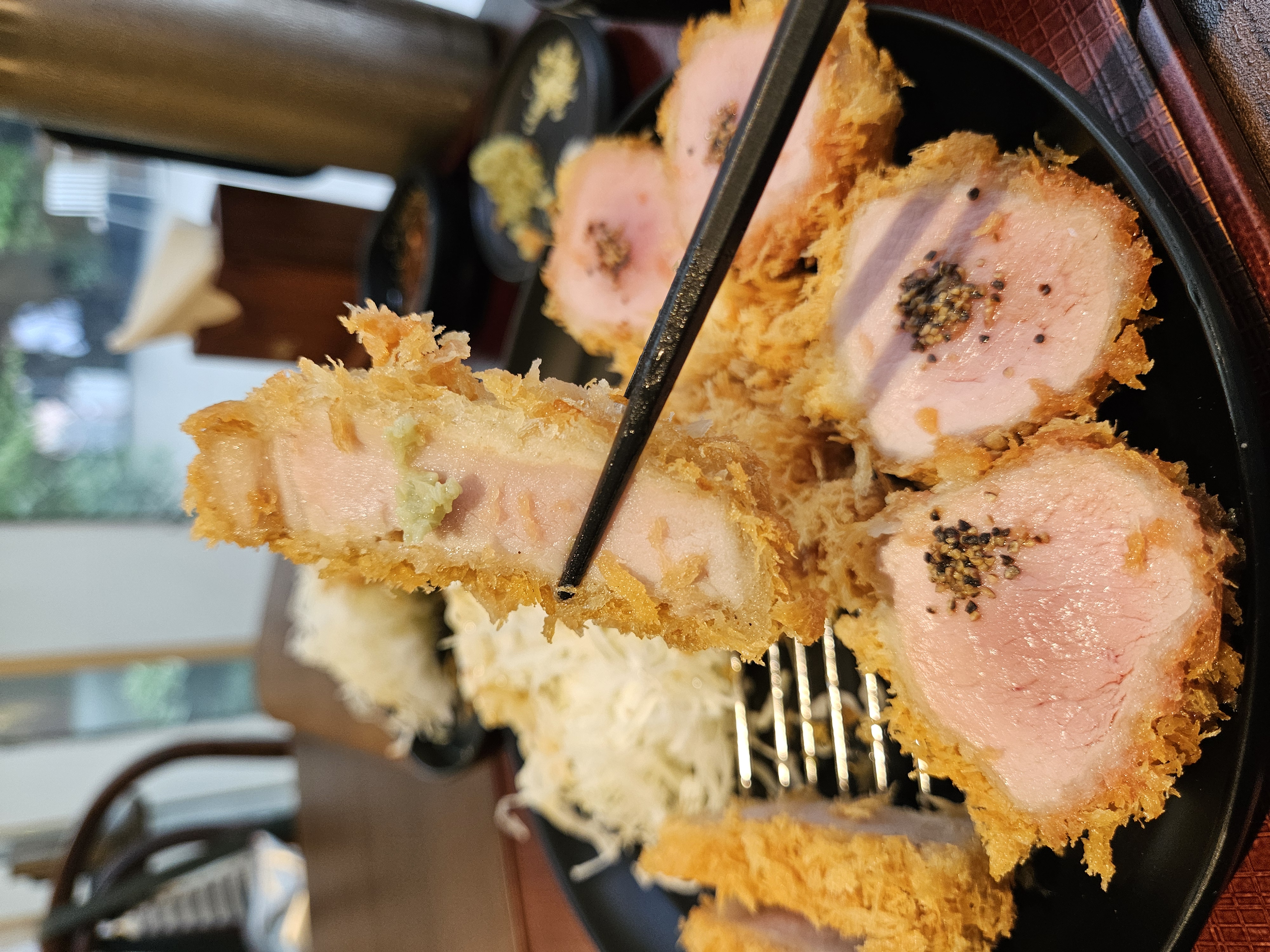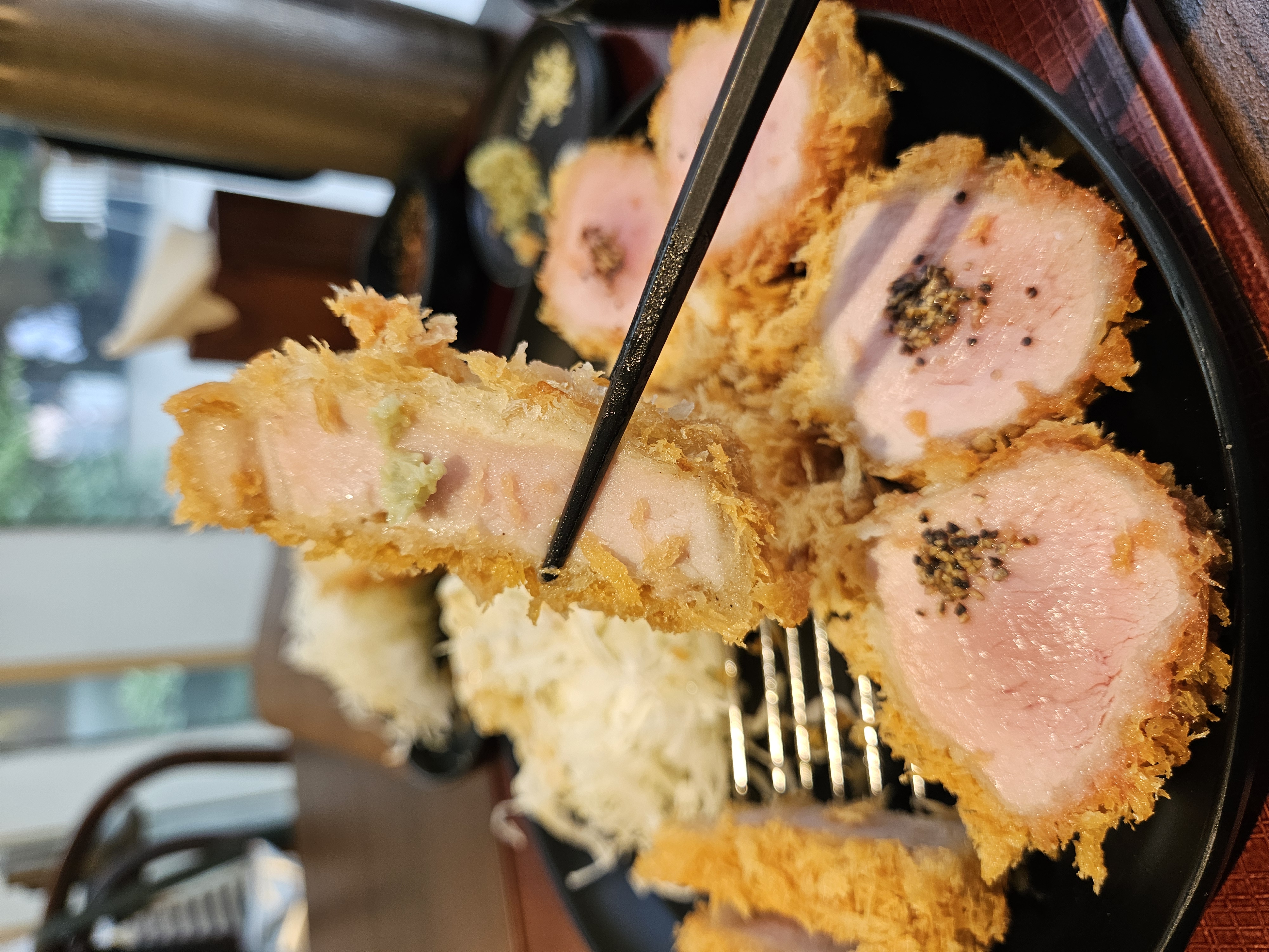 등심은 비계가 살짝 붙어있는 부위로 튀겼는데 튀김옷은 얇고 바삭한데 고기가 두툼해서 감칠맛이 좀 나는 것 같고 맛있었다.