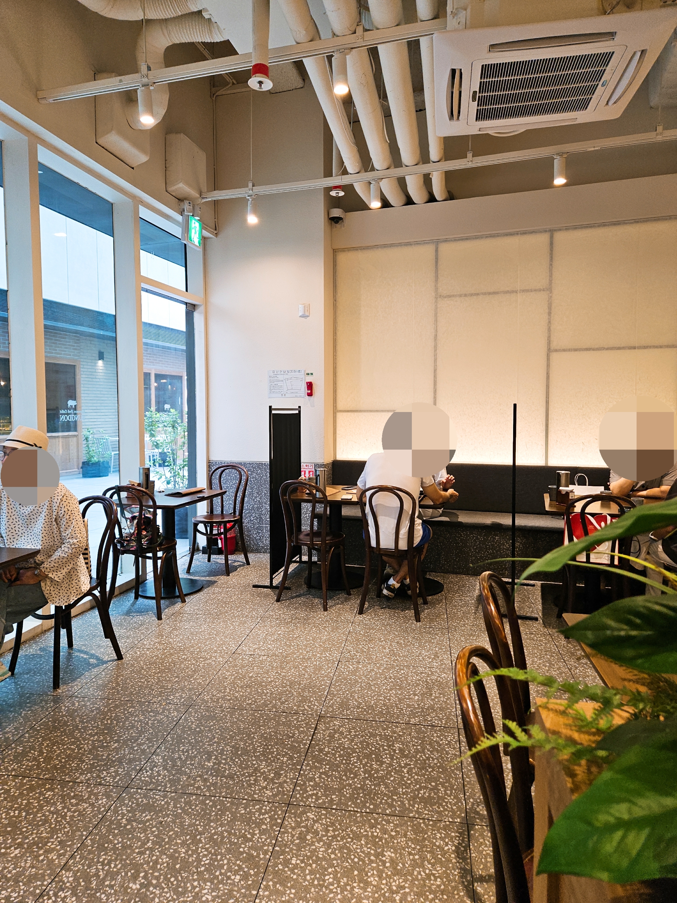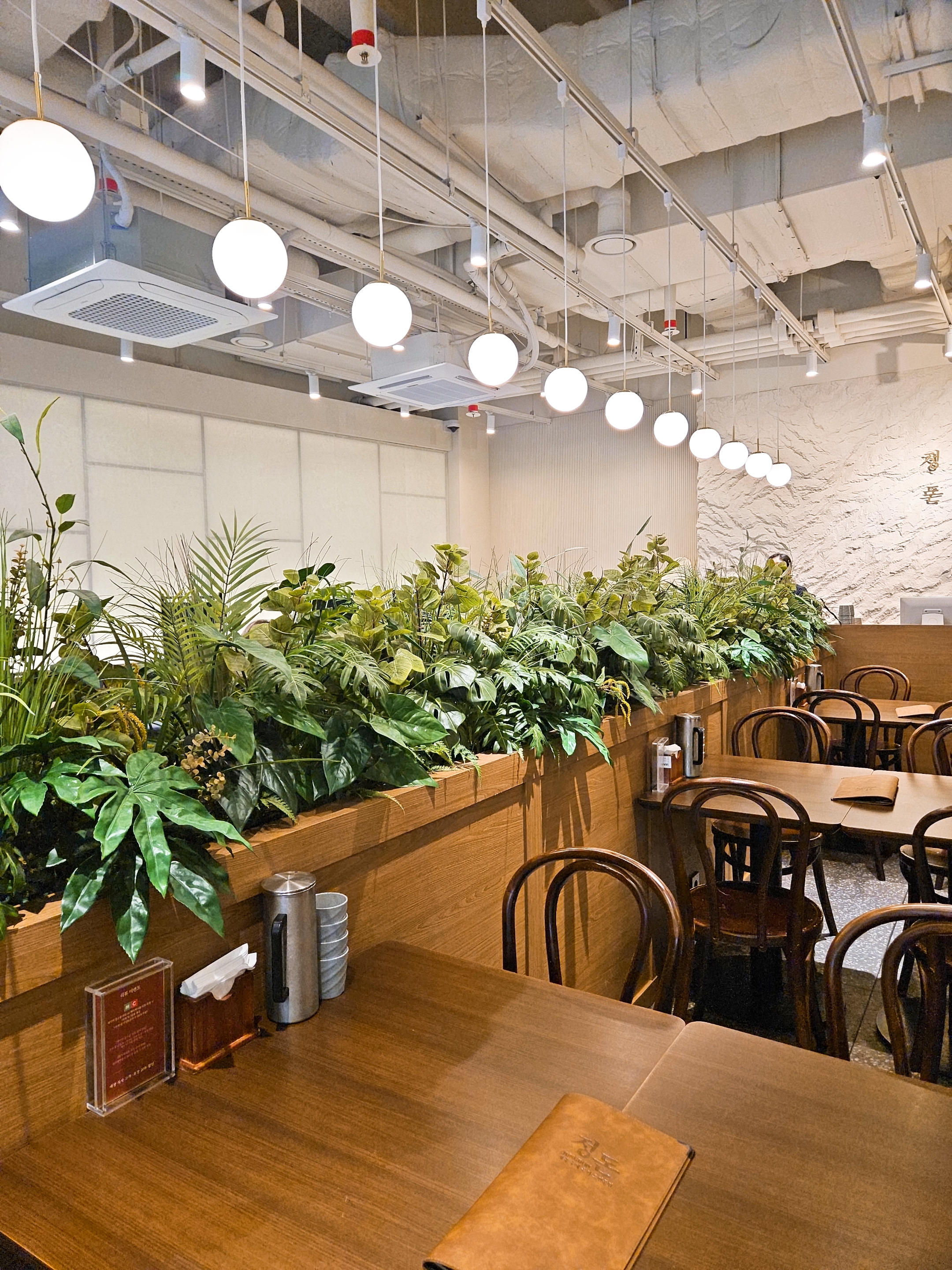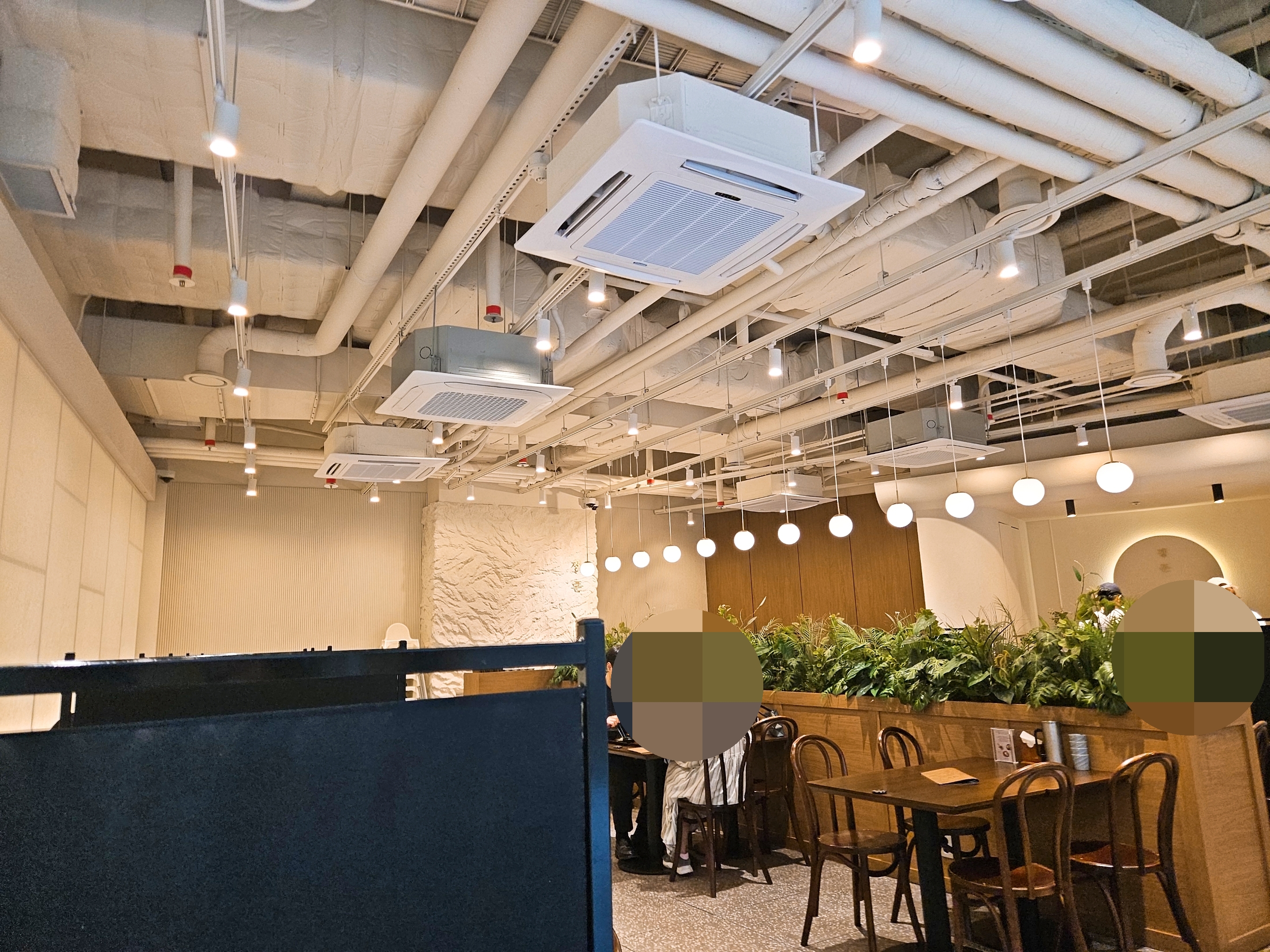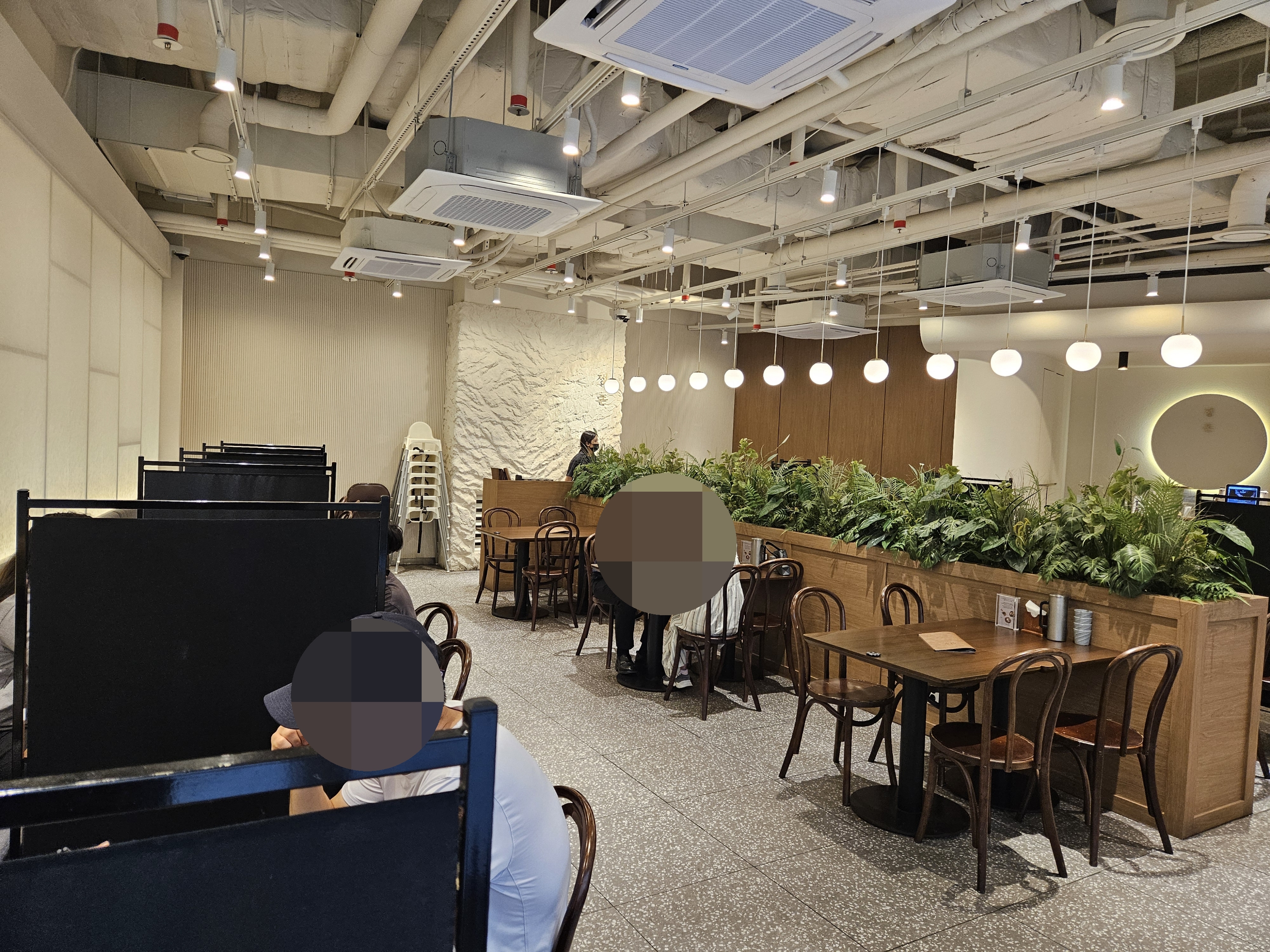 앞, 뒤로 마주 보는 테이블 말고 양옆에 놓인 테이블마다 파티션이 놓여 있어 옆테이블 식사하는 게 안 보이니 혼밥 하기도 편하고 좋았던.