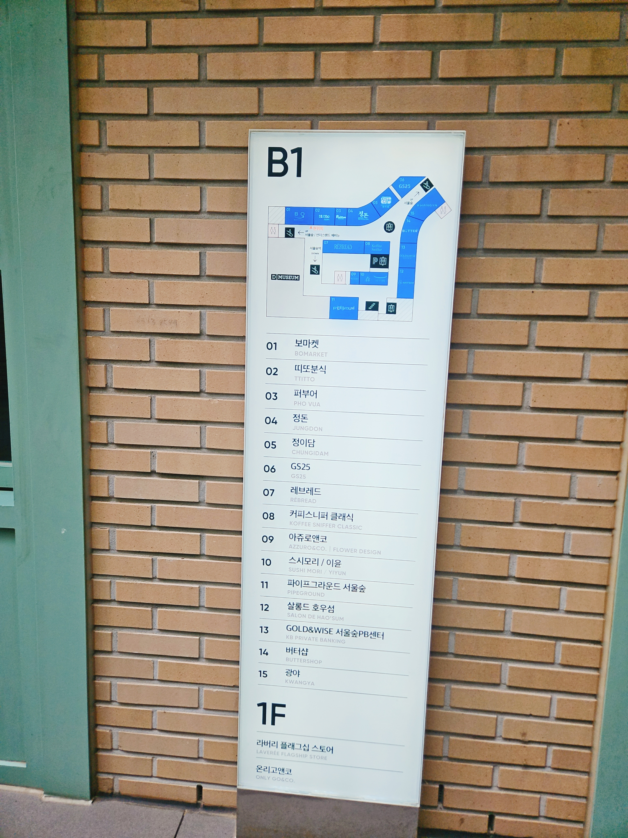 위치는 서울숲역 4번 출구 디뮤지엄 건물 지하 1층으로 무료 주차 2시간 가능하고 깔끔하고 큰 큐모의 건물이라 쾌적하다.