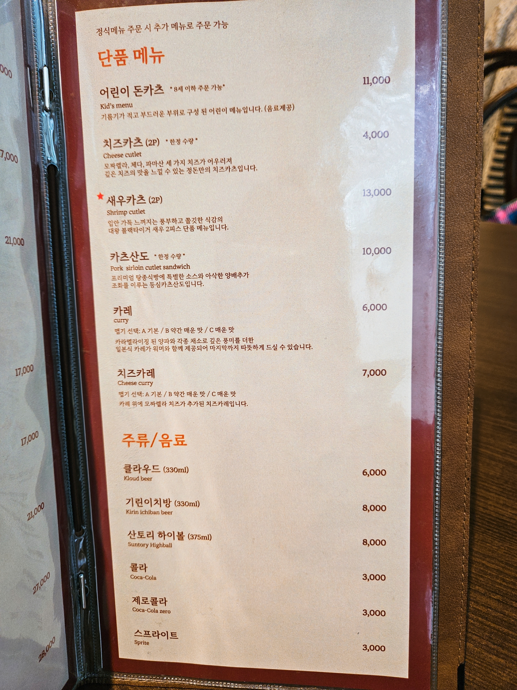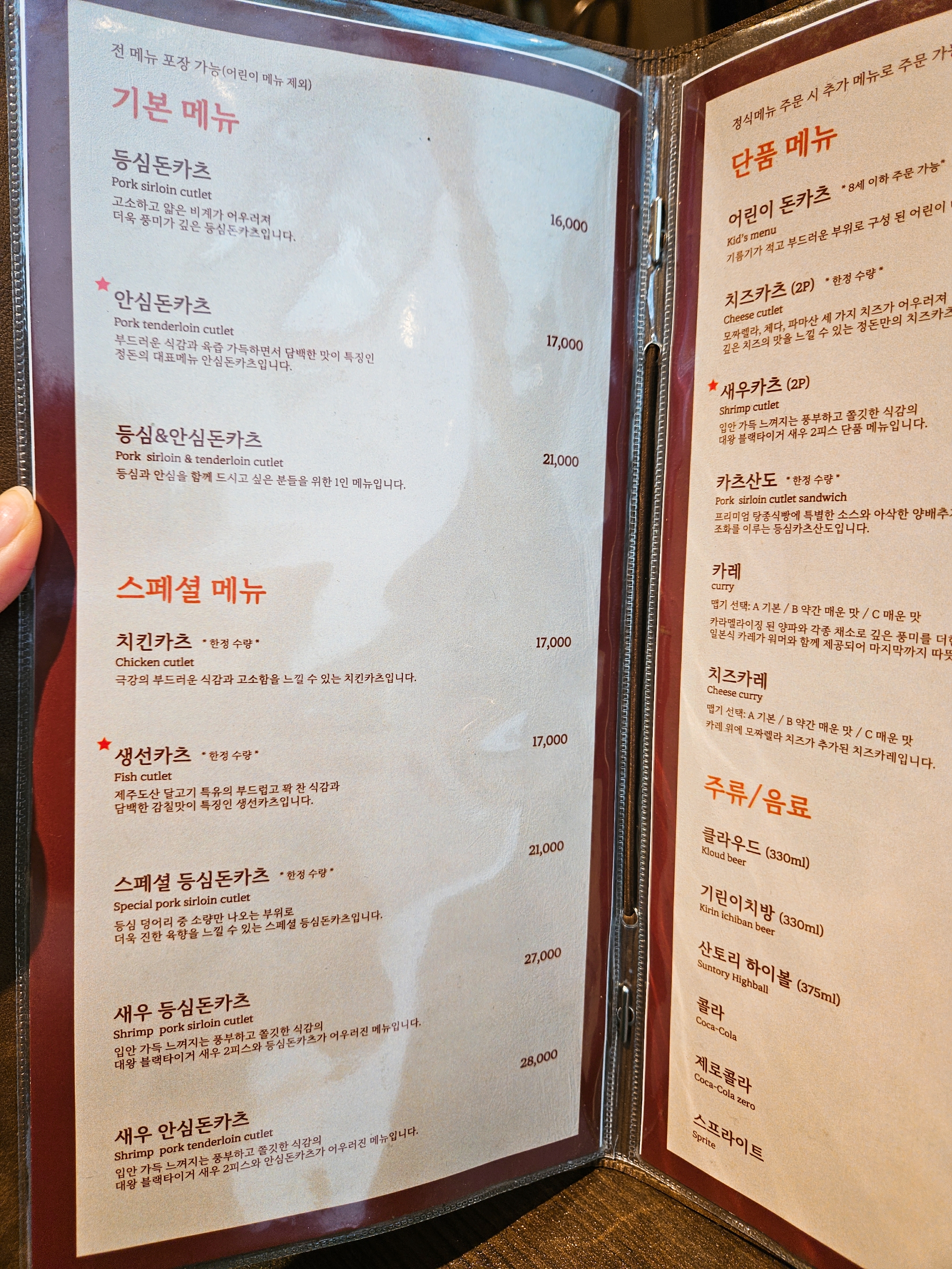 돈가스 말고도 치킨, 생선, 스페셜 등심, 새우 등심 메뉴도 있고 어린이 돈가스와 카츠산도, 카레, 치즈 카레도 판매하고 있어서 재방문하면 다른 메뉴도 추가해서 셰어 해서 먹고 싶었음 ㅎㅎ