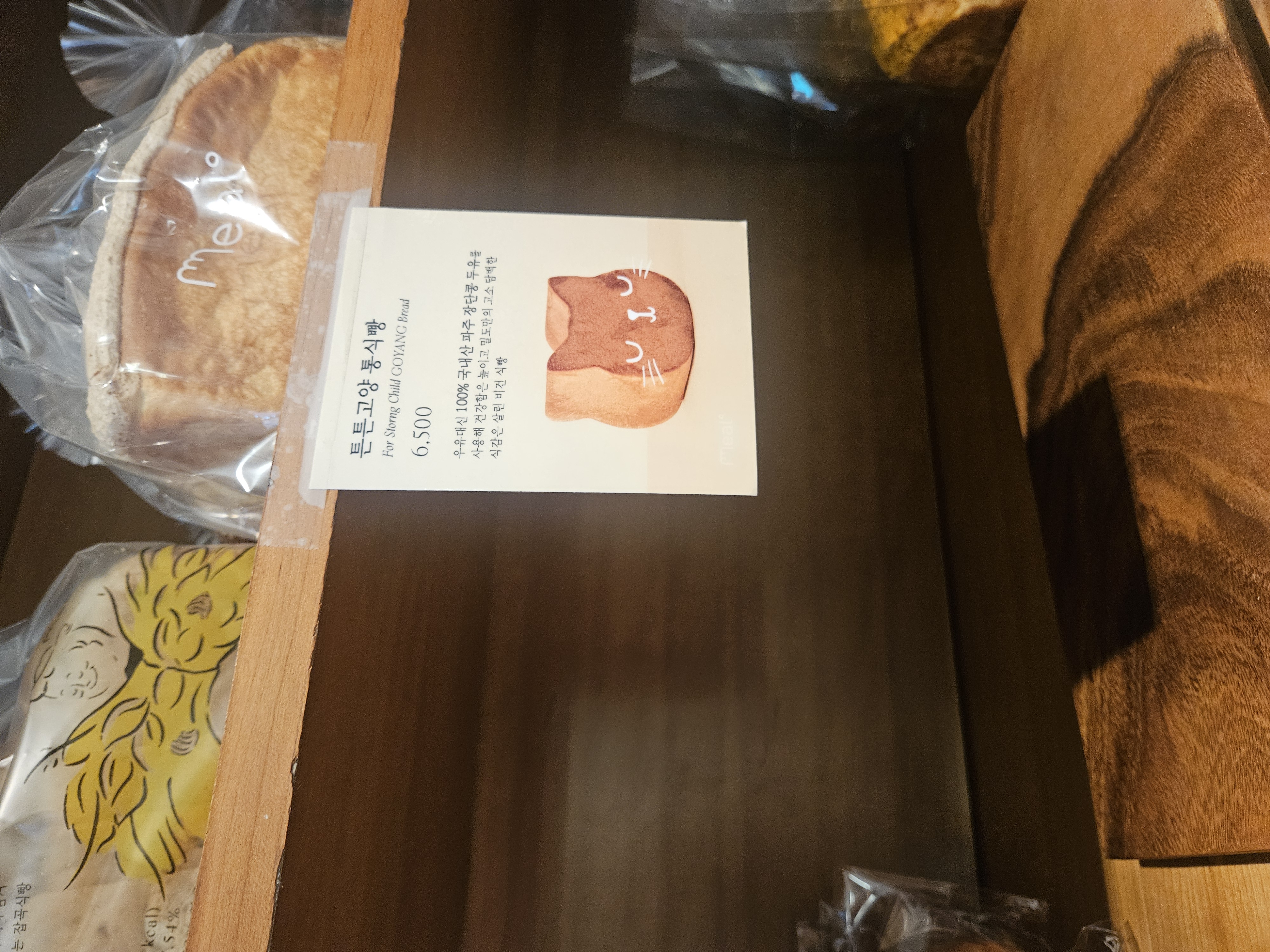 밀도 매장에서 직접 굽는 식빵은 무지방 우유, 청정 유기농 밀가루로 만든 쫄깃하고 담백한 담백 식빵과 생크림으로 반죽하여 고소하고 부드러운 리치식빵 2가지가 있었는데 언젠가 방문하니 못 보던 고양식빵이 생겼다.