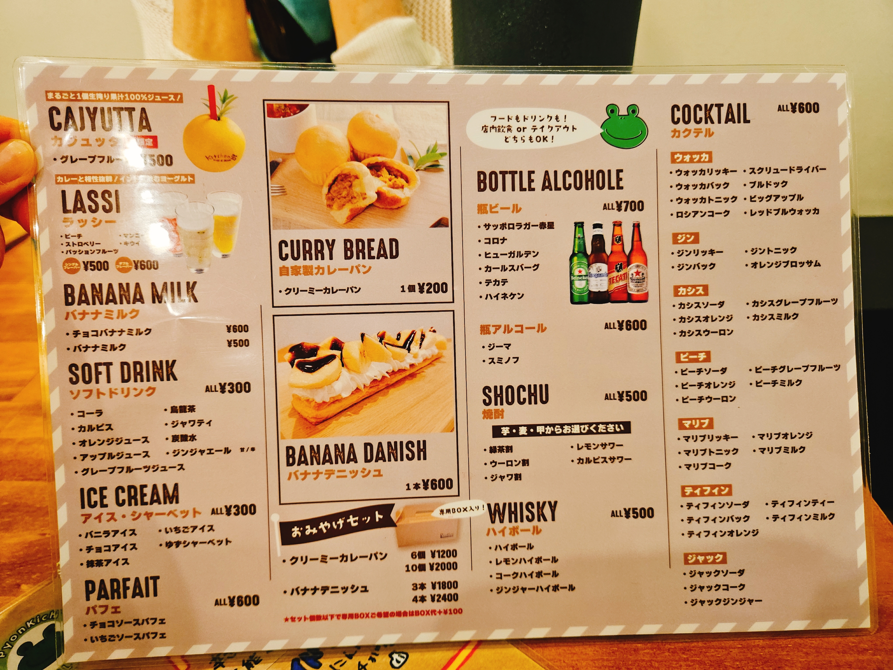 대표메뉴는 카레우동, 카제 카레우동과 음료, 디저트 등을 판매하고 있다.