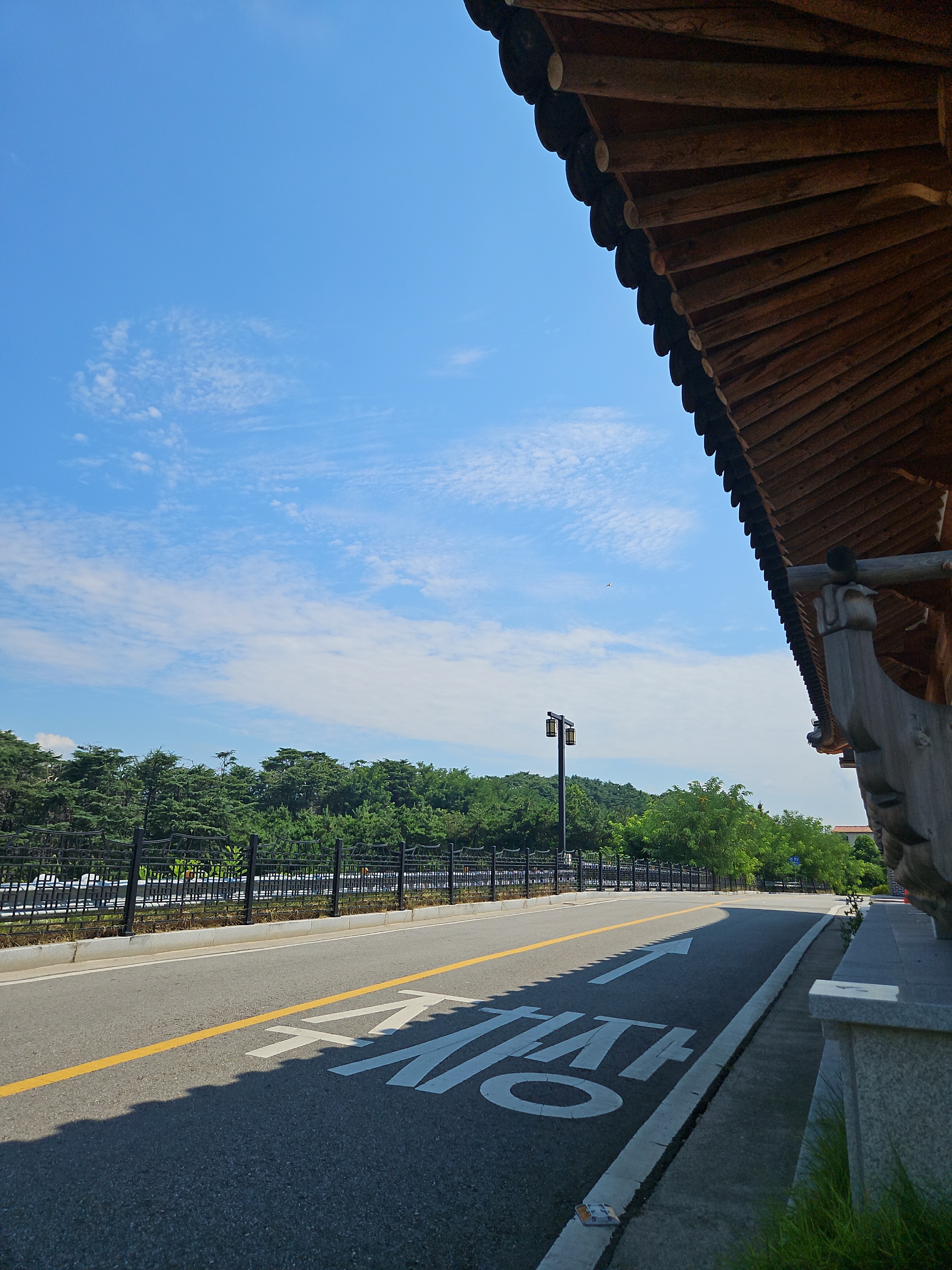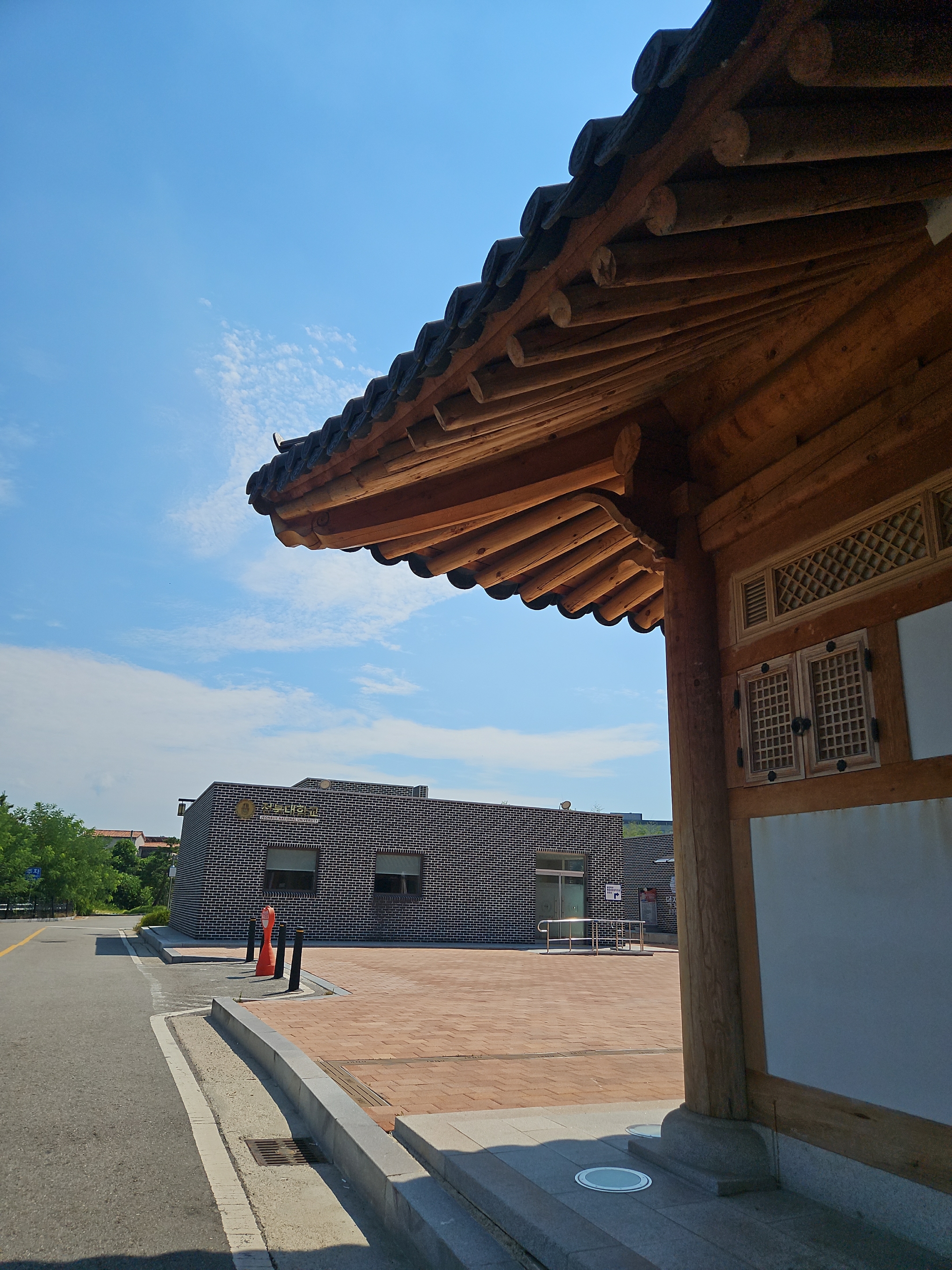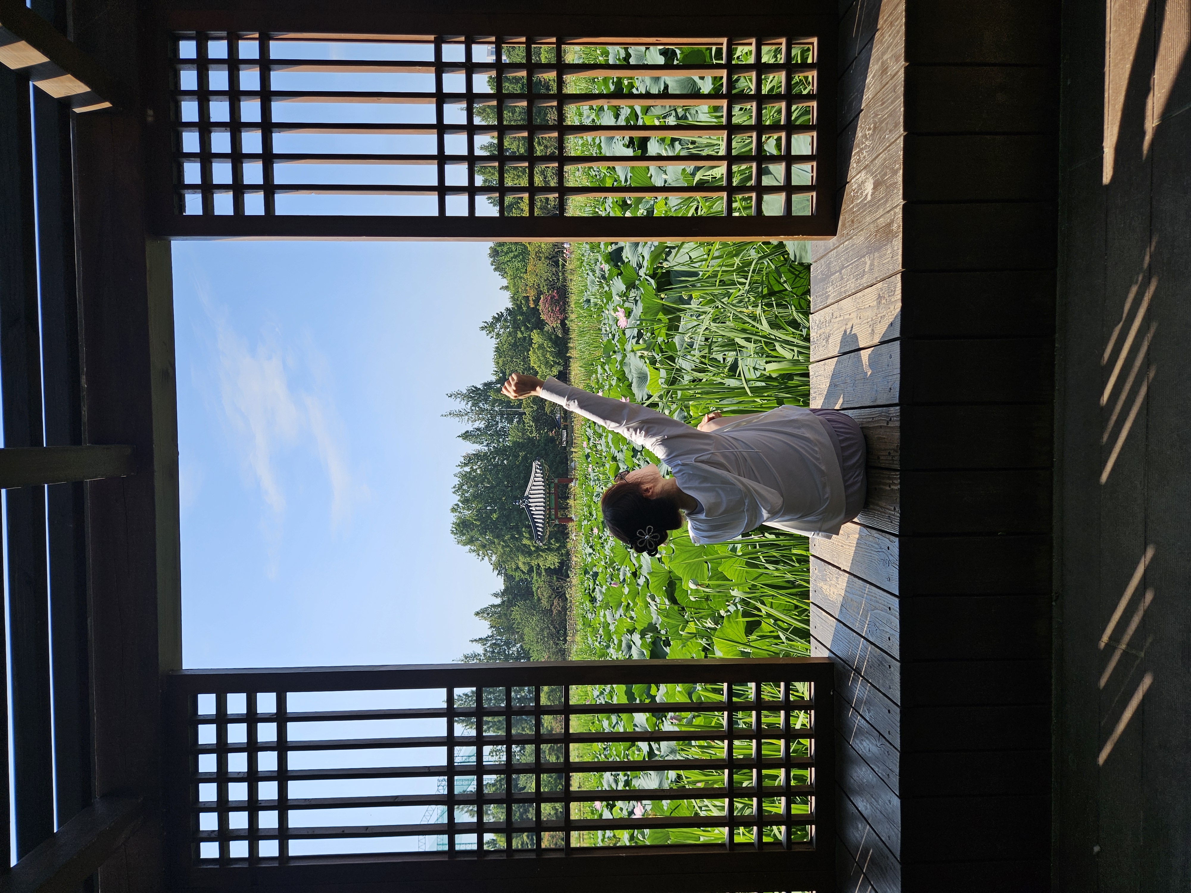 토요일 이른 오전에 방문한 편인데도 주차장에 차량이 생각보다 많았는데 나무 아래 그늘진 주차 공간이 있어 주차 후 연꽃핀 호수 쪽 둘러보며 한옥 느낌 물씬 풍기는 포토존에서 사진 촬영도 했다.
