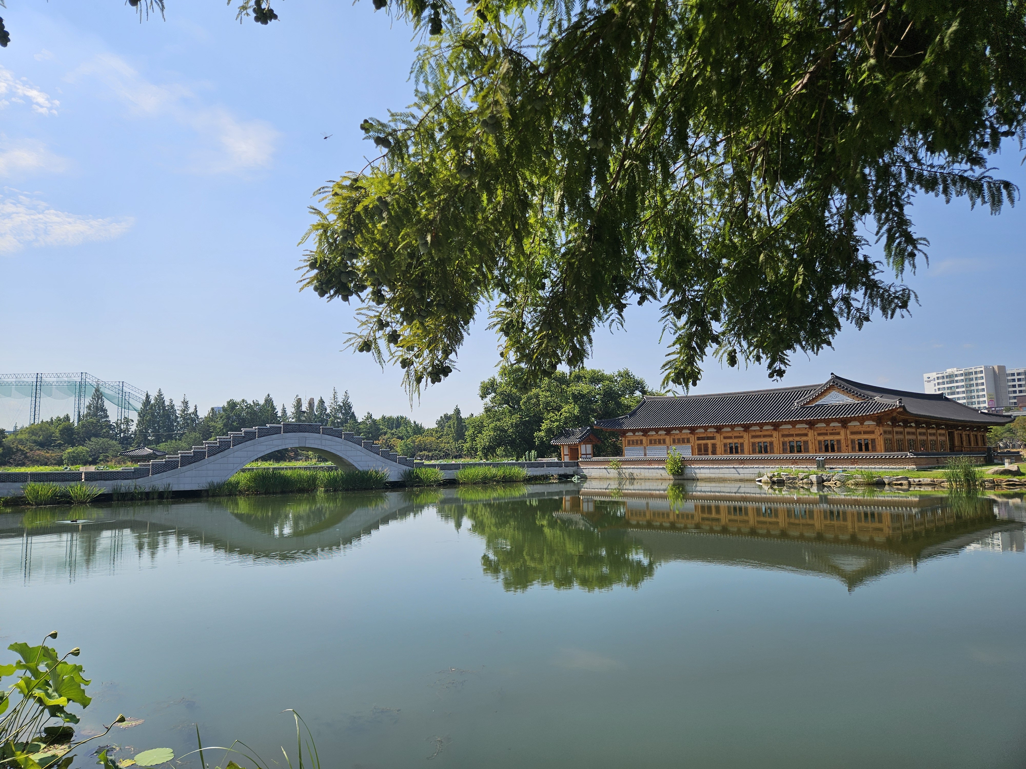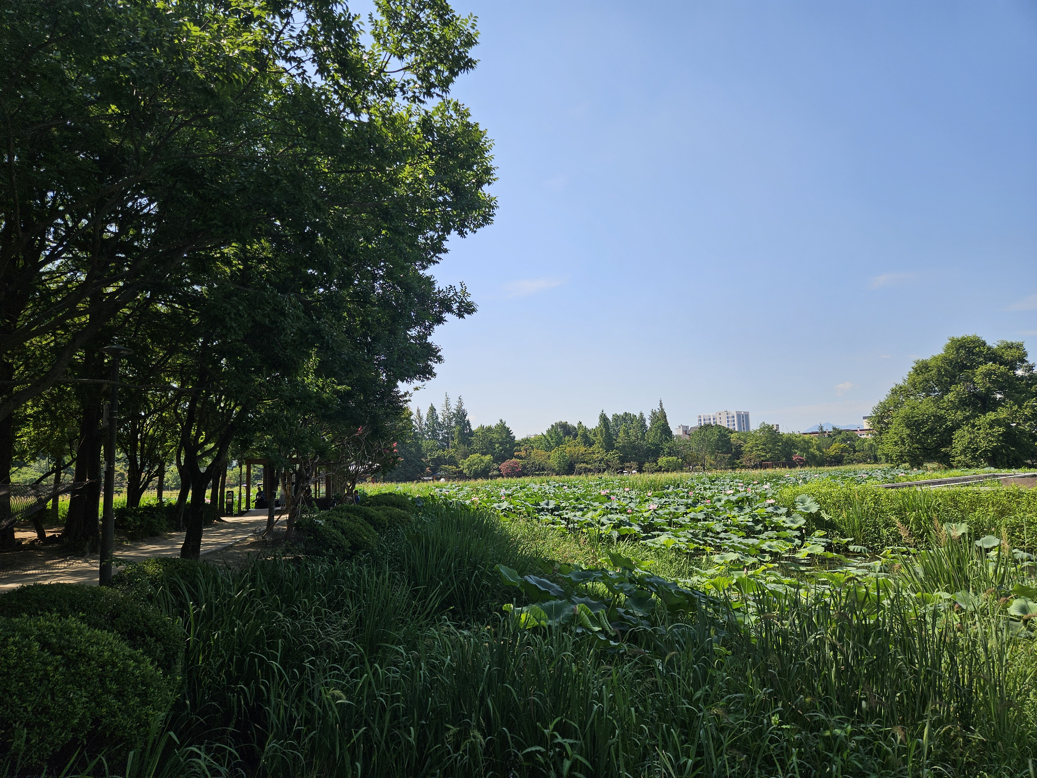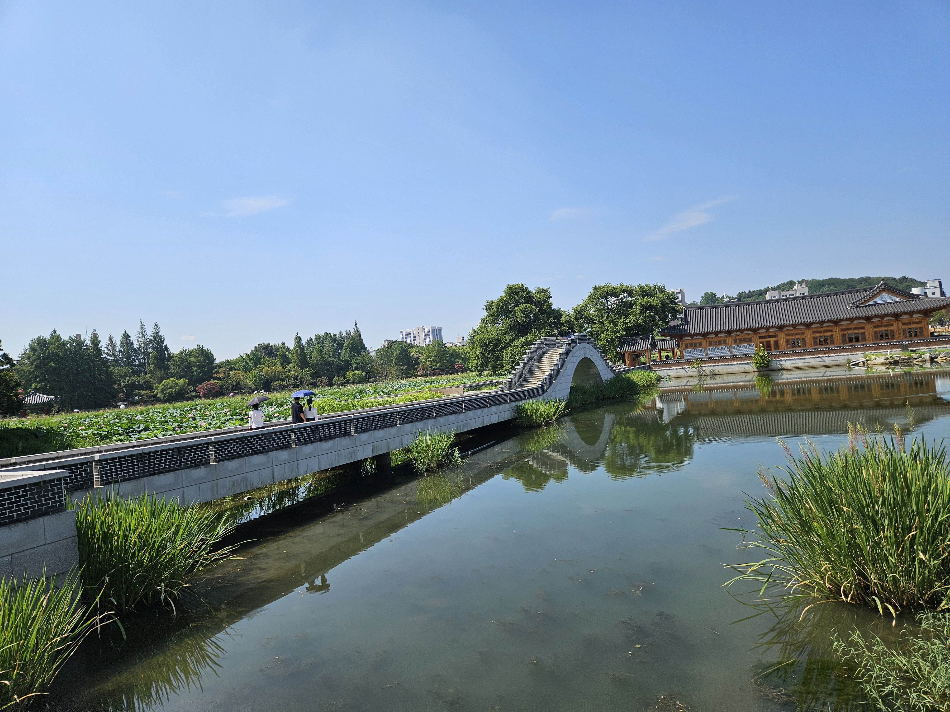 넓은 부지와 한옥 스타일 건축물, 연꽃 등으로 잘 조성해 놔서 산책, 운동, 데이트, 나들이하기 좋았는데 연꽃 있는 호수 쪽은 그늘이 별로 없어서 요즘 같은 무더위 낮 시간에 방문하려면 자외선 차단은 필수다.