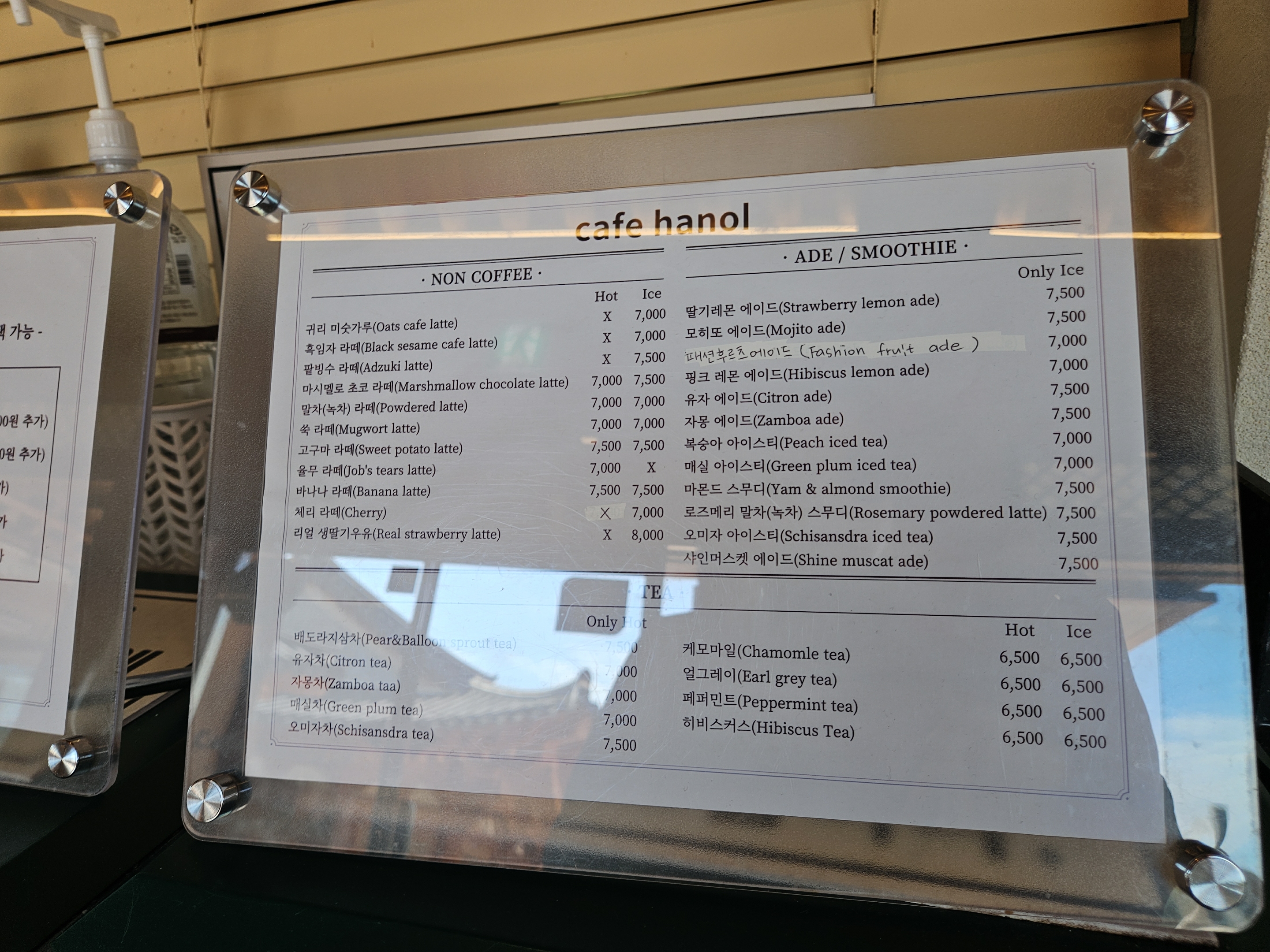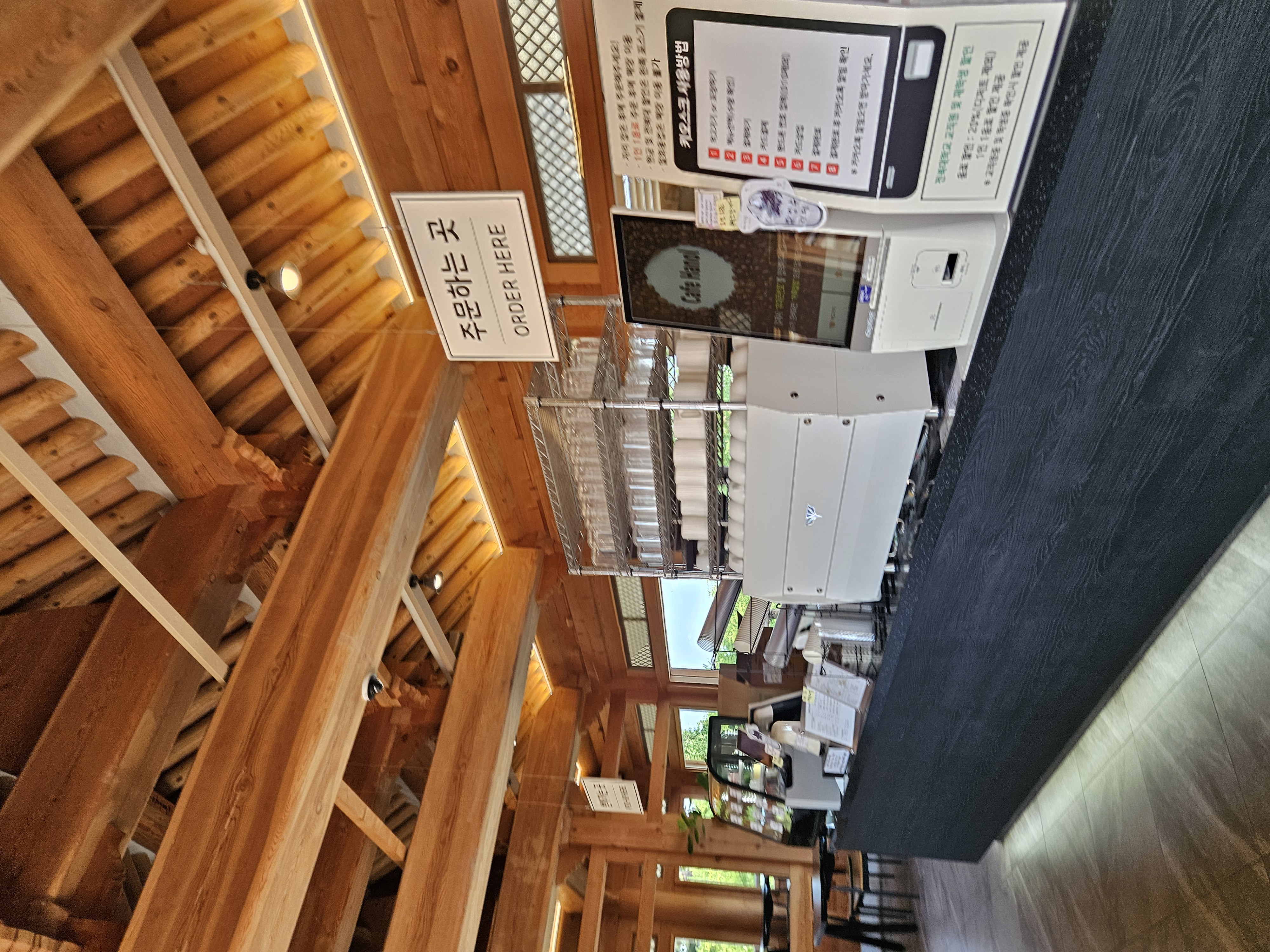 한옥이 여러 채 있는데 왼쪽은 고깃집, 오른쪽에 있는 두 채가 카페 한올이었고 주문하는 곳이 아닌 테이블만 있는 건물로 자리해서 카운터 있는 건물로 가서 주문했다.
