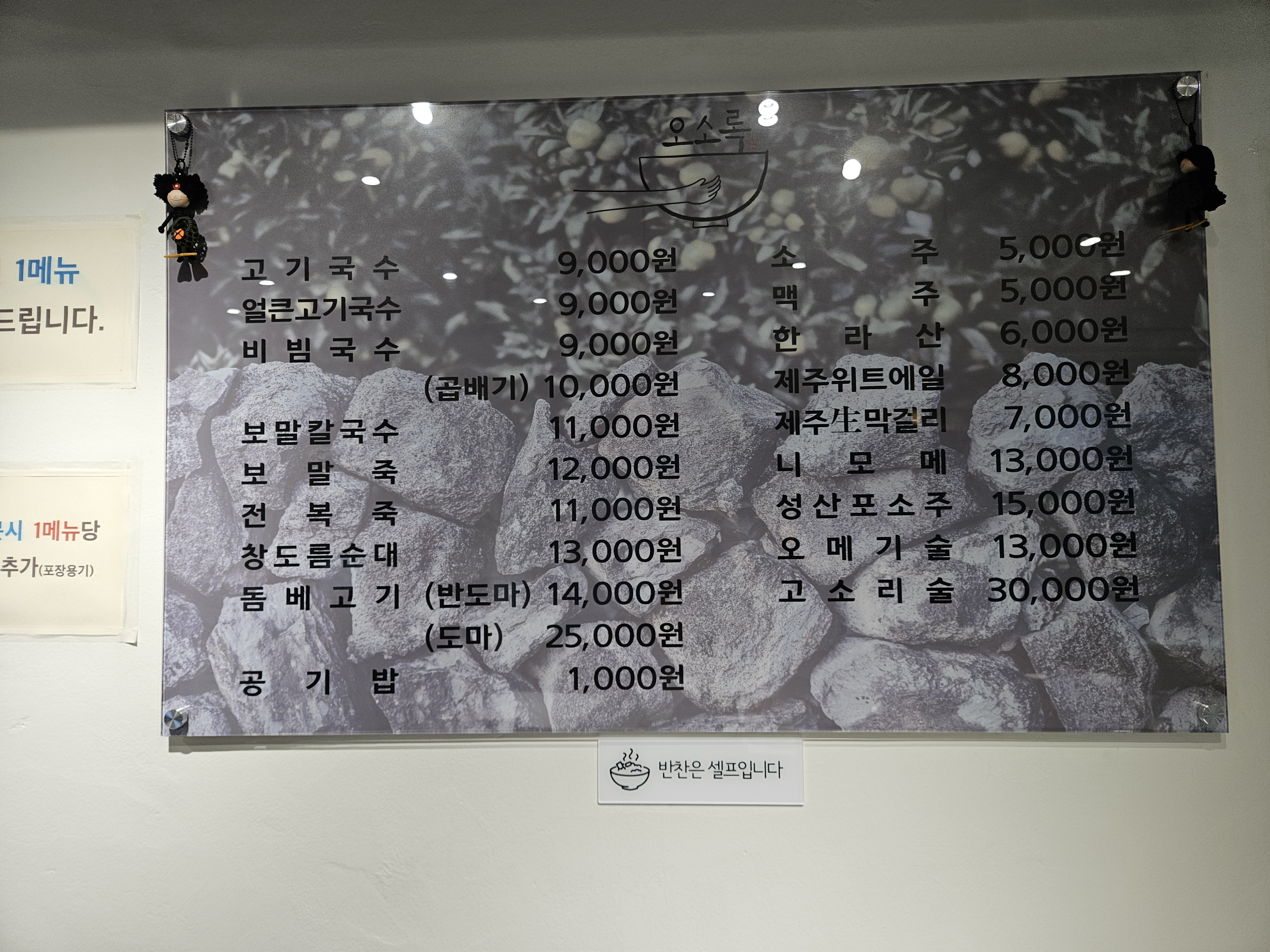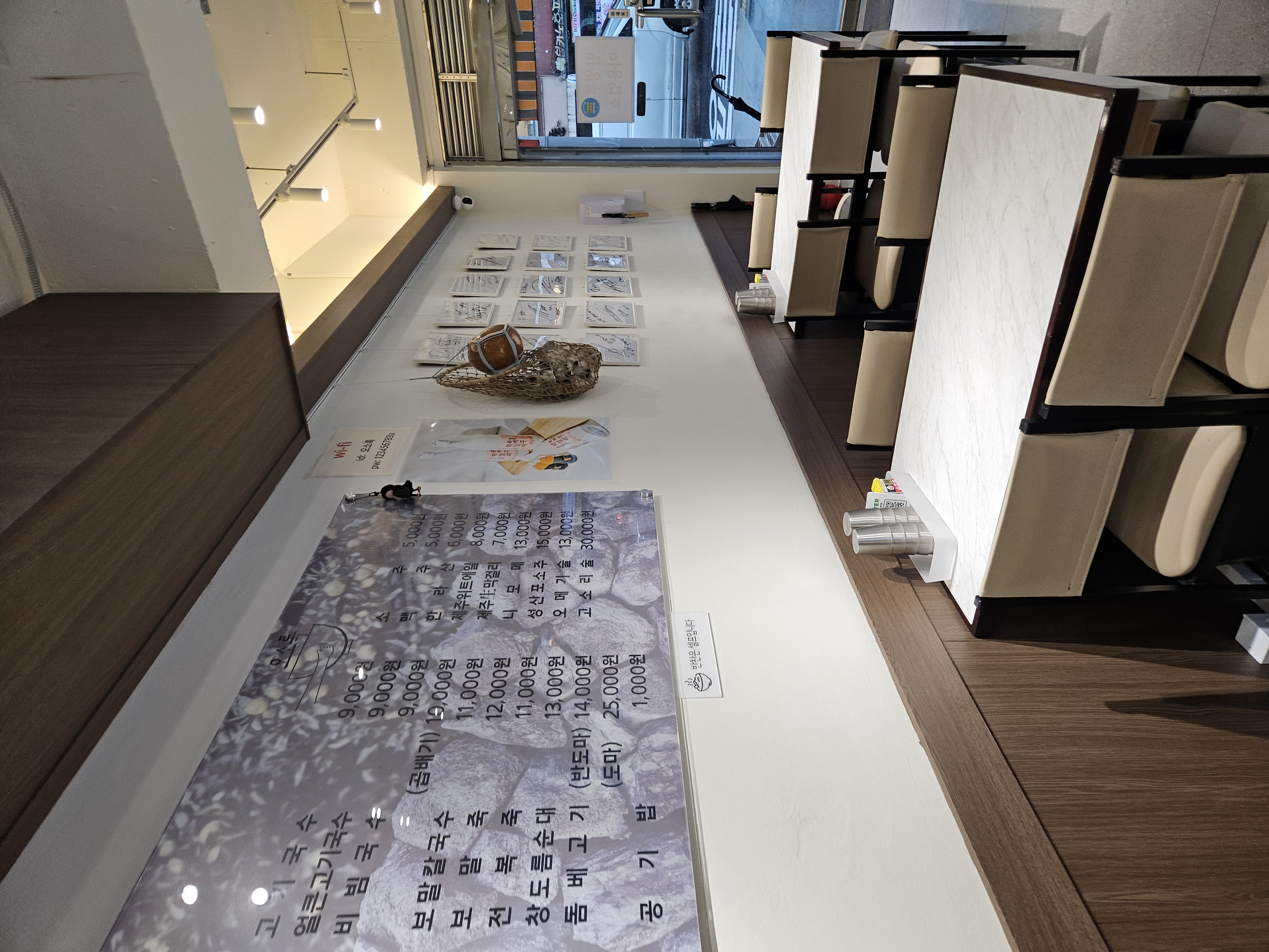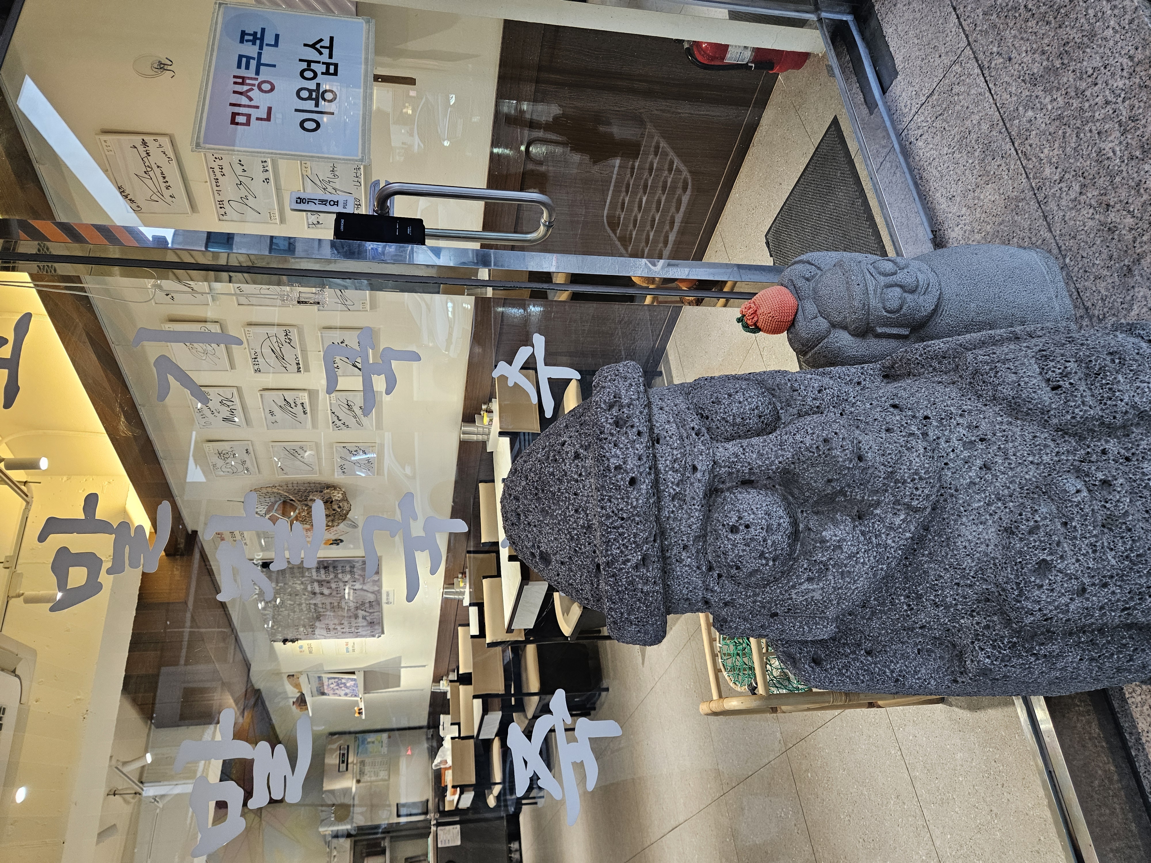 24석으로 매장은 아담한 편이고 입구엔 제주도 상징 돌하르방을 놔뒀다. 우측 벽면엔 연예인 사인도 다수 발견 가능한데 성시경 사인이 상단에 ㅎㅎ