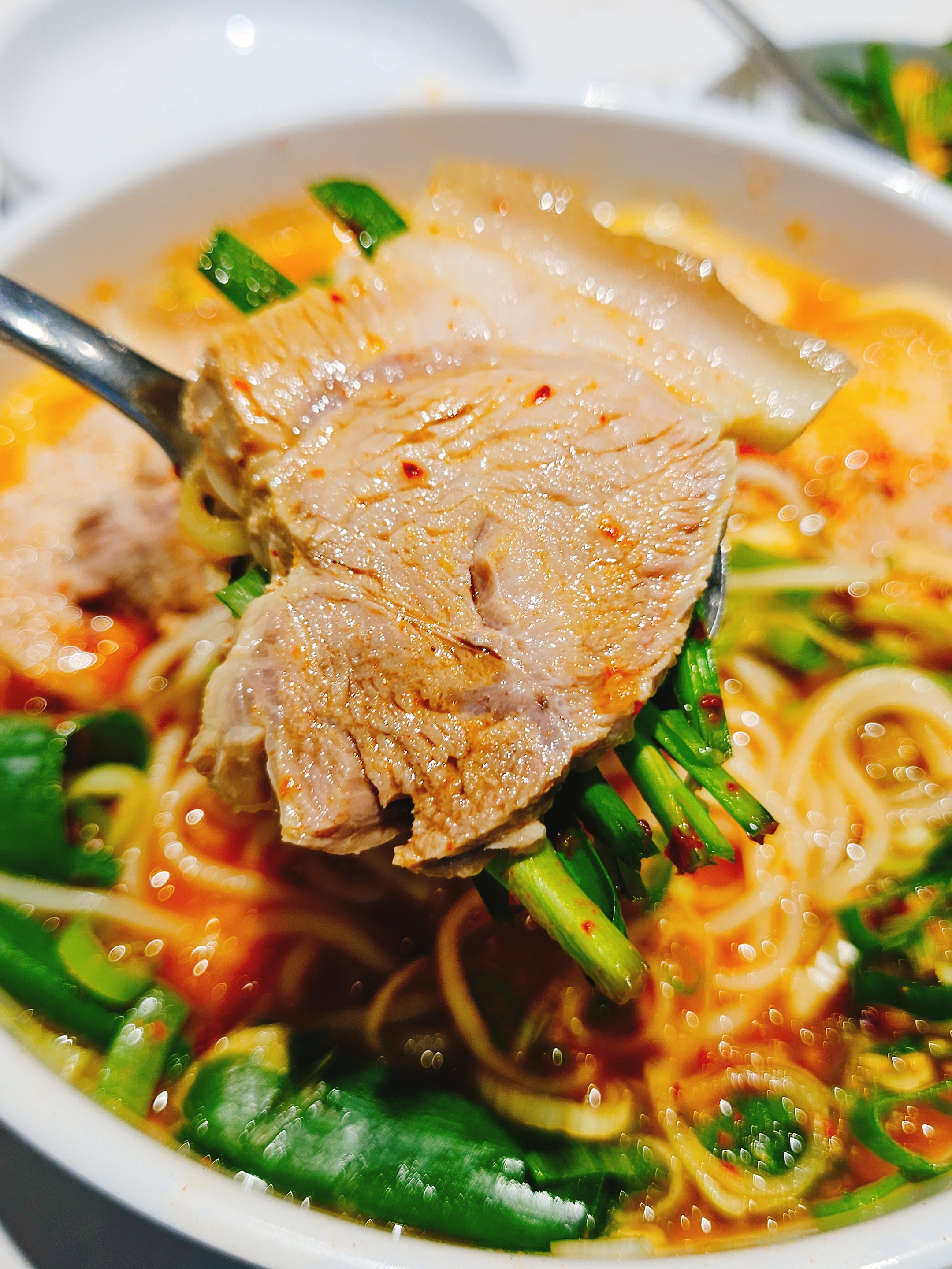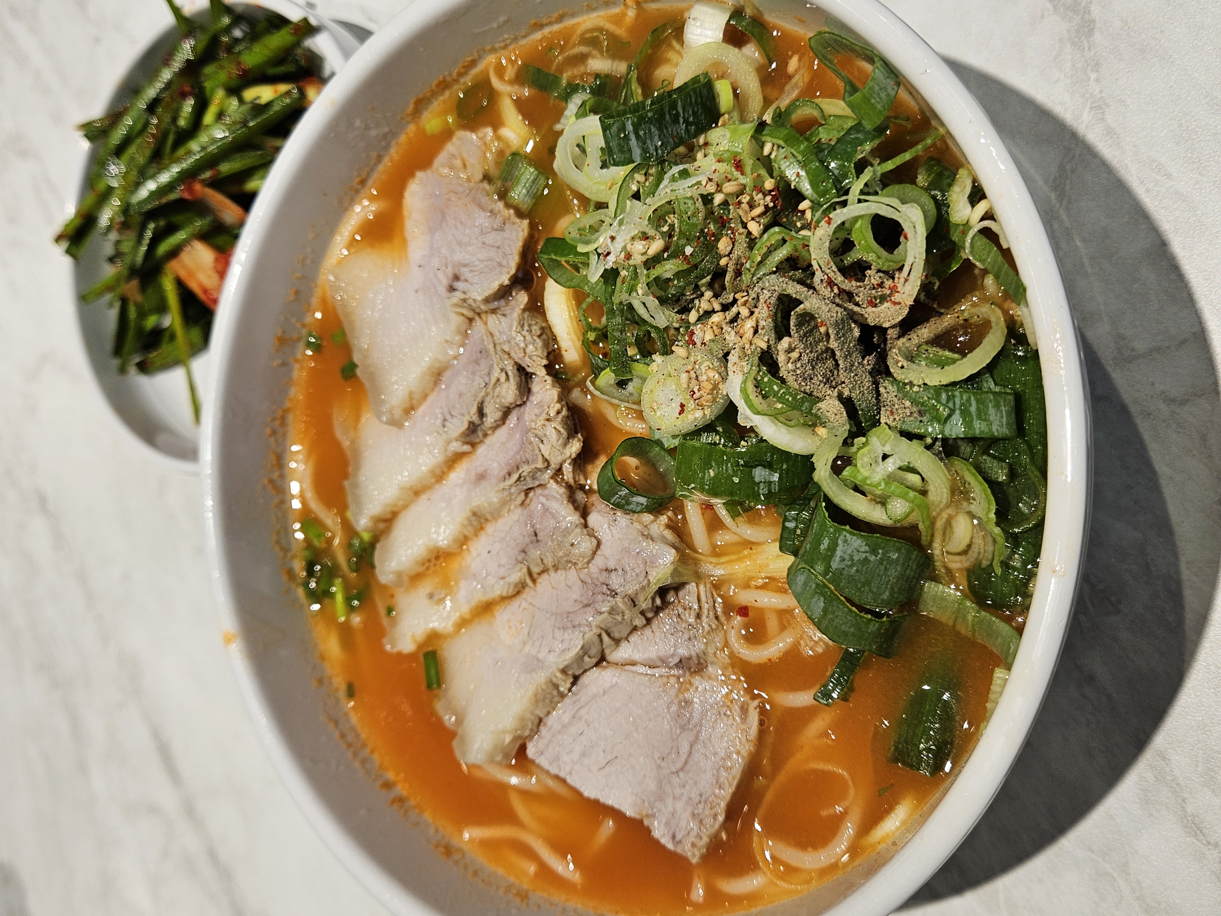 고기 고명은 접시에 따라 담아 주는데 껍데기 비계 살코기가 두루 섞인고기로 4점이나 줘서 원래 고기고명과 합치니 양이 생각보다 많았다.