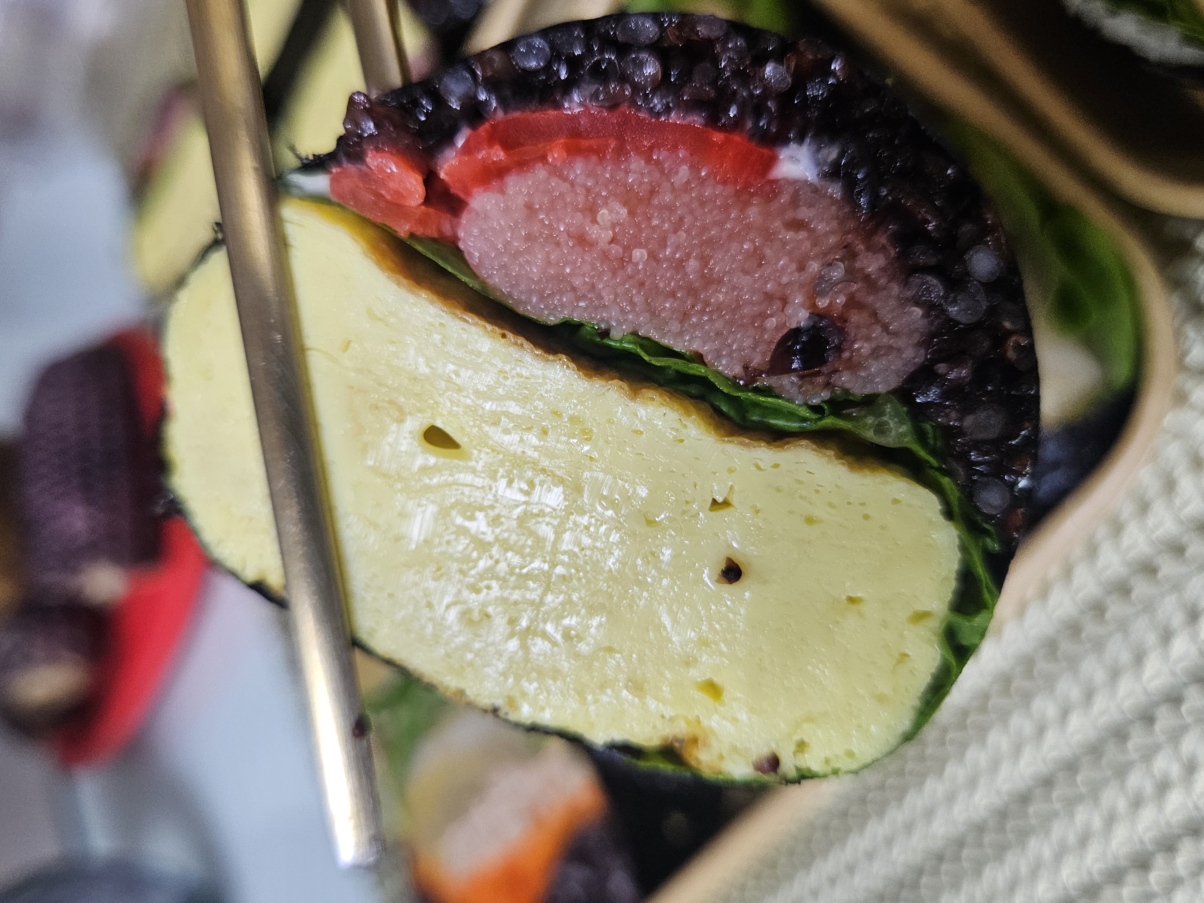 그냥 쌀밥은 안 먹는데 잡곡 현미 찹쌀 흑미 등 혼식은 좋아해서 식물원김밥 제외하고 모든 김밥은 흑미로 골랐다.