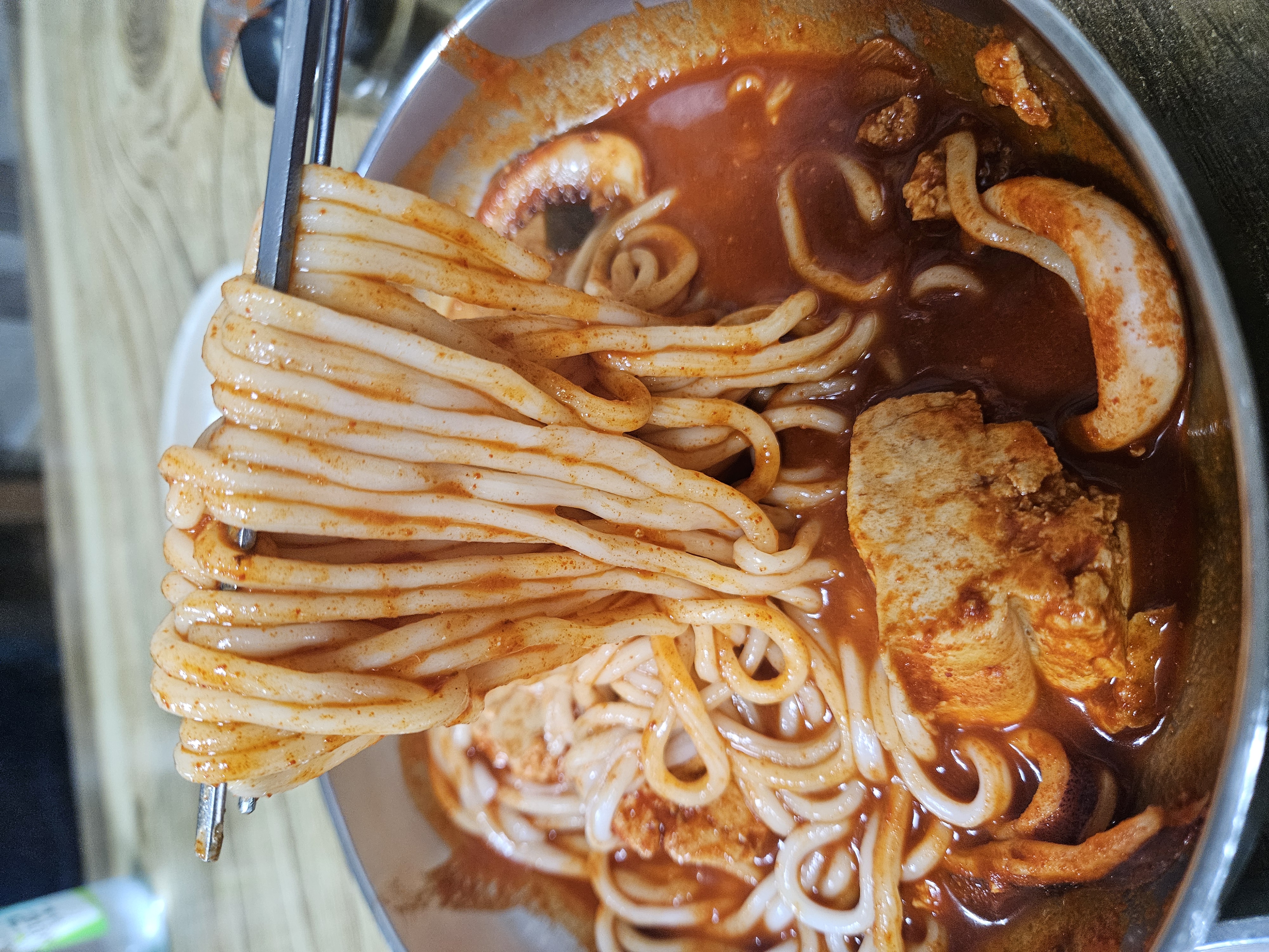 양념 육수는 좀 묽은 스타일인데 여기에 삶은 우동 사리가 나오니 섞어먹기 좋은 농도 같다.