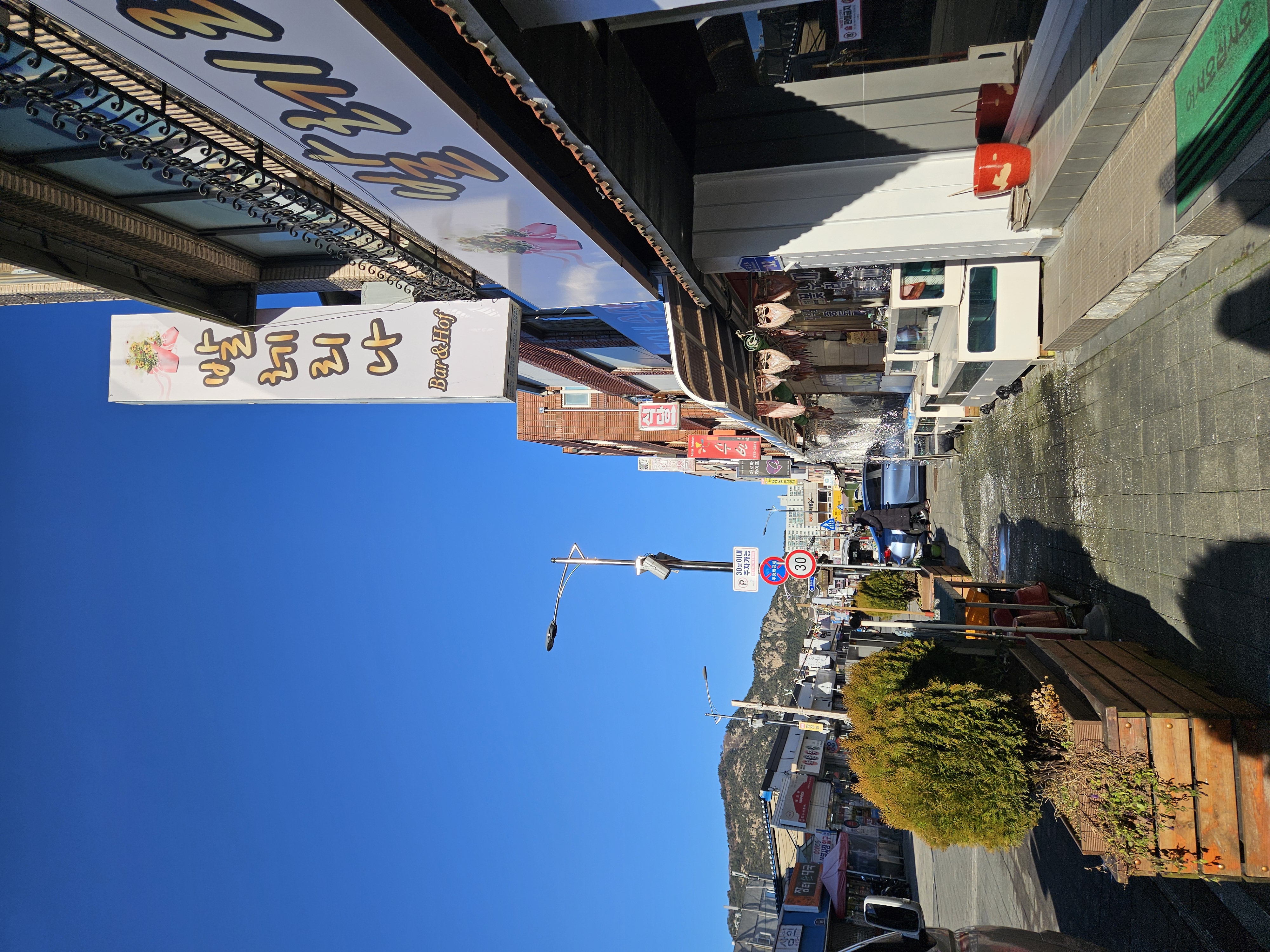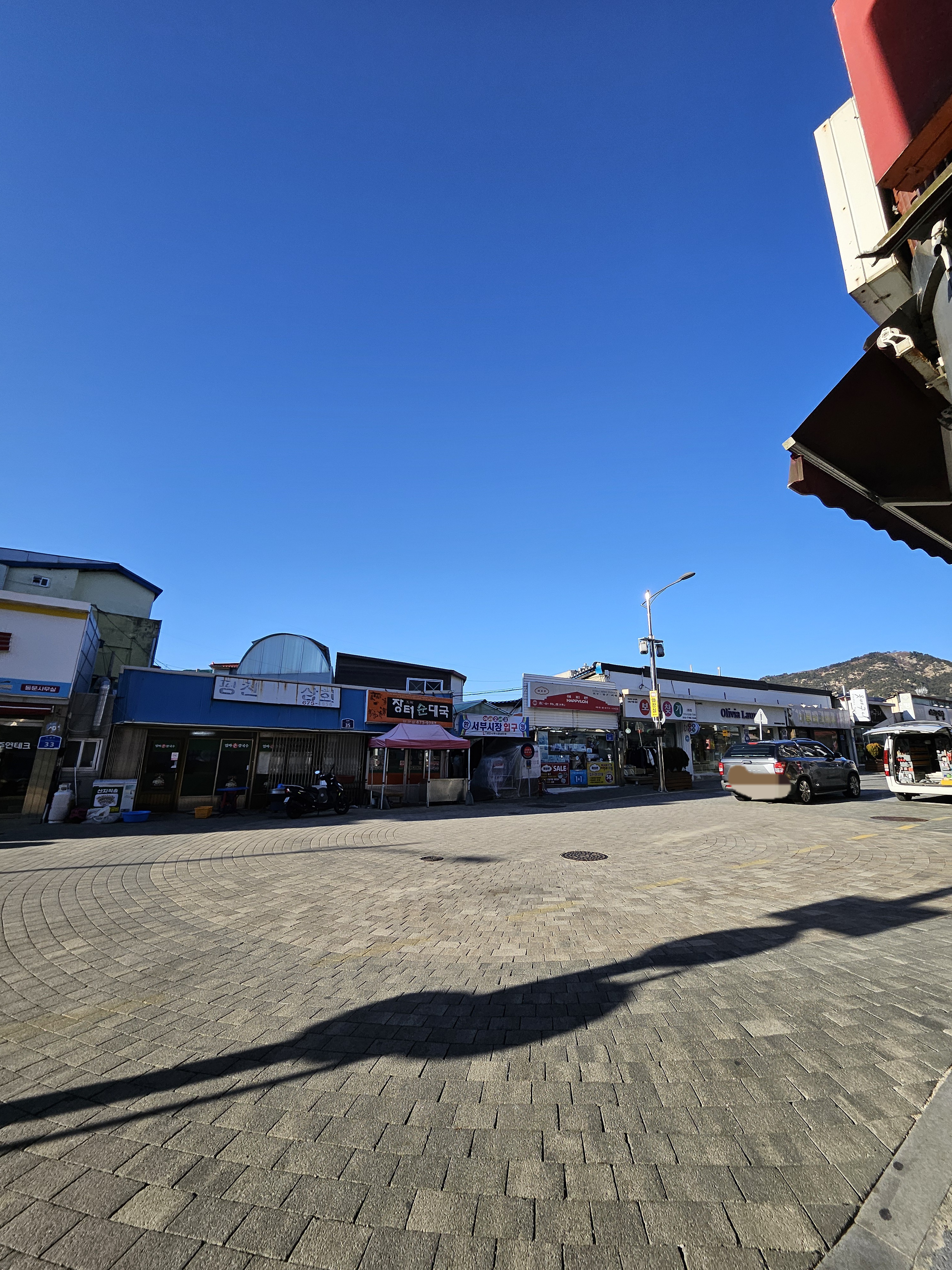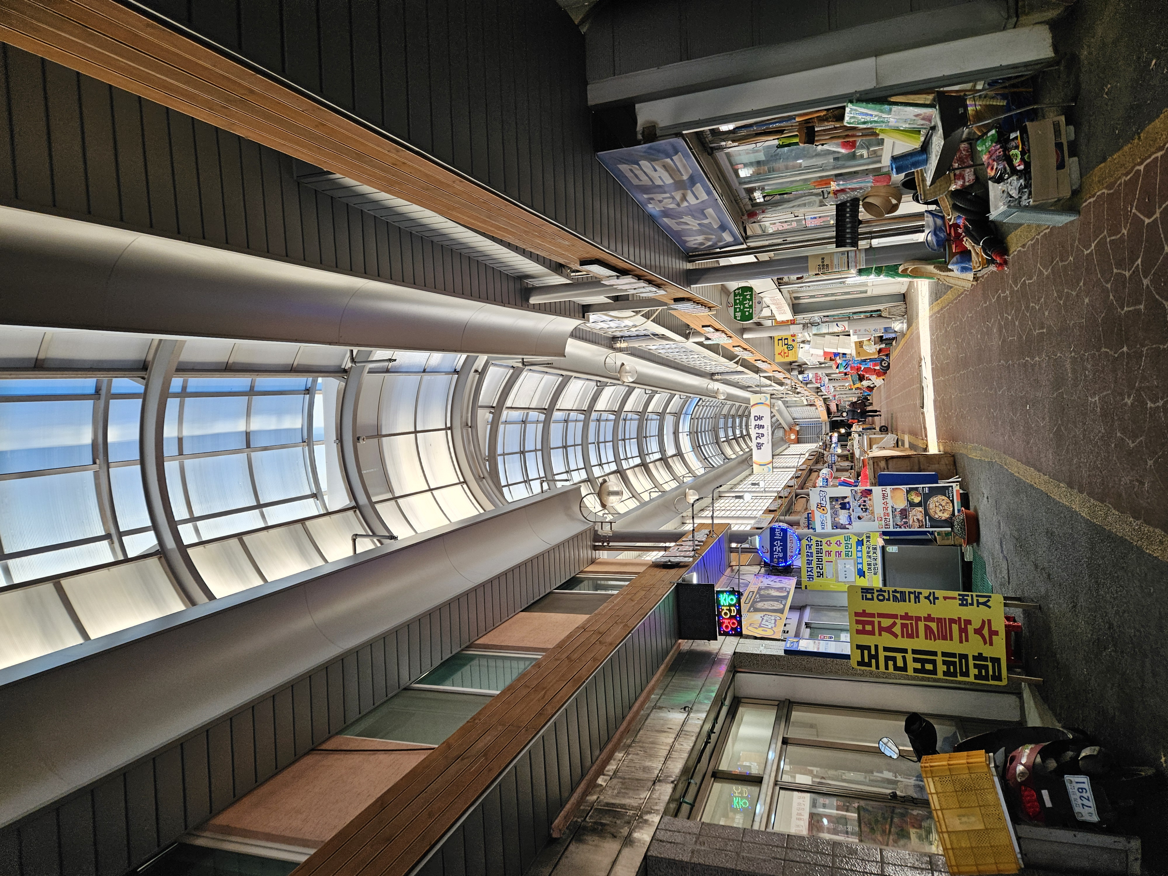 주차장에서 시장 쪽으로 걸어가는데, 아케이드처럼 보이는 건물에 뚜렷한 표지판이 없어 잠시 헤맸다.