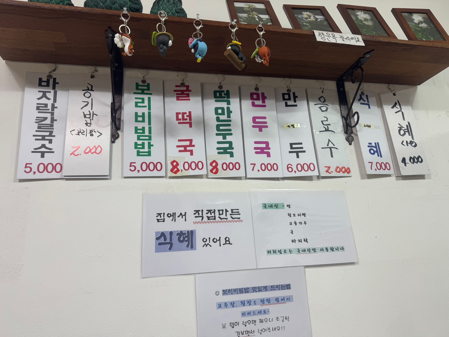 바지락칼국수 외에도 찰보리비빔밥, 굴떡국, 만두 등 메뉴가 다양해서 칼국수만 먹기 아쉬웠던 나에게 딱이었다.