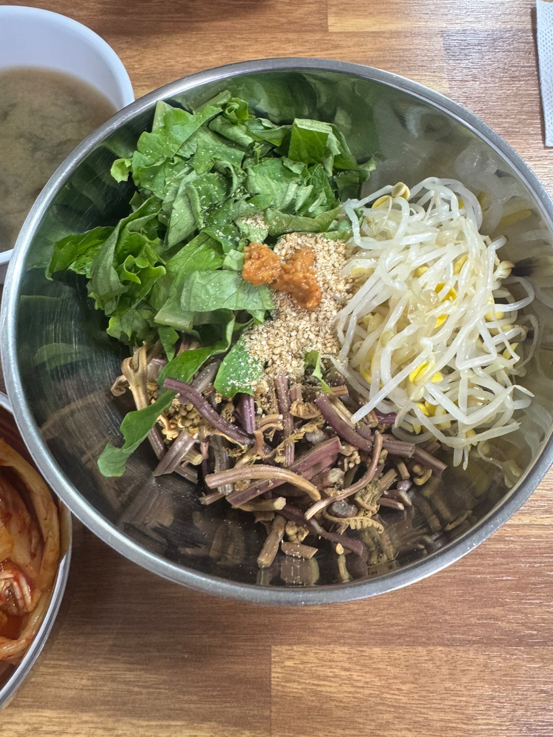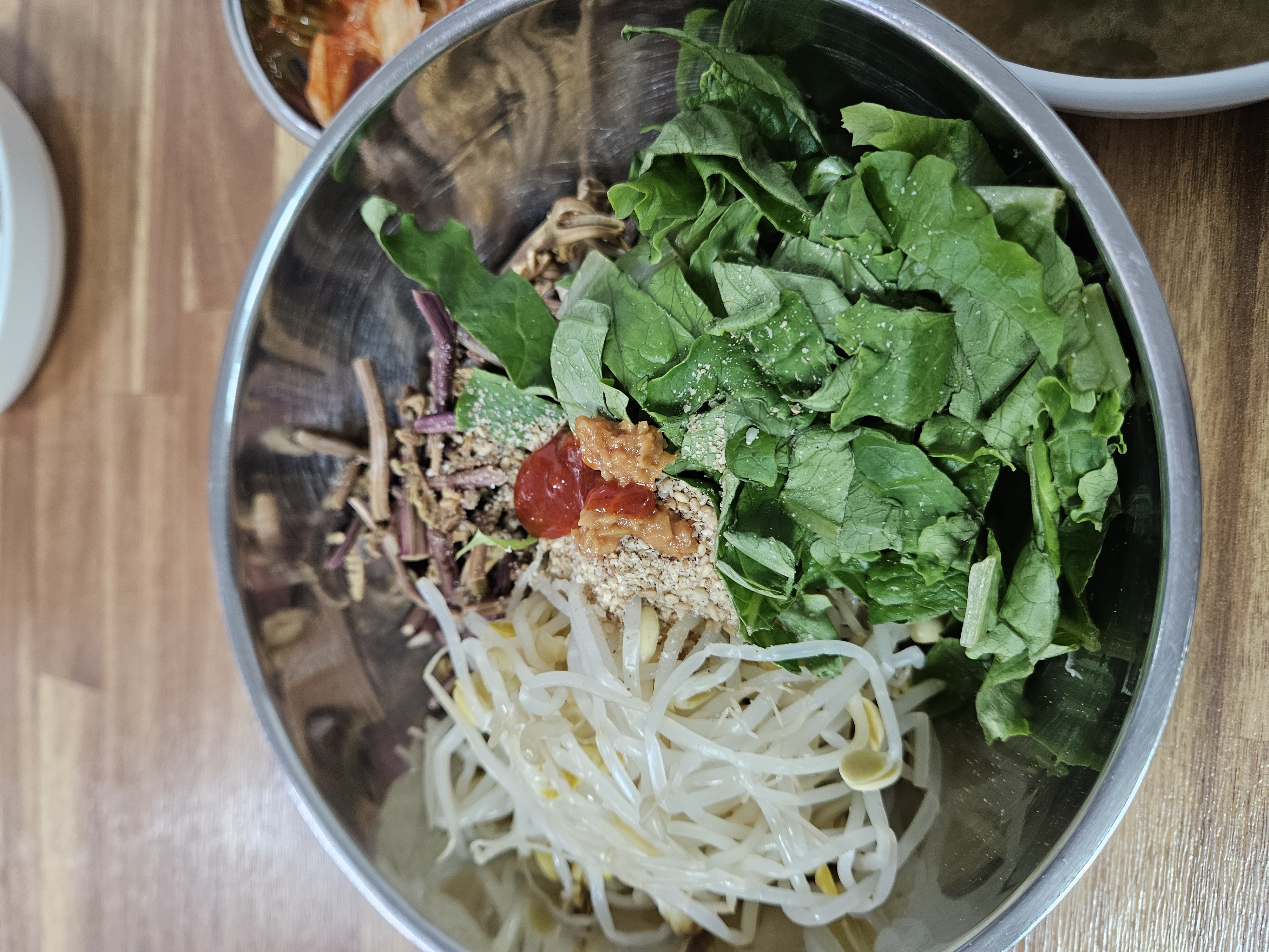 테이블마다 쌈장과 초장이 비치돼 있어 조금씩 넣어 간 맞춰 비벼 먹으면 취향 저격.