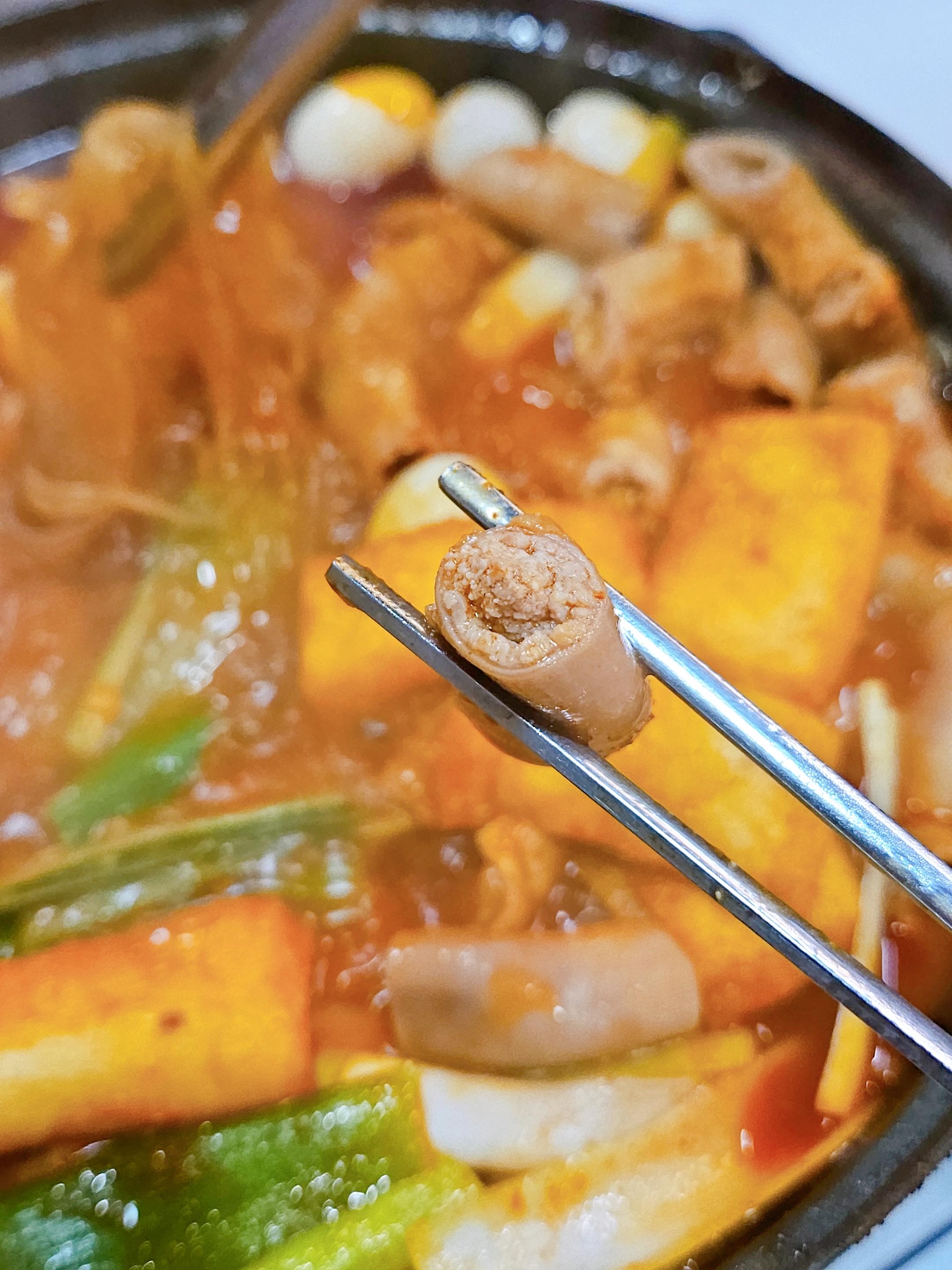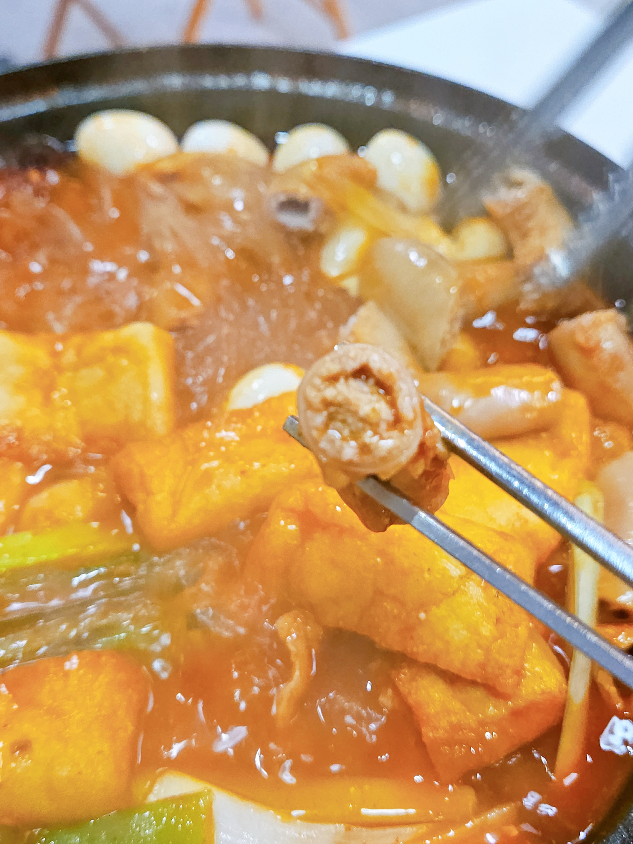 탕을 주문하면 기본 구성이 꽤 알찼다. 계란밥 1개, 넙적당면, 치즈떡, 메추리알이 기본 제공이라 사실 추가 사리를 많이 넣지 않아도 충분해 보였음. 그래도 사진 비주얼과 욕심 때문에 야끼만두를 추가했다.