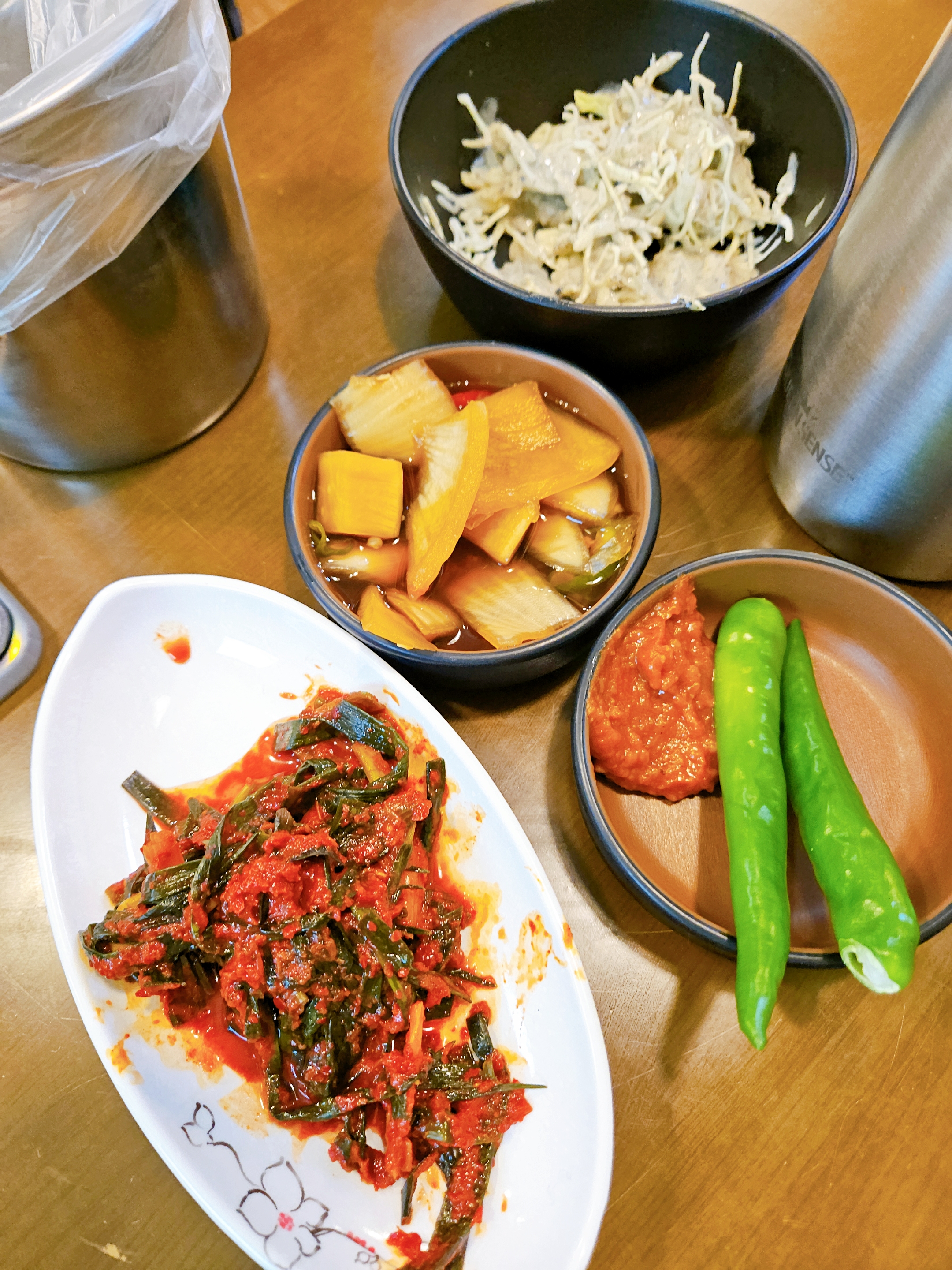 파김치, 간장 장아찌, 청양고추,