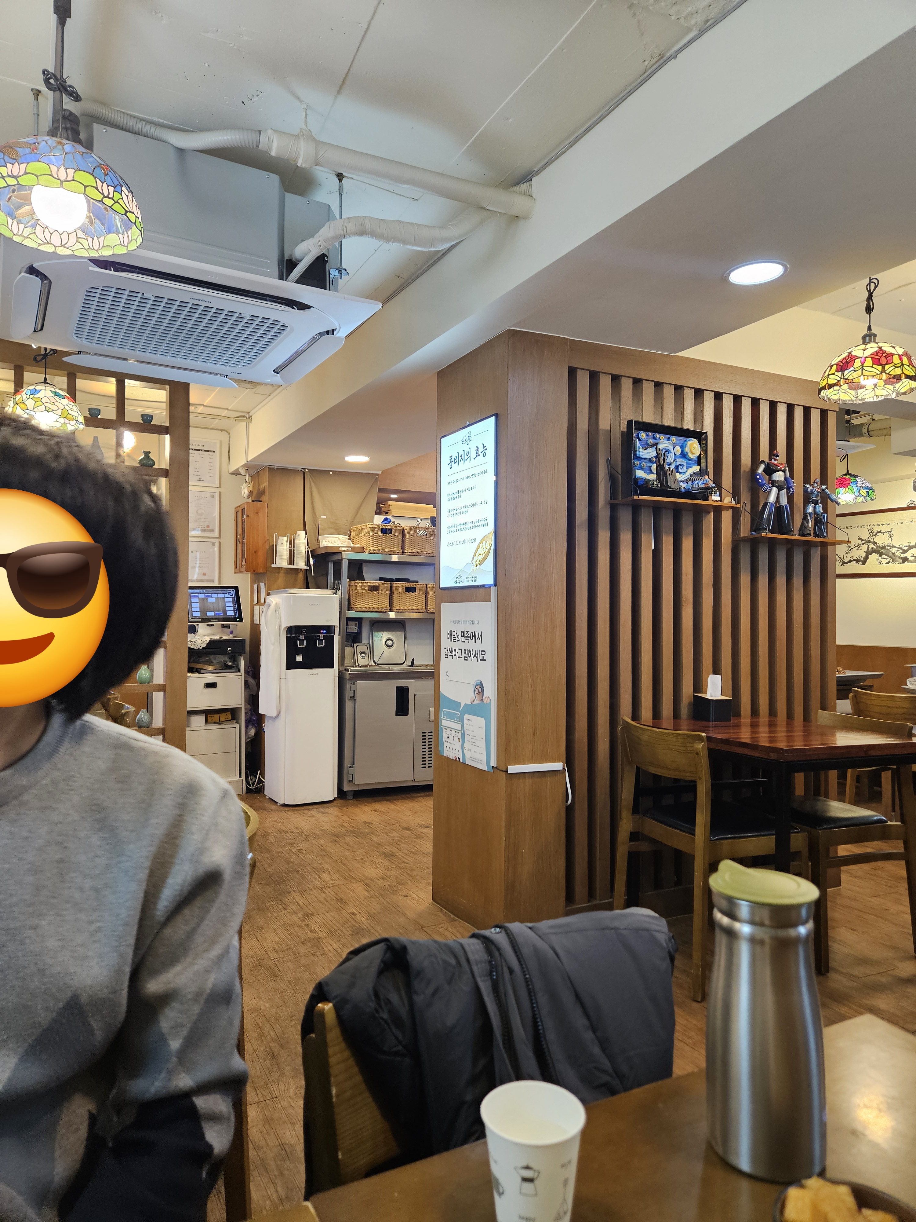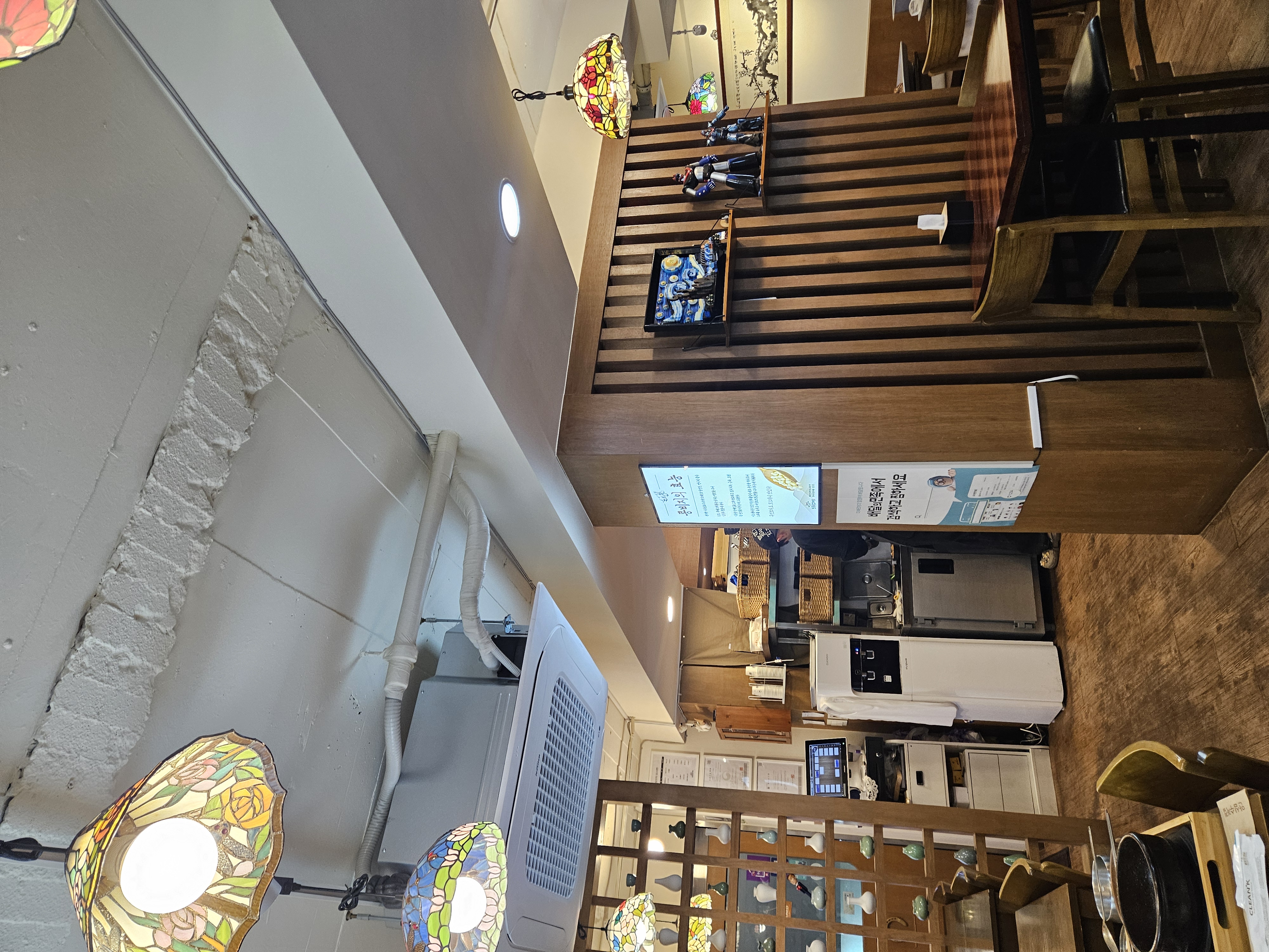 내부는 전체적으로 깔끔하고, 항아리 소품과 전통적인 느낌의 액자 장식이 더해져 아기자기하면서도 따뜻한 인상을 준다.