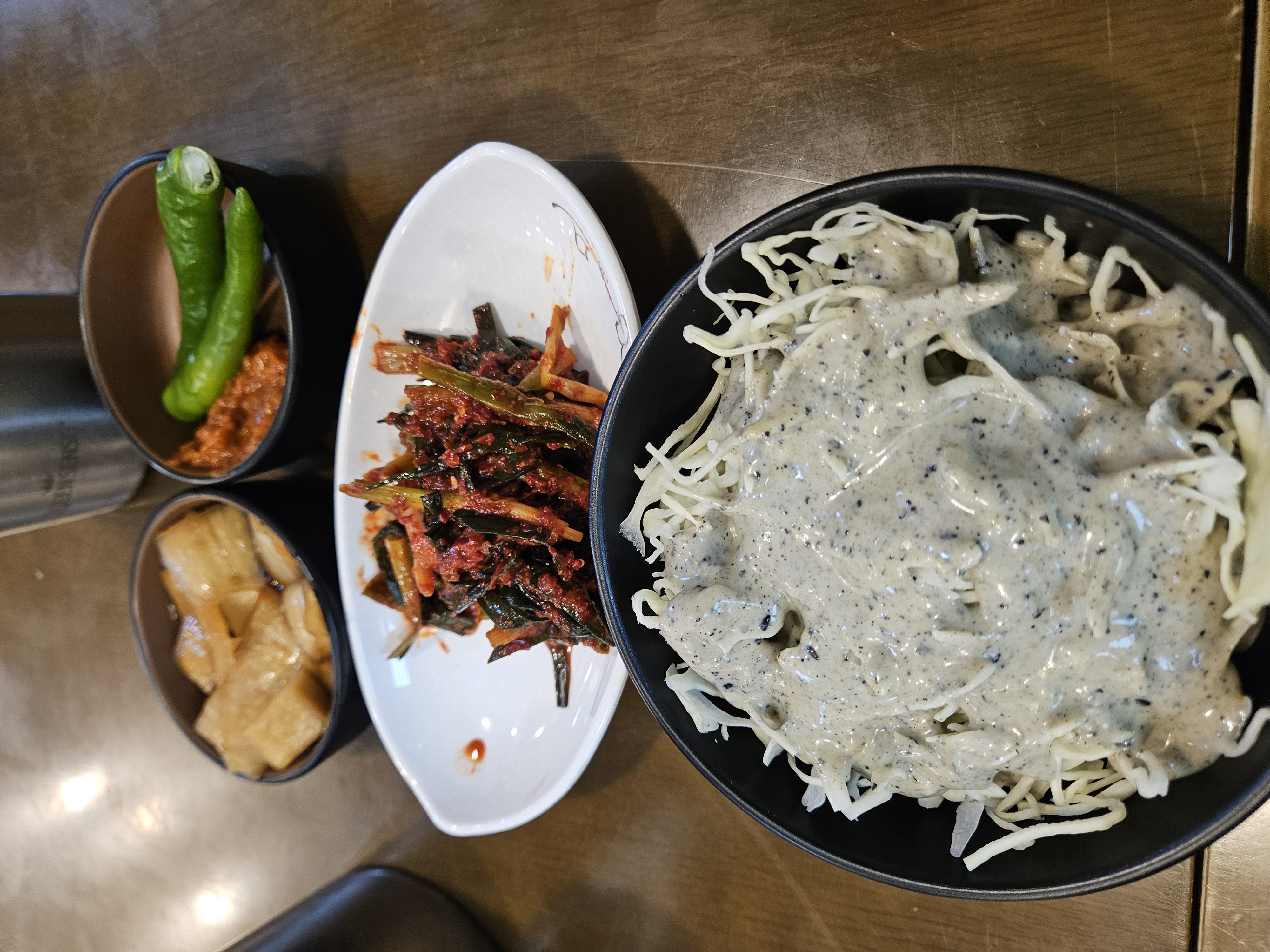 그리고 흑임자 드레싱이 올라간 양배추 샐러드까지.
