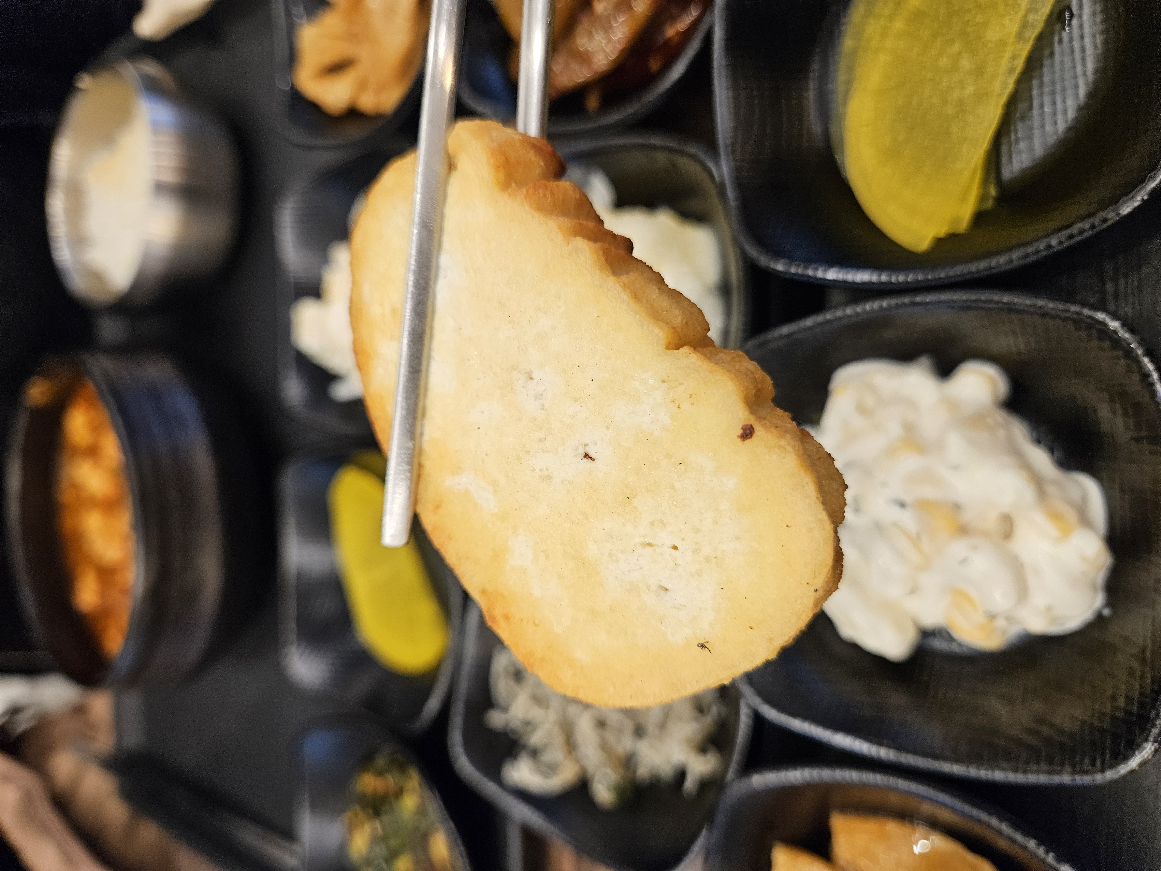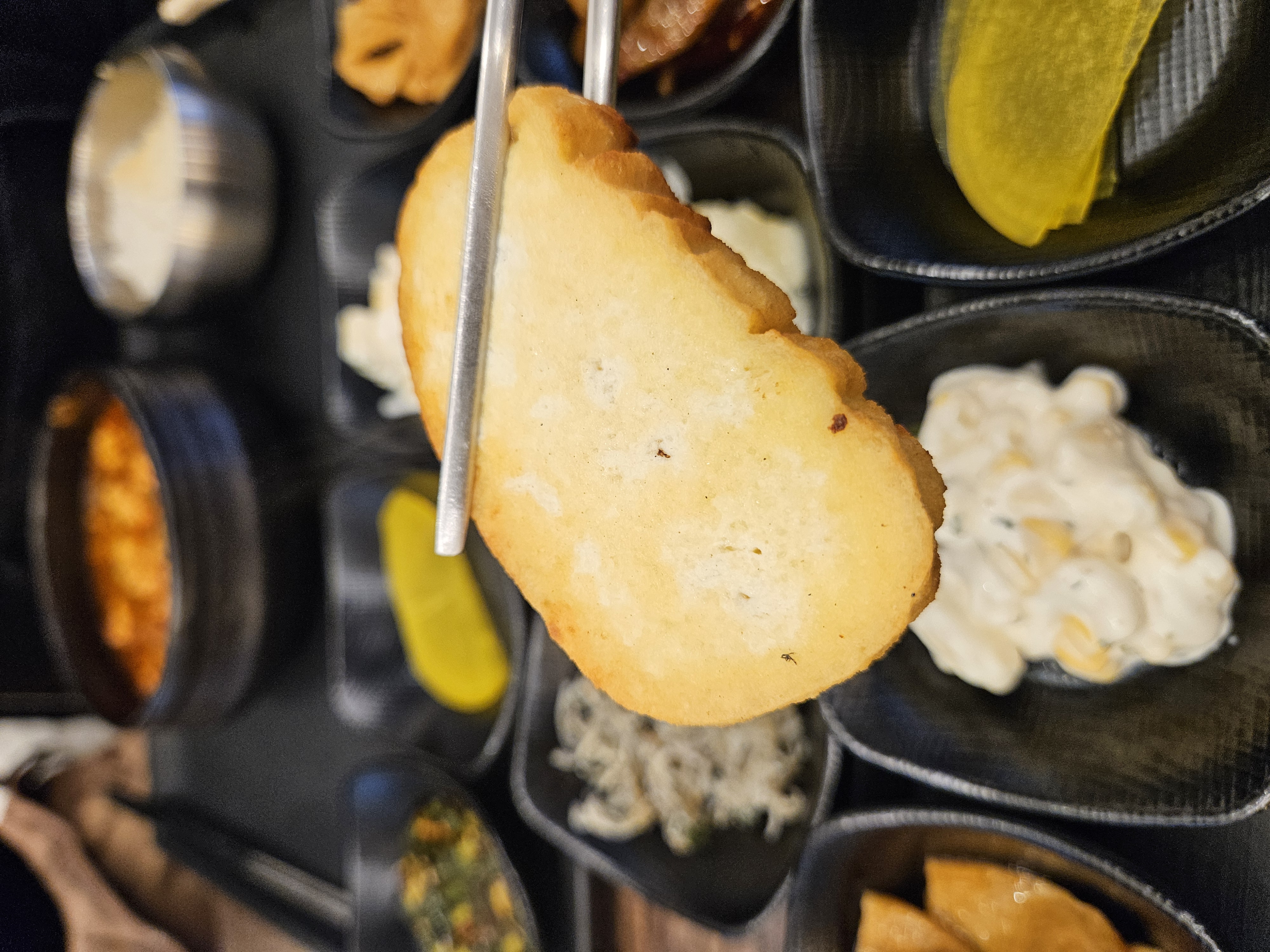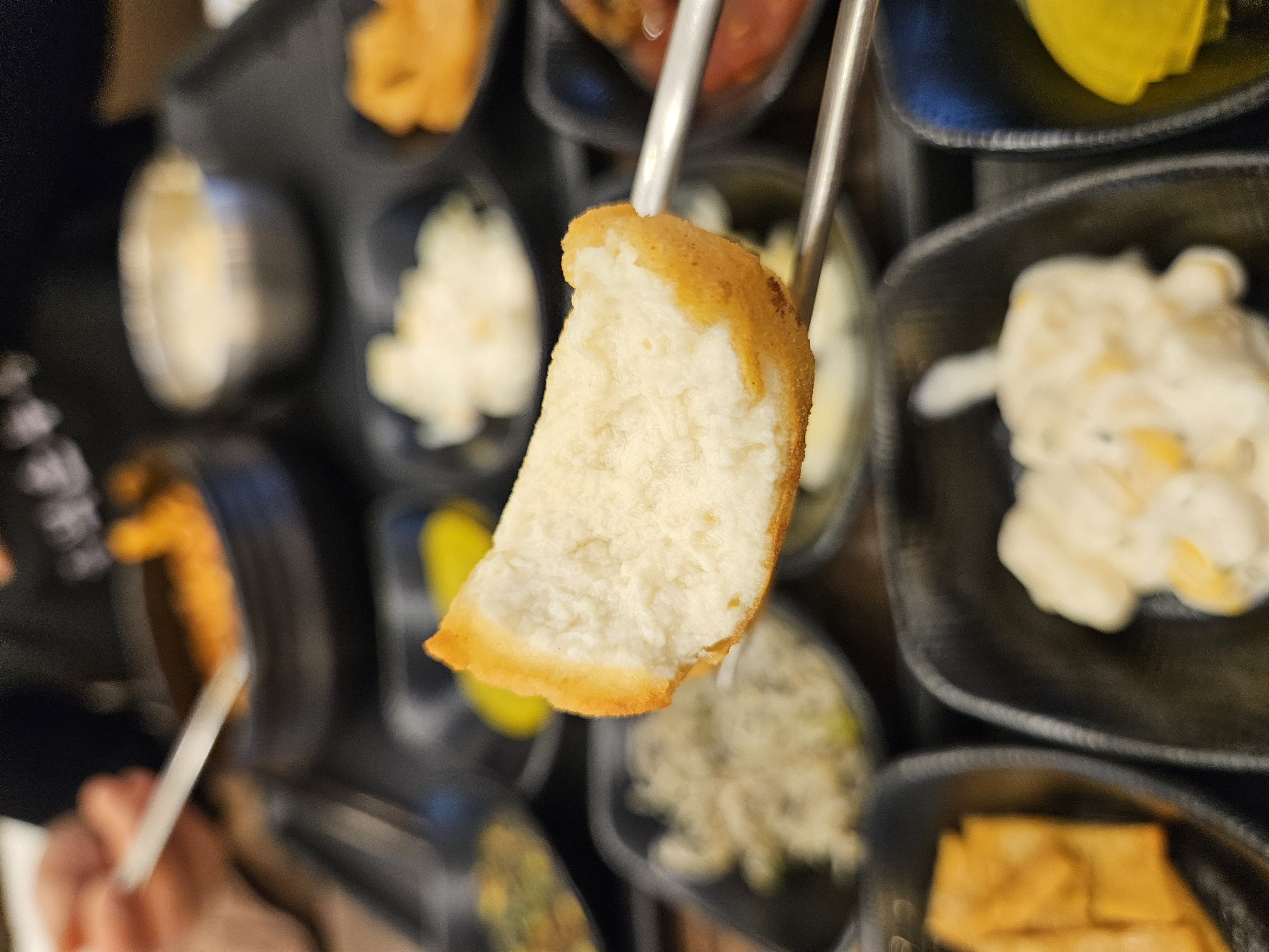 겉은 살짝 바삭하고 속은 촉촉한 식감이었다.