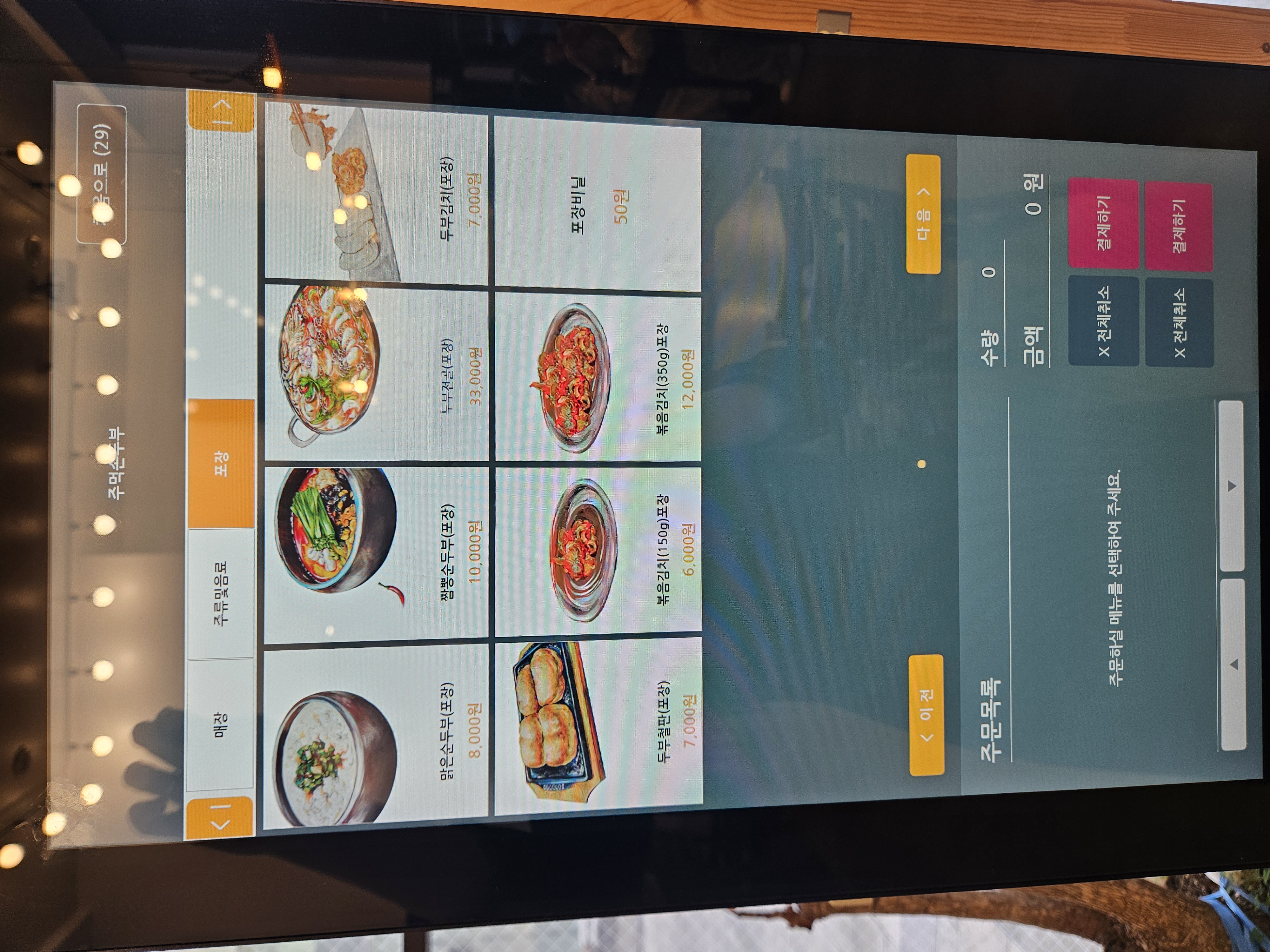 두부전골 (전골은 포장만 가능하다고 적혀 있었다)