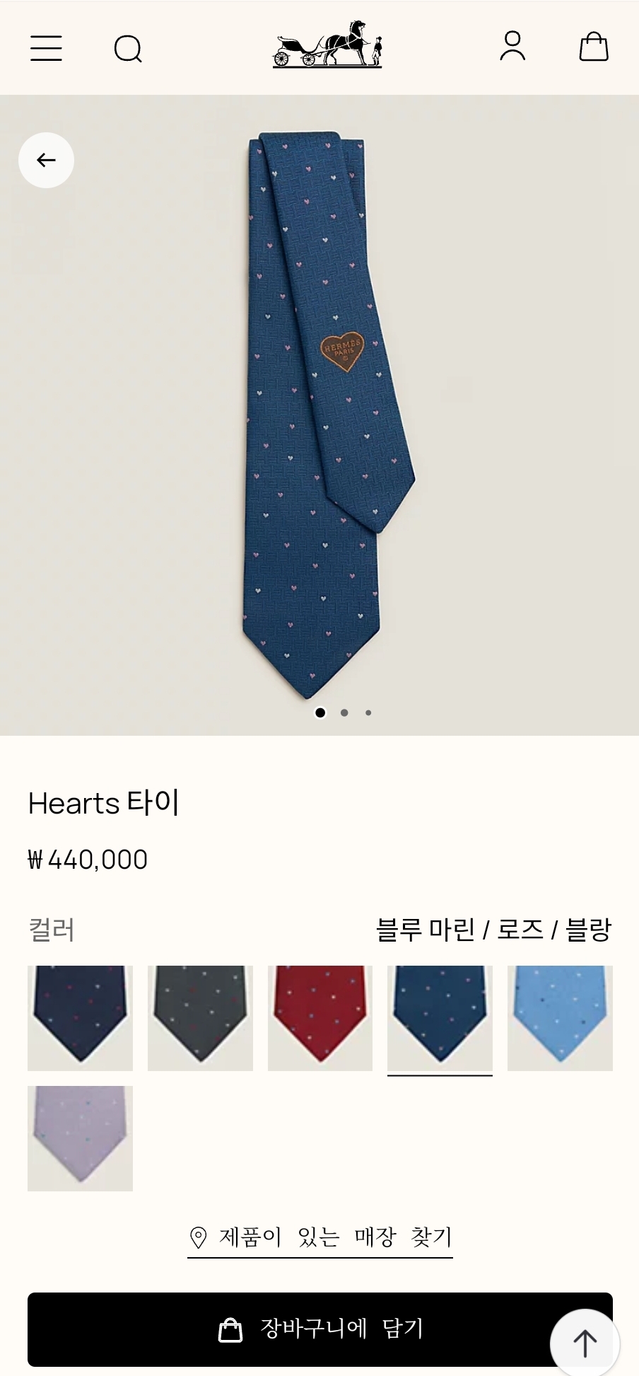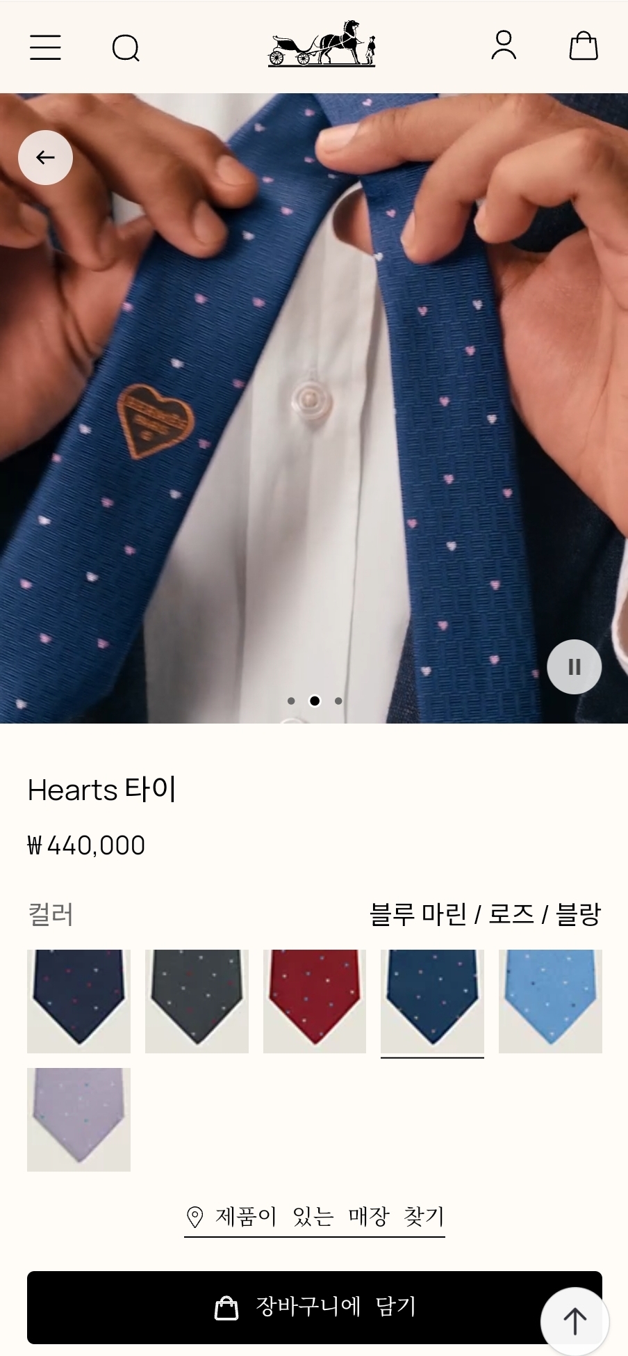 에르메스 Hearts 타이는 총 6가지 컬러가 있고,