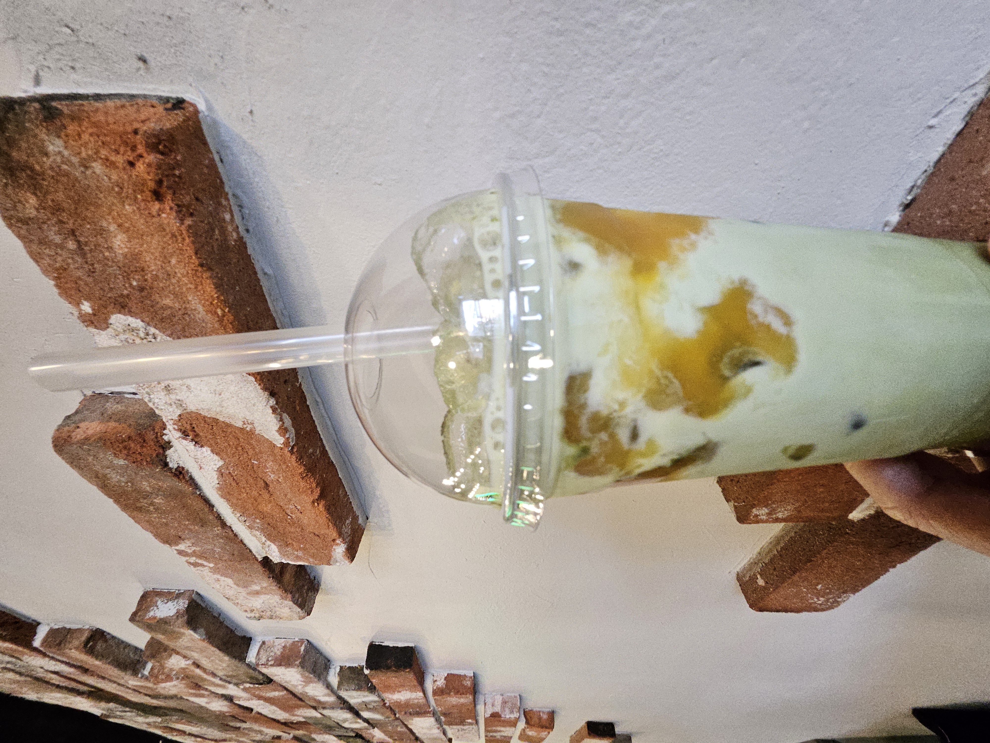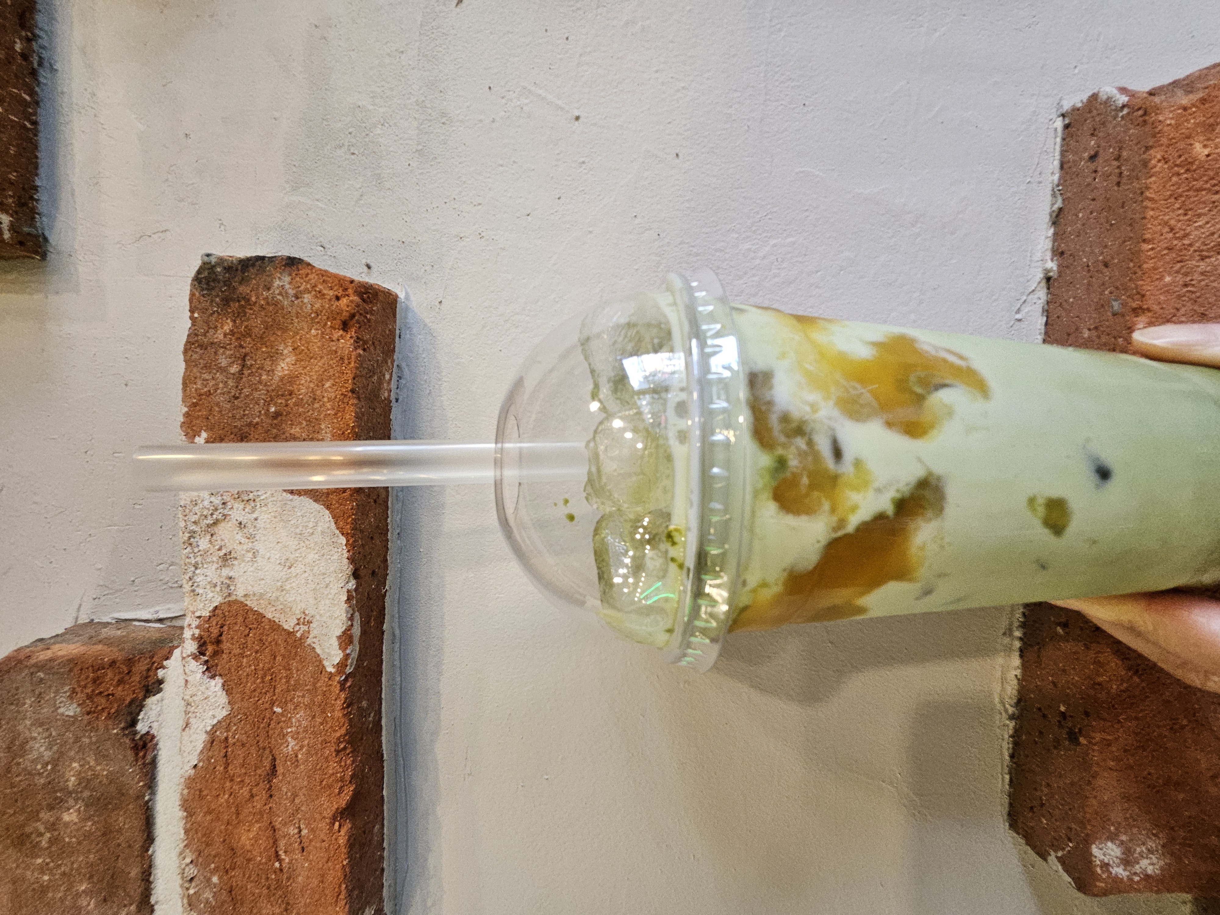 애플망고 과육의 달콤함과 말차의 쌉싸름함, 우유의 고소함이 자연스럽게 어우러져 첫 입부터 인상적인 맛으로 진짜 3초 컷 흡입해 버렸다.