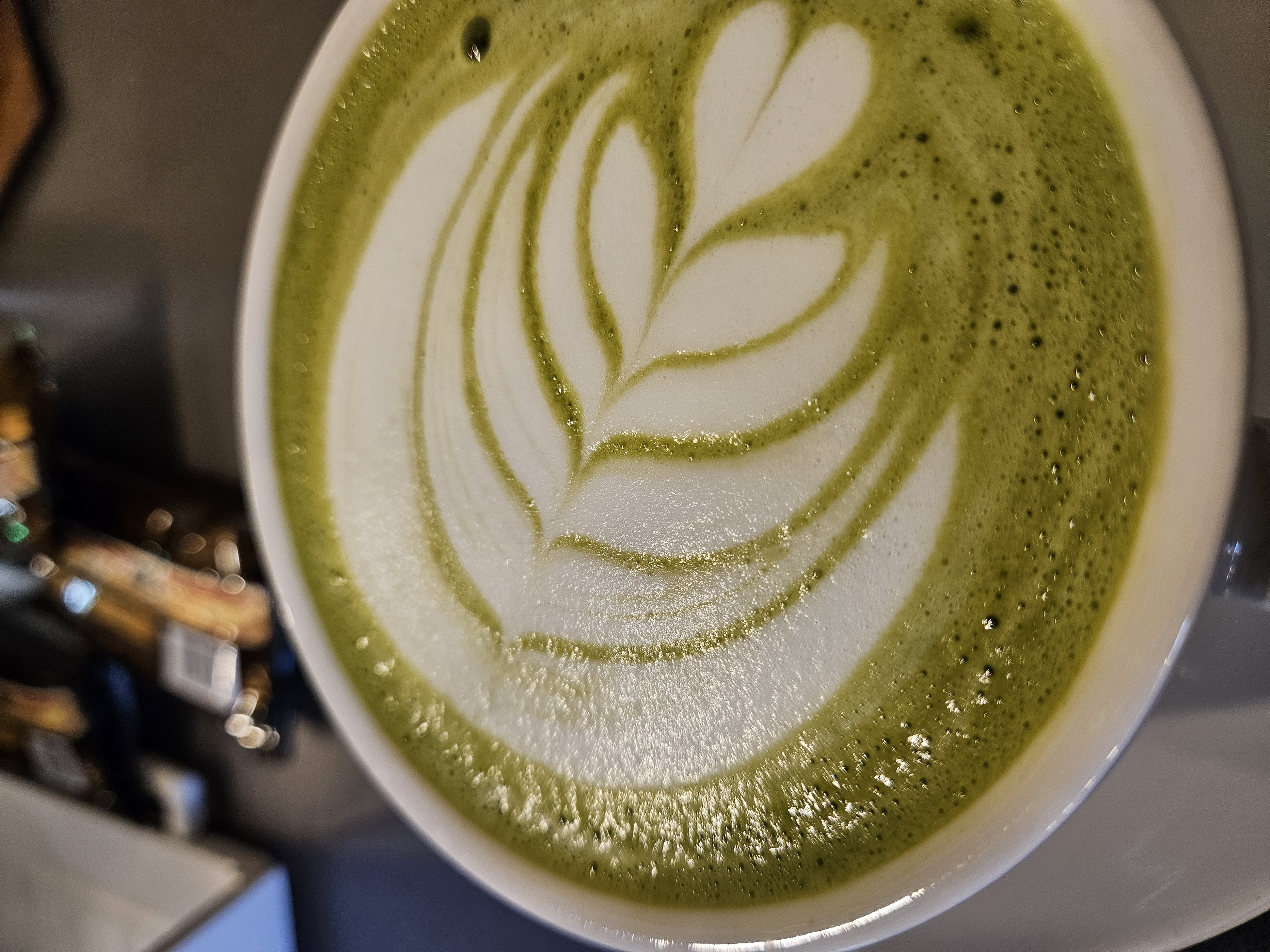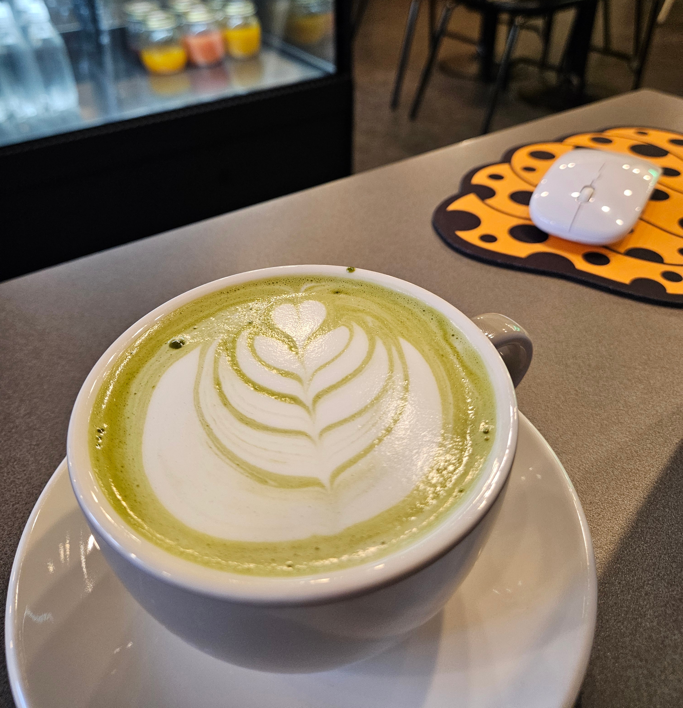 말차라테는 단맛이 과하지 않고 쌉싸름한 말차 풍미가 진하게 느껴지는 스타일.