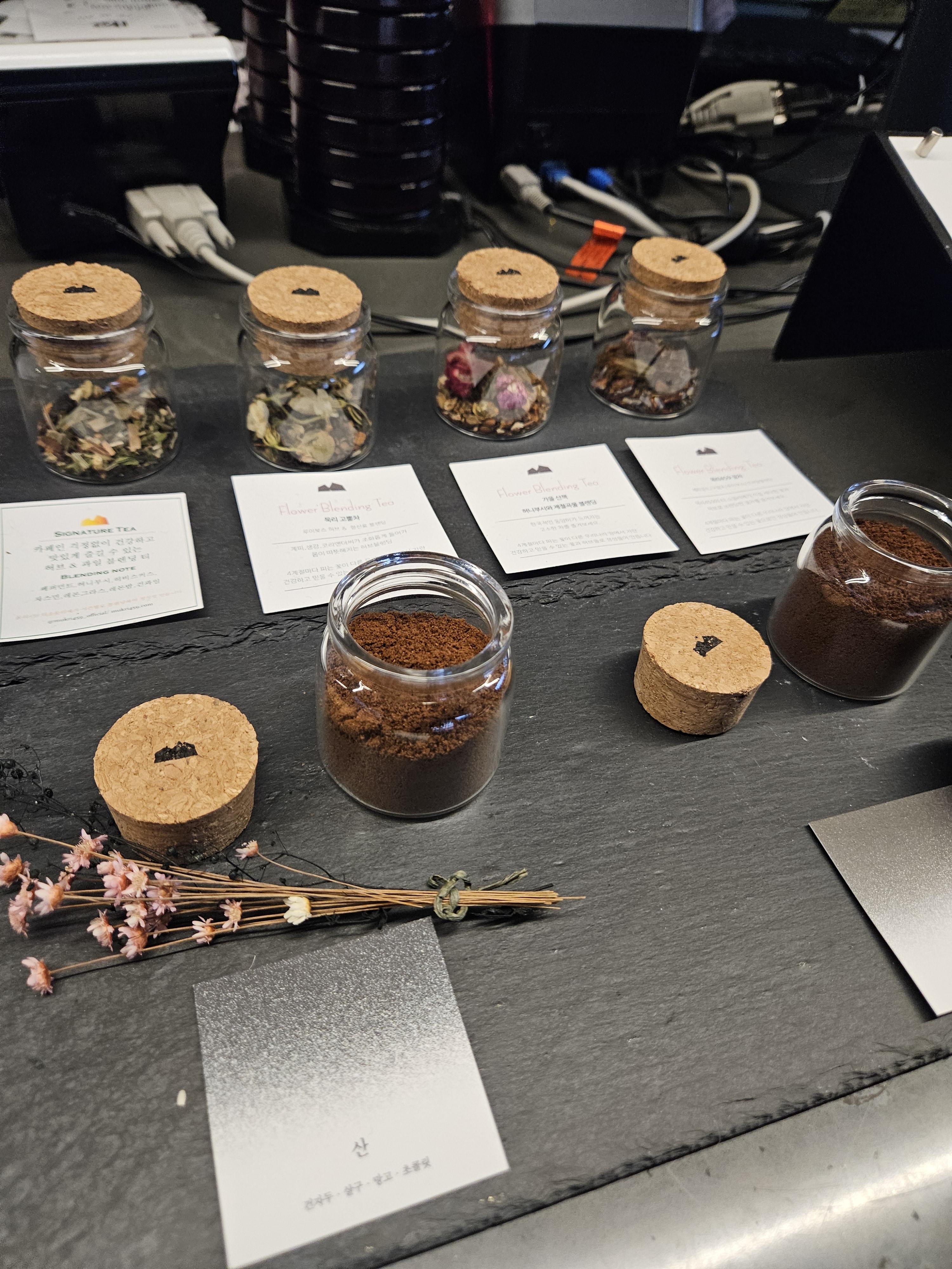 커피 주문 시 원두[산 / 돌 / 디카페인(+500원)] 산(건자두, 살구, 망고, 초콜릿)과 돌(구운 아몬드, 적포도, 밀크 초콜릿)중 선택 가능하다고 한다. 산은 산미 있고 돌은 묵직하다나? ㅎㅎ 친구는 산으로 골랐다.