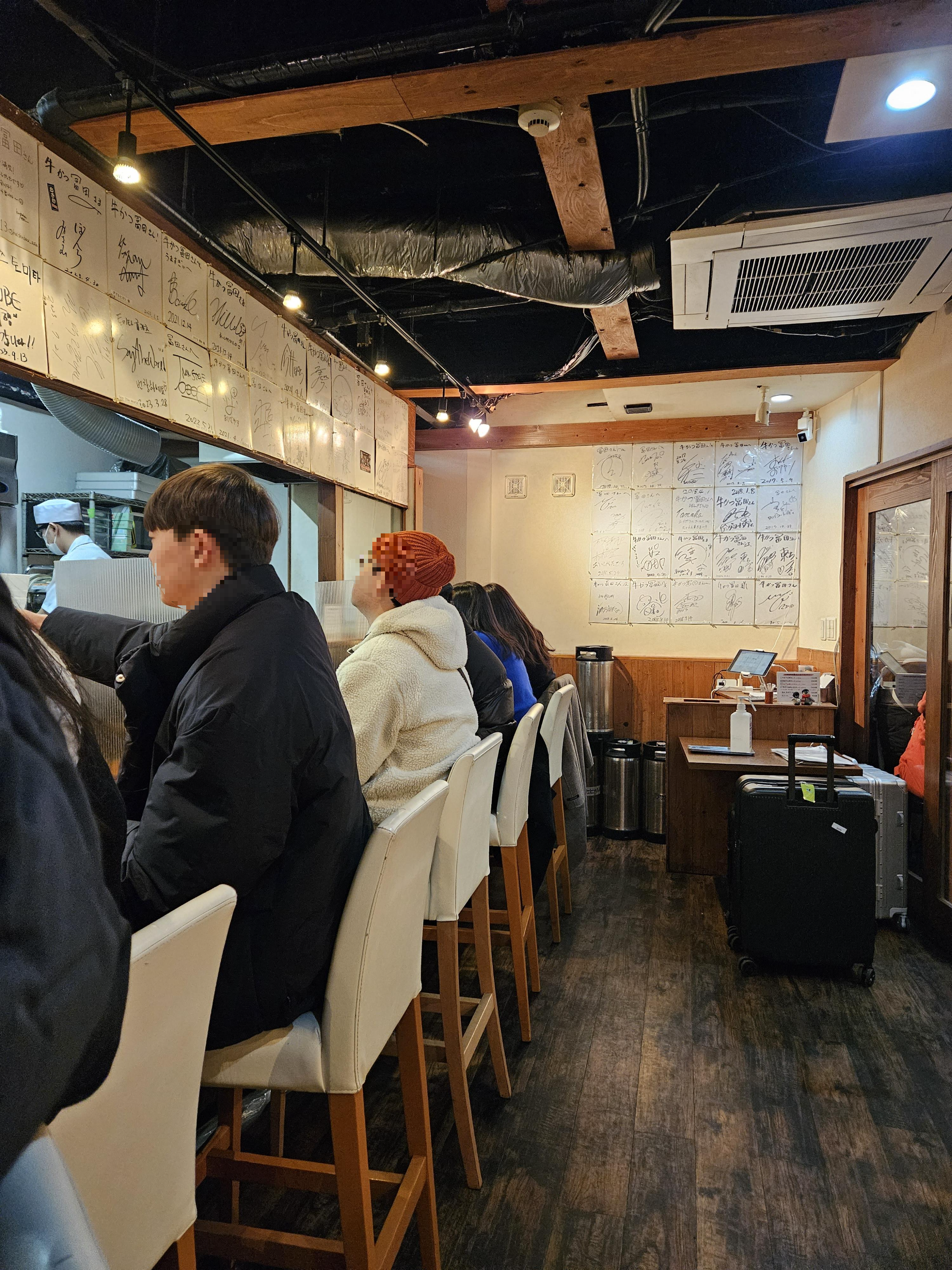 매장에 들어오니 전형적인 일본 음식점 분위기. 오른쪽 카운터 벽면과 다찌석 위쪽까지 국적불문 연예인? 셀럽들의 사인으로 도배되어 있어서 규카츠 맛이 정말 궁금해졌다.