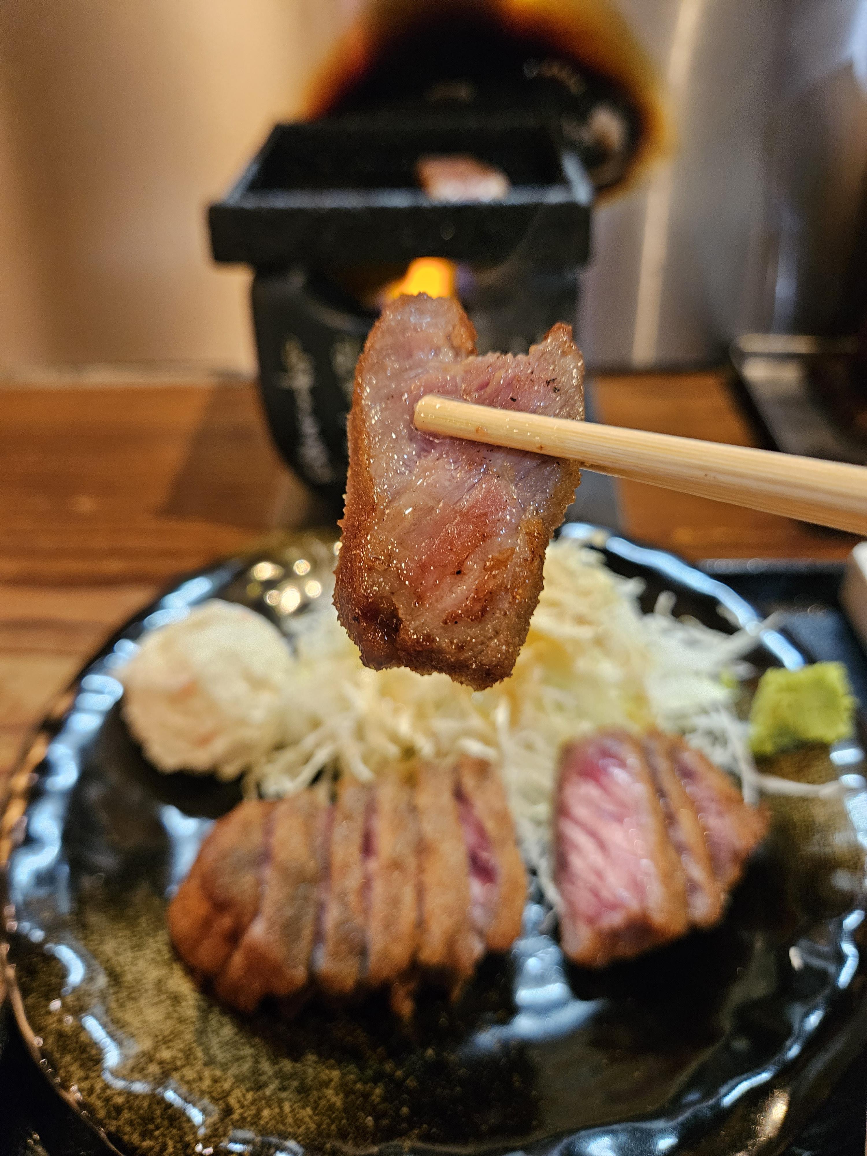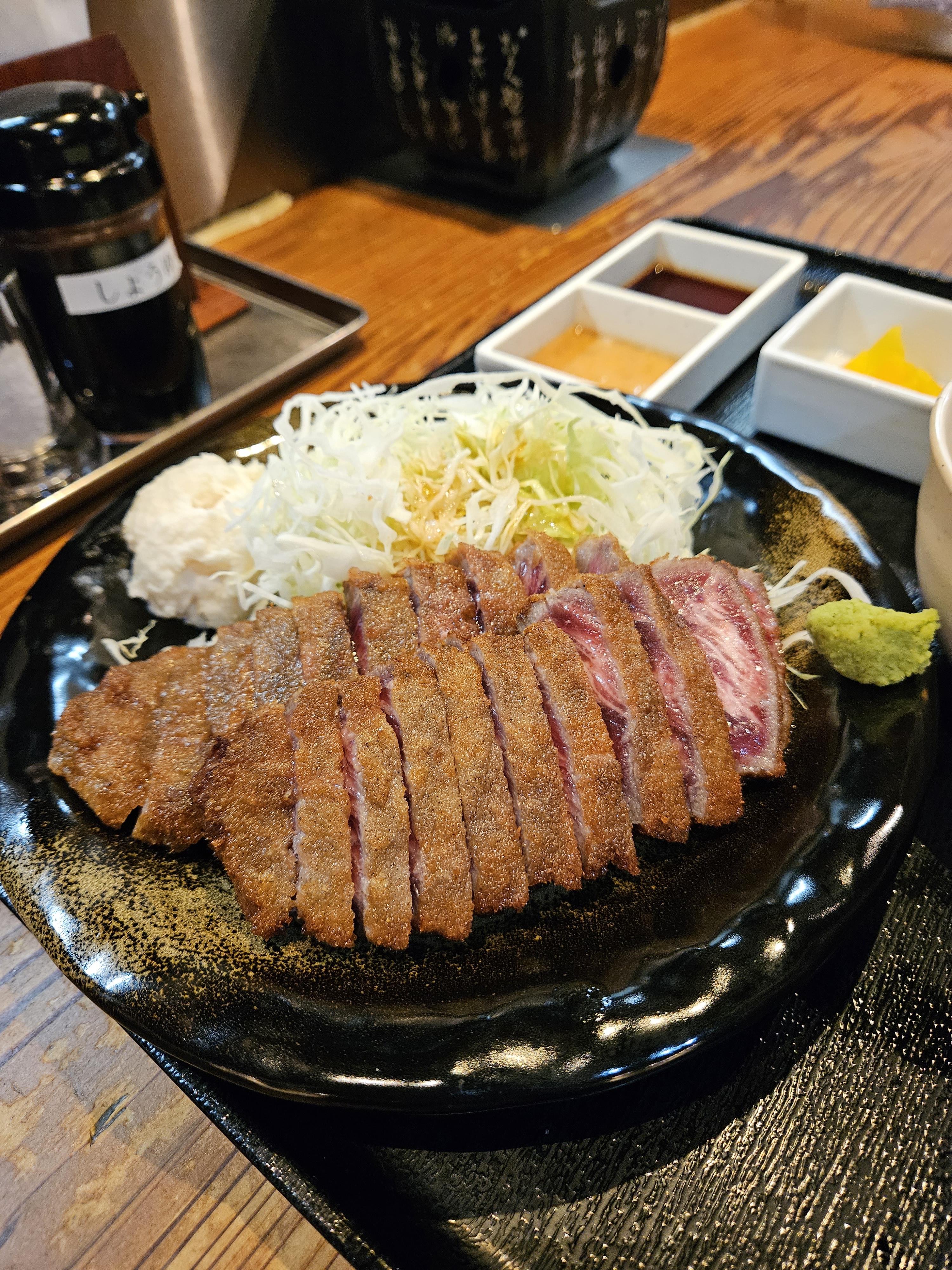 우리나라보다 저렴하게 양껏 먹을 수 있으니 만족스러움. 맛은 현지에서 먹어서 그런지 돈가스와 달리 튀김옷은 거의 느껴지지 않고 거의 스테이크 수준으로 고기 본연의 맛을 오롯이 느낄 수 있는 타입이라 좋더라.